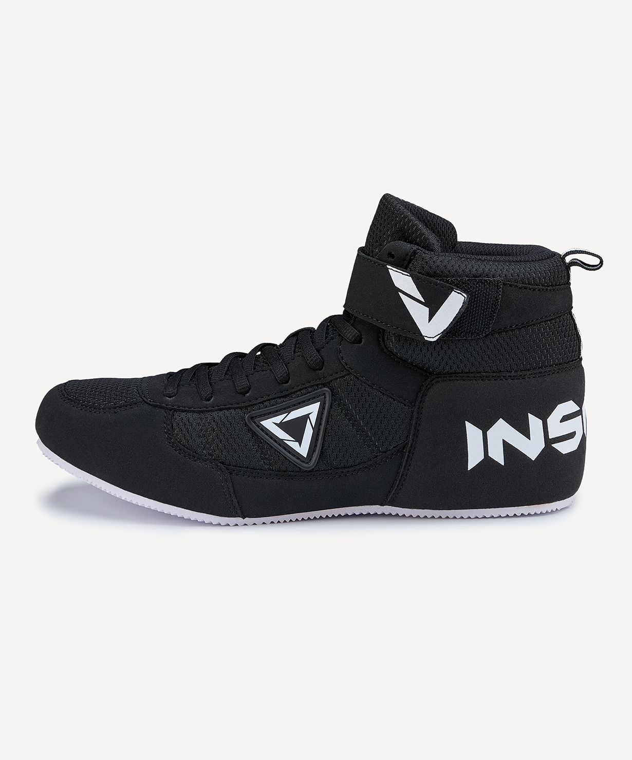 Уценка - это остатки коллекций, выставочные образцы с витрины, товары без упаковки, восстановленные или пользующиеся низким спросом изделия, а также продукция с незначительными дефектами внешнего вида (царапины, потертости и другие особенности).\nВажно! На использование товара по прямому назначению недостатки не влияют. Обращаем ваше внимание, что продукция данной категории возврату и обмену не подлежит. Приобретая спорттовары из категории «Уценка», вы соглашаетесь на наличие дефектов во внешнем виде или упаковке.\nОбувь для бокса RAPID бренда INSANE — улучшенная версия популярной модели боксерок. Эта специальная обувь предназначена для частых и интенсивных тренировок. Фиксация голеностопа стала еще более плотной, увеличенная толщина подошвы и технология производства продлевает срок службы изделия, а усовершенствованный верхний материал делает обувь легче и отвечает за хорошее влагоотведение.\nНизкую модель легко шнуровать и сушить. Боксерки надежно облегают стопу, сохраняя максимум подвижности, и дополнительно фиксируются удобной застежкой-липучкой.\nПодошва изготовлена из специальной резины и дополнена рельефным рисунком, обеспечивающим максимальное сцепление с поверхностью. Дышащий легкий верх выполнен из мягкого, сетчатого полиэстера, который позволяет ноге дышать, а также имеет жесткий носок и пятку из прочного материала, обеспечивающего более долгий срок службы.\nОбновленный дизайн модели отлично сочетается с аксессуарами и формой INSANE. RAPID универсальны, их можно использовать как в боксе, так и в других видах единоборств.\nПреимущества:\nУлучшенная фиксация голеностопа;\nУдобная дополнительная фиксация стопы застежкой-липучкой;\nУсовершенствованный верхний материал с отличным влагоотведением;\nУвеличенная толщина подошвы для амортизации и снижения нагрузки;\nПодошва из нескользящего материала, который позволяет быстро передвигаться по рингу;\nЛегкий вес и комфортная высота обуви;\nУниверсальность применения;\nОбновленный дизайн.\nХарактеристики:\nМатериал верха: 40% полиэстер, 40% полиуретан, 20% полиамид\nМатериал стельки: 75% полиамид, 25% полиэстер\nМатериал подкладки: 100% полиэстер\nМатериал подошвы: 100% резина\nЦвет: черный\nТип упаковки: коробка\nПроизводство: Китай