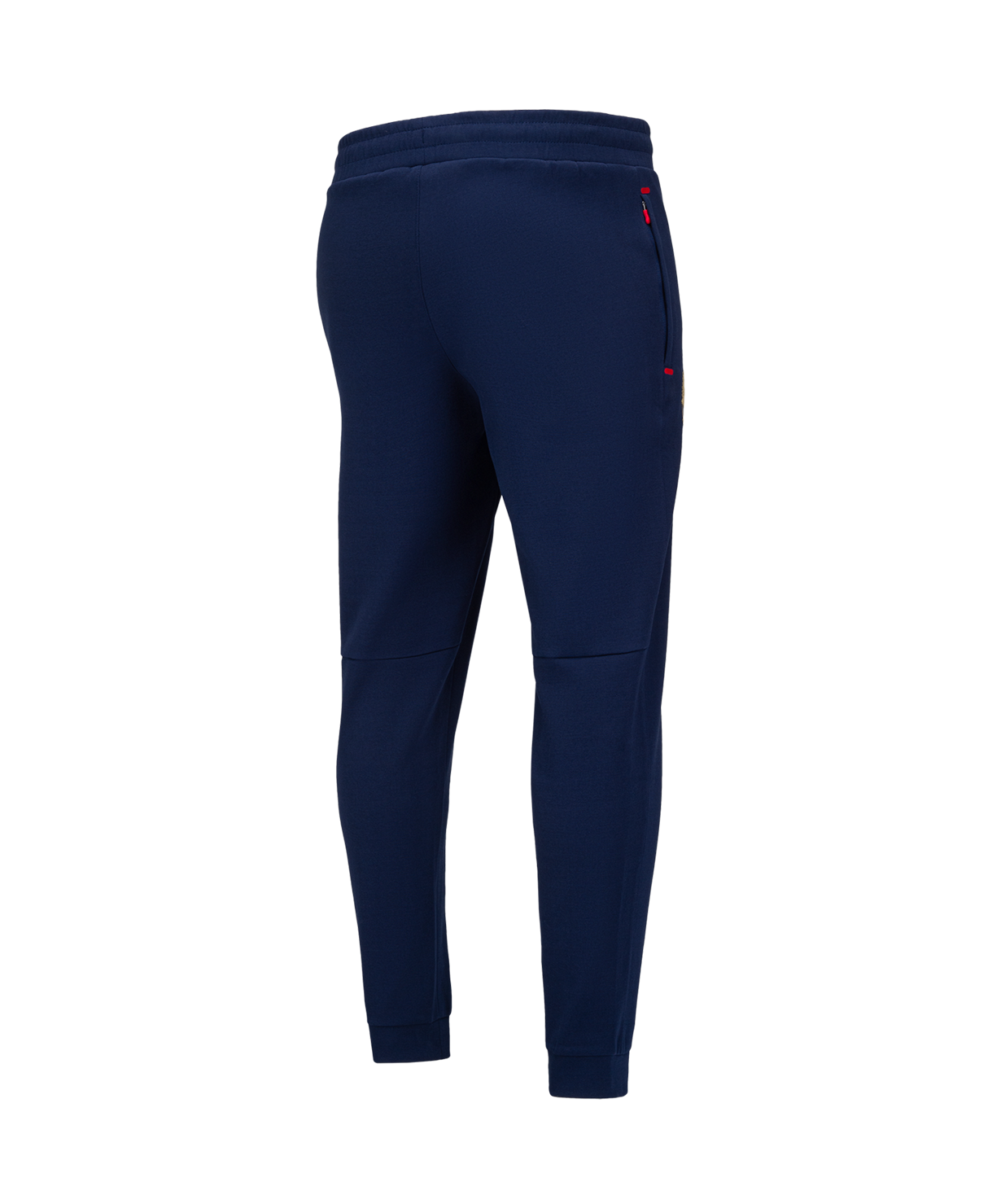 Брюки из плотного трикотажа (70% хлопок 30% полиэстер). Материал приятен на ощупь, отлично держит форму, обладает высокой прочностью и устойчивостью к сминанию. Эластичный пояс со стяжкой позволяет отрегулировать посадку по фигуре. В боковых швах удобные глубокие карманы на молниях.