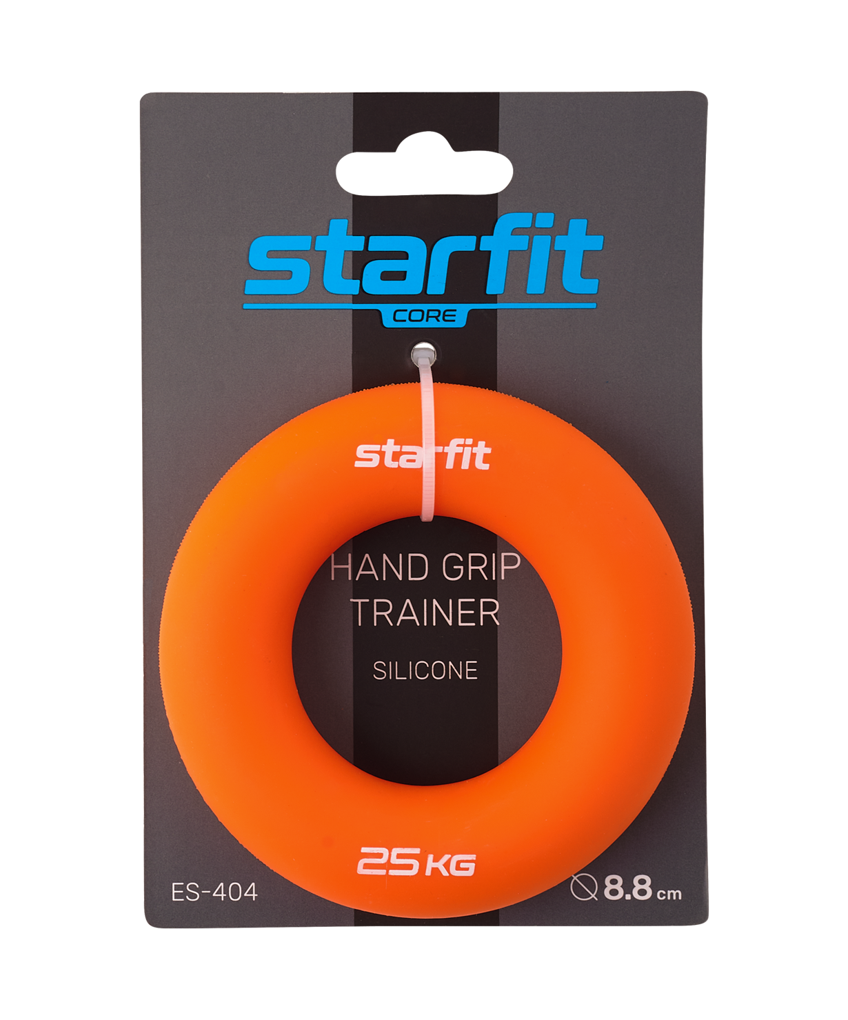 Эспандер кистевой ES-404 - это упругий тренажер для рук в виде кольца. Эспандер STARFIT поможет провести качественную тренировку лучезапястного сустава. Мышцы предплечья, пальцев рук, а также связки и сухожилия, - кистевой эспандер позволит поддерживать их в нужном тонусе без громоздкого спортинвентаря. Эспандер для рук не займет много места, вы сможете размять мышцы в любом месте: по пути на работу или во время обеденного перерыва, а также использовать спортивный инвентарь для фитнеса дома.\nЭспандер кольцо сделан из силикагеля – приятного на ощупь и гибкого материала, который всегда возвращает первоначальную форму. Этот тренажер для спорта не пахнет, а технология производства позволяет придать изделию сочную и яркую окраску. Эспандер кистевой STARFIT имеет диаметр 8,8 см. Такой размер удобен подросткам и взрослым. Эспандеры ES-404 будут особенно актуальны спортсменам с подготовленными к тренировкам мышцами.\nПреимущества:\nСделан из силикагеля;\nНе пахнет;\nИнтенсивная проработка мышц.\nХарактеристики:\nМатериал: силикагель\nДиаметр: 8,8 см\nТолщина: 2,1 см\nНагрузка: 25 кг\nЦвет: оранжевый\nТип упаковки: картонная карточка с подвесом\nКоличество в упаковке, шт.: 1\nПроизводство: КНР