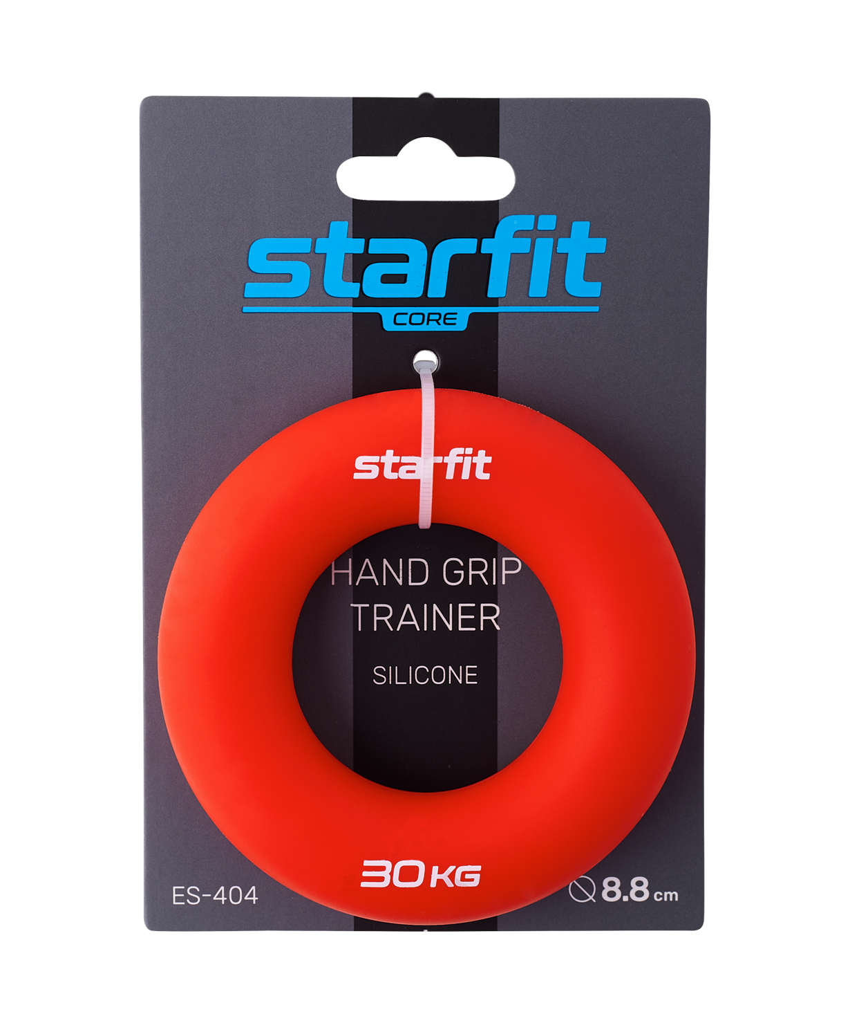 Эспандер кистевой ES-404 - это упругий тренажер для рук в виде кольца. Эспандер STARFIT поможет провести качественную тренировку лучезапястного сустава. Мышцы предплечья, пальцев рук, а также связки и сухожилия, - кистевой эспандер позволит поддерживать их в нужном тонусе без громоздкого спортинвентаря. Эспандер для рук не займет много места, вы сможете размять мышцы в любом месте: по пути на работу или во время обеденного перерыва, а также использовать спортивный инвентарь для фитнеса дома.\nЭспандер кольцо сделан из силикагеля – приятного на ощупь и гибкого материала, который всегда возвращает первоначальную форму. Этот тренажер для спорта не пахнет, а технология производства позволяет придать изделию сочную и яркую окраску. Эспандер кистевой STARFIT имеет диаметр 8,8 см. Такой размер удобен подросткам и взрослым. Эспандеры ES-404 будут особенно актуальны спортсменам с подготовленными к тренировкам мышцами.\nПреимущества:\nСделан из силикагеля;\nНе пахнет;\nИнтенсивная проработка мышц.\nХарактеристики:\nМатериал: силикагель\nДиаметр: 8,8 см\nТолщина: 2,1 см\nНагрузка: 30 кг\nЦвет: красный\nТип упаковки: картонная карточка с подвесом\nКоличество в упаковке, шт.: 1\nПроизводство: КНР