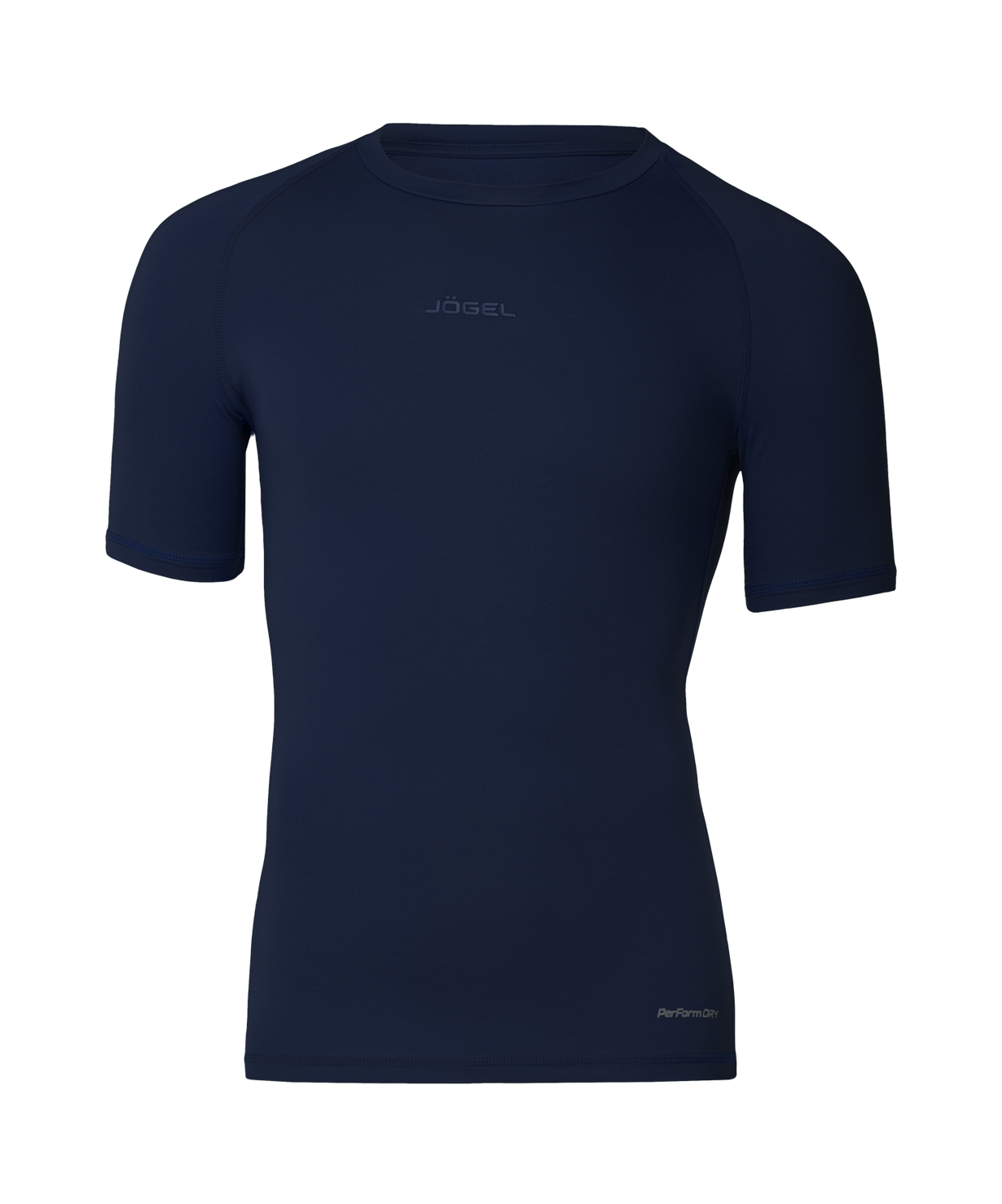 Компрессионная футболка с коротким рукавом оптимальна для занятий спортом. Модель облегающего кроя изготовлена из качественной ткани с функцией PerFormDRY: материал эффективно отводит влагу с поверхности тела на наружный слой, придает необходимую эластичность изделию и обеспечивает возвращение в первоначальное состояние при растяжении. Ткань также обладает компрессионными свойствами, поддерживая мышцы в тонусе и снижая усталость. Круглая горловина и рукав реглан плотно прилегают к телу, гарантируя комфорт во время занятий и полную свободу движений. В модели дополнительно использована технология «плоский шов», исключающая дискомфорт при эксплуатации изделия и увеличивающая срок службы компрессионной футболки благодаря использованию эластичных нитей повышенной прочности. Спортивная футболка с двумя логотипами JÖGEL, расположенными посередине спереди и сзади, прекрасно сочетается с другой продукцией бренда.\nPerFormDRY - технология обработки ткани, которая помогает спортсменам оставаться сухими и чувствовать себя комфортно при интенсивных нагрузках.\nПреимущества:\nАнатомический крой;\nФункция PerFormDRY;\nЭффективное влагоотведение.\nХарактеристики:\nСостав: 90% полиэстер 10% спандекс\nЦвет: темно-синий\nРазмеры: XS, S, M, L,XL,XXL\nУпаковка: зип пакет\nСтрана производства: Китай