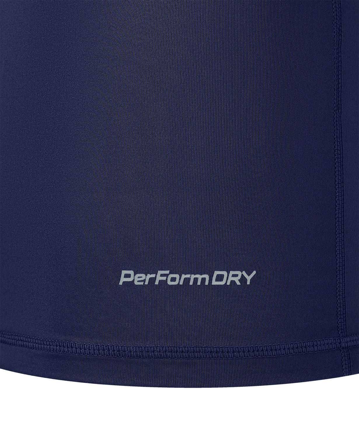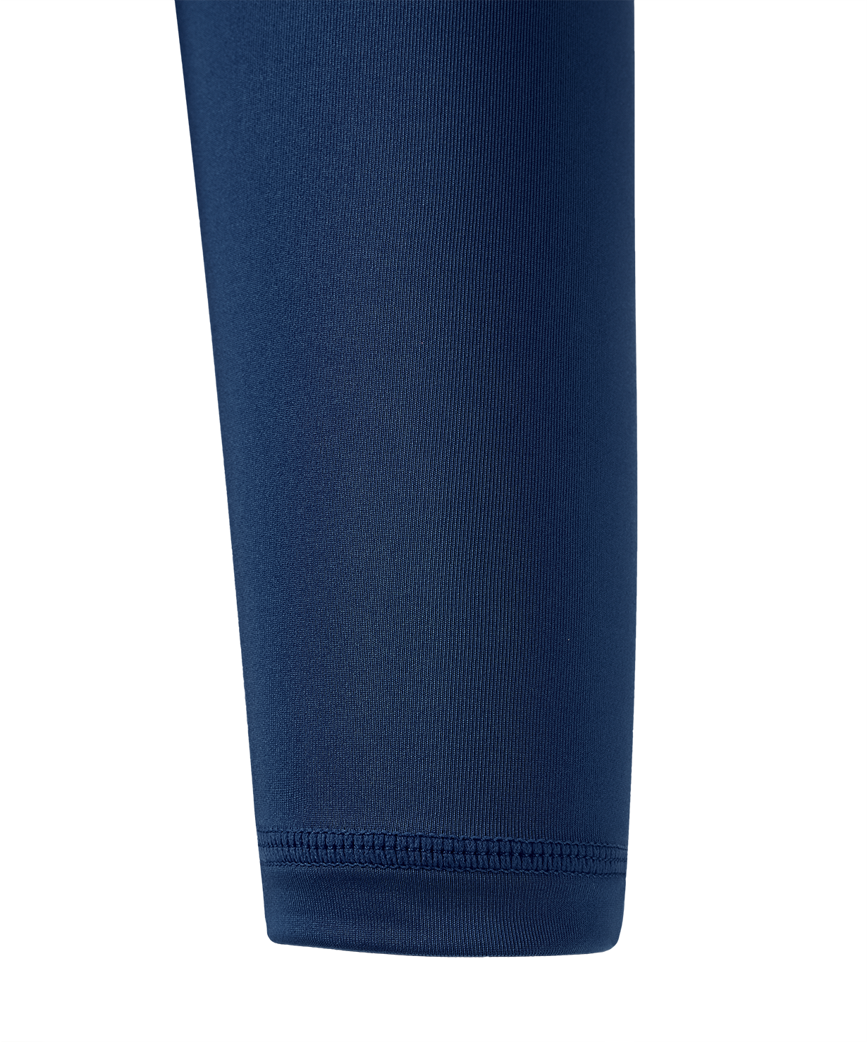 Спортивная футболка первого слоя с длинным рукавом идеально подходит для занятий спортом. Модель облегающего кроя, придающего легкую компрессию, изготовлена из качественной ткани (волокна полиэстера 90% и спандекса 10%) с технологией PerFormDRY. Состав материала обеспечивает необходимую эластичность, позволяя возвращать первоначальную форму при растяжении.\nПолная свобода движений благодаря использованию технологии плоского шва: все швы растягиваются вместе с материалом.\nЛоготип бренда расположен по центру груди и сверху на спине. Футболка упакована в удобный пакет многоразового использования с клапаном-застежкой.\nПреимущества:\nАнатомический крой;\nЭффективное отведение влаги от поверхности тела на наружный слой;\nКомпрессия - снижение усталости, поддержка мышц.\nPerFormDRY - технология обработки ткани, которая помогает спортсменам оставаться сухими и чувствовать себя комфортно при интенсивных нагрузках.\nХарактеристики:\nСостав: 90% полиэстер, 10% спандекс\nЦвет: темно-синий\nРазмер: YS, YM, YL, YXL, XS, S, M, L, XL, XXL, XXXL\nТип упаковки: пакет зип-лок\nПроизводство: Китай