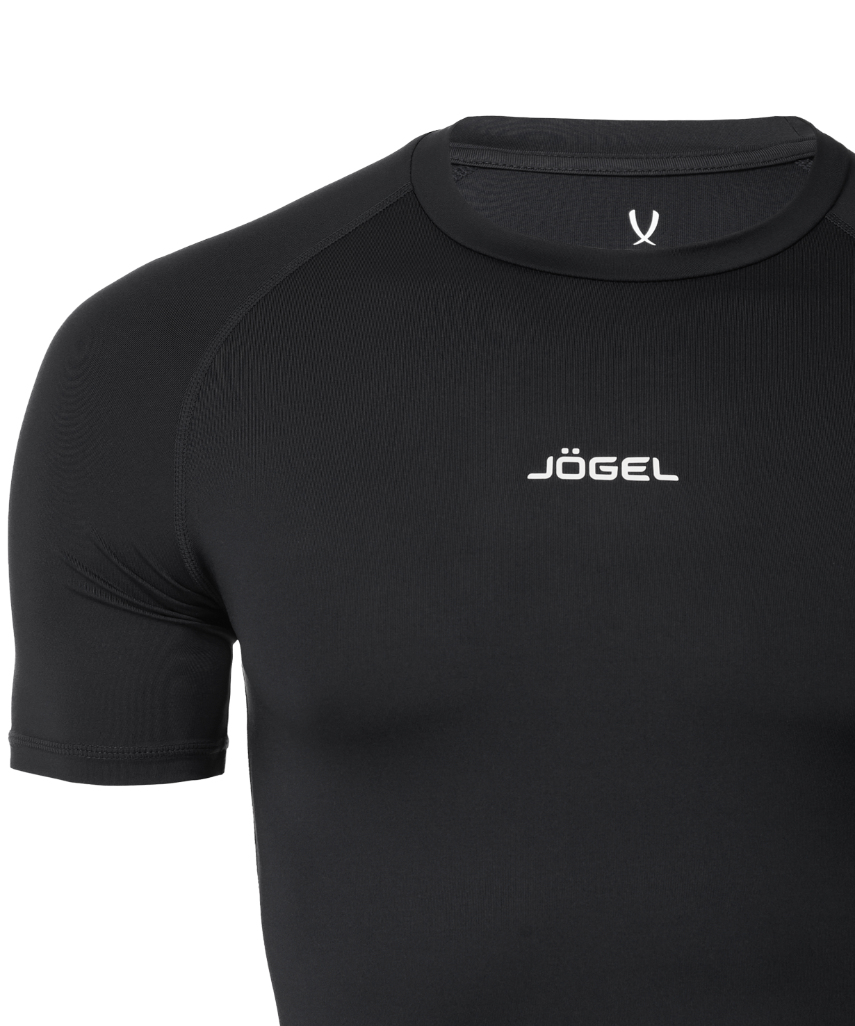 Компрессионная футболка JÖGEL CAMP PerFormDRY Baselayer SS Tee с коротким рукавом оптимальна для занятий спортом. Модель облегающего кроя изготовлена из качественной ткани с функцией PerFormDRY: материал эффективно отводит влагу с поверхности тела на наружный слой, придает необходимую эластичность изделию и обеспечивает возвращение в первоначальное состояние при растяжении. Ткань также обладает компрессионными свойствами, поддерживая мышцы в тонусе и снижая усталость. Круглая горловина и рукав реглан плотно прилегают к телу, гарантируя комфорт во время занятий и полную свободу движений. В модели дополнительно использована технология «плоский шов», исключающая дискомфорт при эксплуатации изделия и увеличивающая срок службы компрессионной футболки благодаря использованию эластичных нитей повышенной прочности. Спортивная футболка с двумя логотипами JÖGEL, расположенными посередине спереди и сзади, прекрасно сочетается с другой спортивной продукцией бренда.\nPerFormDRY - технология обработки ткани, которая помогает спортсменам оставаться сухими и чувствовать себя комфортно при интенсивных нагрузках.\nПреимущества:\nАнатомический крой;\nФункция PerFormDRY;\nЭффективное влагоотведение.\nХарактеристики:\nСостав: 90% полиэстер, 10% спандекс\nЦвет: черный\nРазмер: YS, YM, YL, YXL, XS, S, M, L, XL, XXL, XXXL\nТип упаковки: пакет зип-лок\nПроизводство: Китай