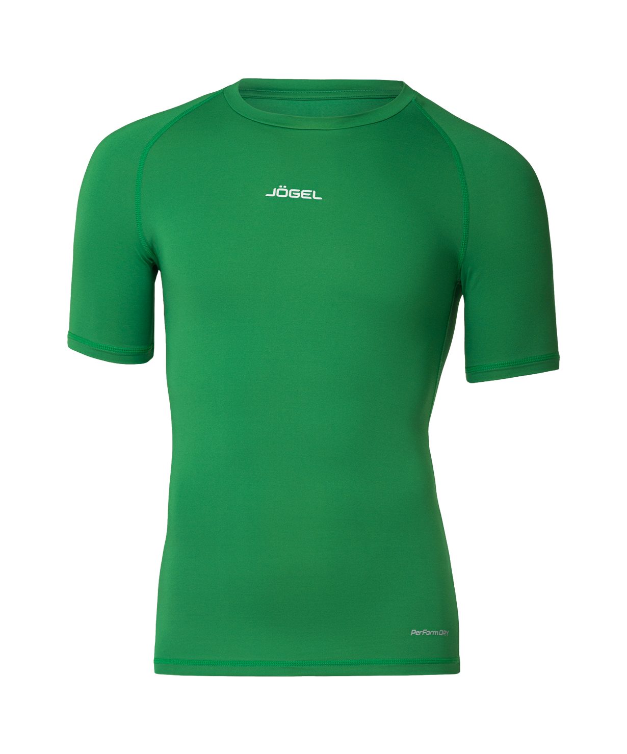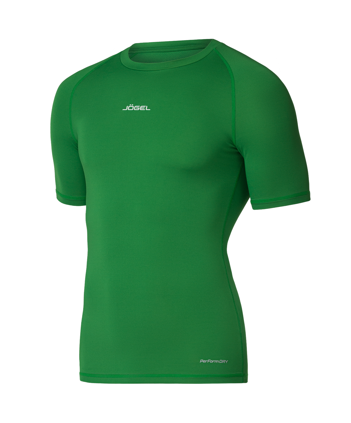 Компрессионная футболка JÖGEL CAMP PerFormDRY Baselayer SS Tee с коротким рукавом оптимальна для занятий спортом. Модель облегающего кроя изготовлена из качественной ткани с функцией PerFormDRY: материал эффективно отводит влагу с поверхности тела на наружный слой, придает необходимую эластичность изделию и обеспечивает возвращение в первоначальное состояние при растяжении. Ткань также обладает компрессионными свойствами, поддерживая мышцы в тонусе и снижая усталость. Круглая горловина и рукав реглан плотно прилегают к телу, гарантируя комфорт во время занятий и полную свободу движений. В модели дополнительно использована технология «плоский шов», исключающая дискомфорт при эксплуатации изделия и увеличивающая срок службы компрессионной футболки благодаря использованию эластичных нитей повышенной прочности. Спортивная футболка с двумя логотипами JÖGEL, расположенными посередине спереди и сзади, прекрасно сочетается с другой спортивной продукцией бренда.\nPerFormDRY - технология обработки ткани, которая помогает спортсменам оставаться сухими и чувствовать себя комфортно при интенсивных нагрузках.\nПреимущества:\nАнатомический крой;\nФункция PerFormDRY;\nЭффективное влагоотведение.\nХарактеристики:\nСостав: 90% полиэстер, 10% спандекс\nЦвет: зеленый\nРазмер: XS, S, M, L, XL, XXL\nТип упаковки: пакет зип-лок\nПроизводство: Китай