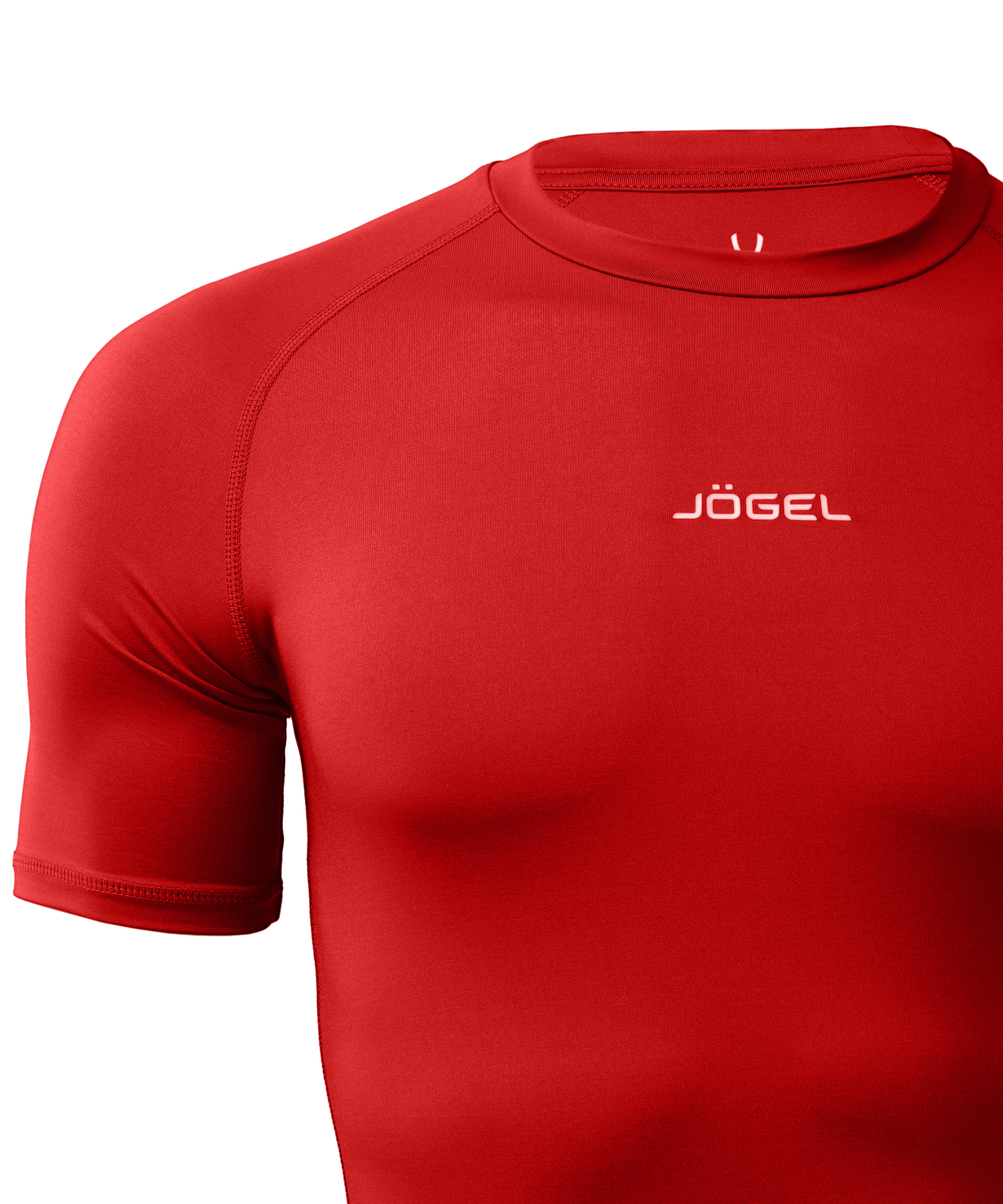 Компрессионная футболка JÖGEL Camp PerFormDRY Top SS с коротким рукавом оптимальна для занятий спортом. Модель облегающего кроя изготовлена из качественной ткани с функцией PerFormDRY: материал эффективно отводит влагу с поверхности тела на наружный слой, придает необходимую эластичность изделию и обеспечивает возвращение в первоначальное состояние при растяжении. Ткань также обладает компрессионными свойствами, поддерживая мышцы в тонусе и снижая усталость. Круглая горловина и рукав реглан плотно прилегают к телу, гарантируя комфорт во время занятий и полную свободу движений. В модели дополнительно использована технология «плоский шов», исключающая дискомфорт при эксплуатации изделия и увеличивающая срок службы компрессионной футболки благодаря использованию эластичных нитей повышенной прочности. Спортивная футболка с двумя логотипами JÖGEL, расположенными посередине спереди и сзади, прекрасно сочетается с другой спортивной продукцией бренда.\nPerFormDRY - технология обработки ткани, которая помогает спортсменам оставаться сухими и чувствовать себя комфортно при интенсивных нагрузках.\nАнатомический крой;\nФункция PerFormDRY;\nЭффективное влагоотведение.\nХарактеристики:\nСостав: 90% полиэстер, 10% эластан\nЦвет: красный\nРазмер: XS, S, M, L, XL, XXL, XXXL\nВид упаковки: пакет зиплок с картонной этикеткой и стикером\nСтрана производства: Китай