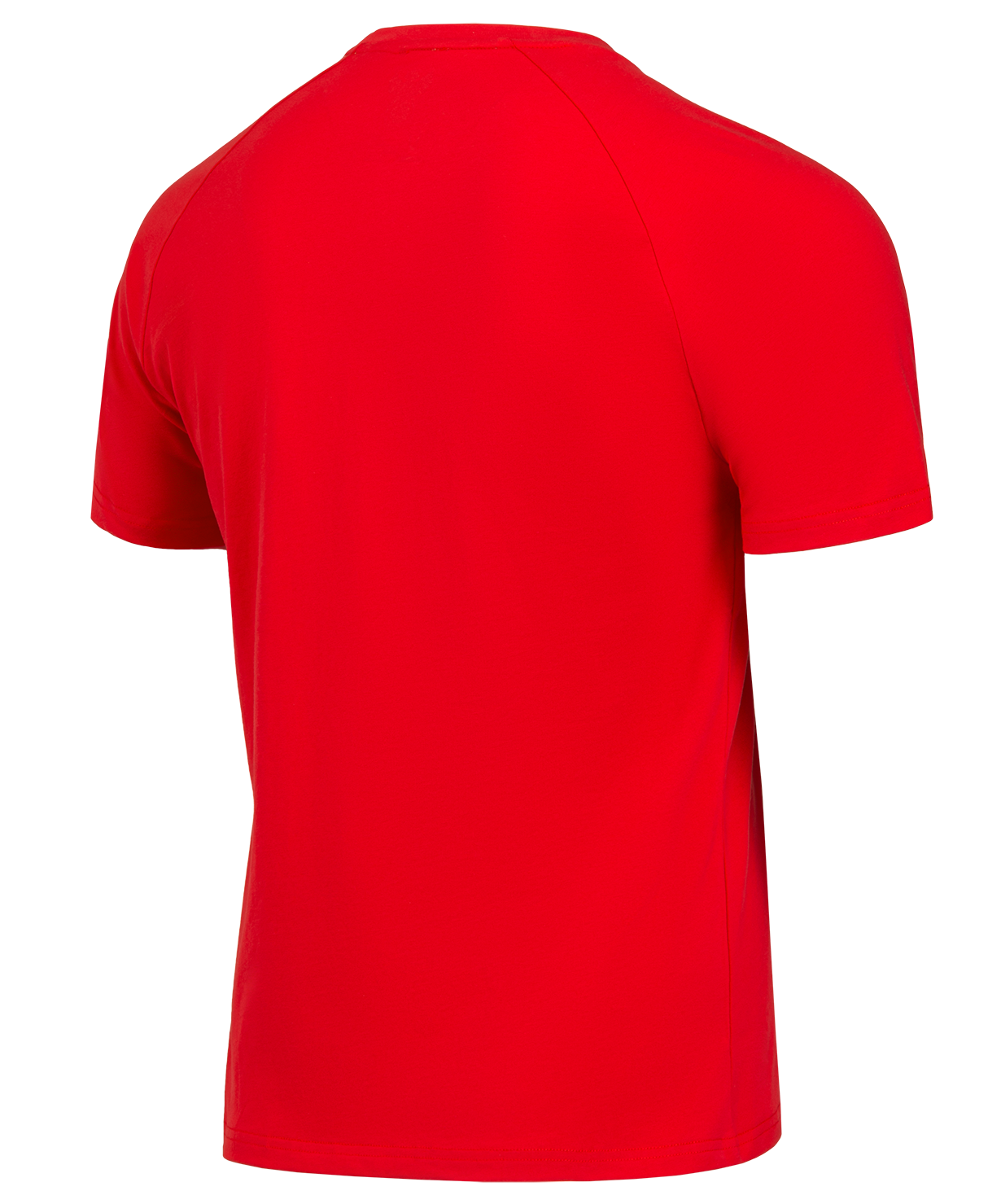 Базовая футболка из натурального хлопка высокого качества. Мягкий материал приятен на ощупь, комфортен в носке, отлично сохраняет форму и цвет. Рукав реглан, атлетичная посадка.\nПреимущества:\nФутболка полуприлегающего силуэта с круглой горловиной выполнена из мягкого хлопкового трикотажа высокого качества;\nОтличная воздухопроницаемость и износоустойчивость;\nНе пиллингуется и выдерживает многократные стирки.\nХарактеристики:\nСостав: 100% хлопок\nЦвет: красный\nРазмерный ряд: XS, S, M, L, XL, XXL, XXXL\nВид упаковки: пакет зип лок с картонной этикеткой и стикером\nСтрана производства: Китай