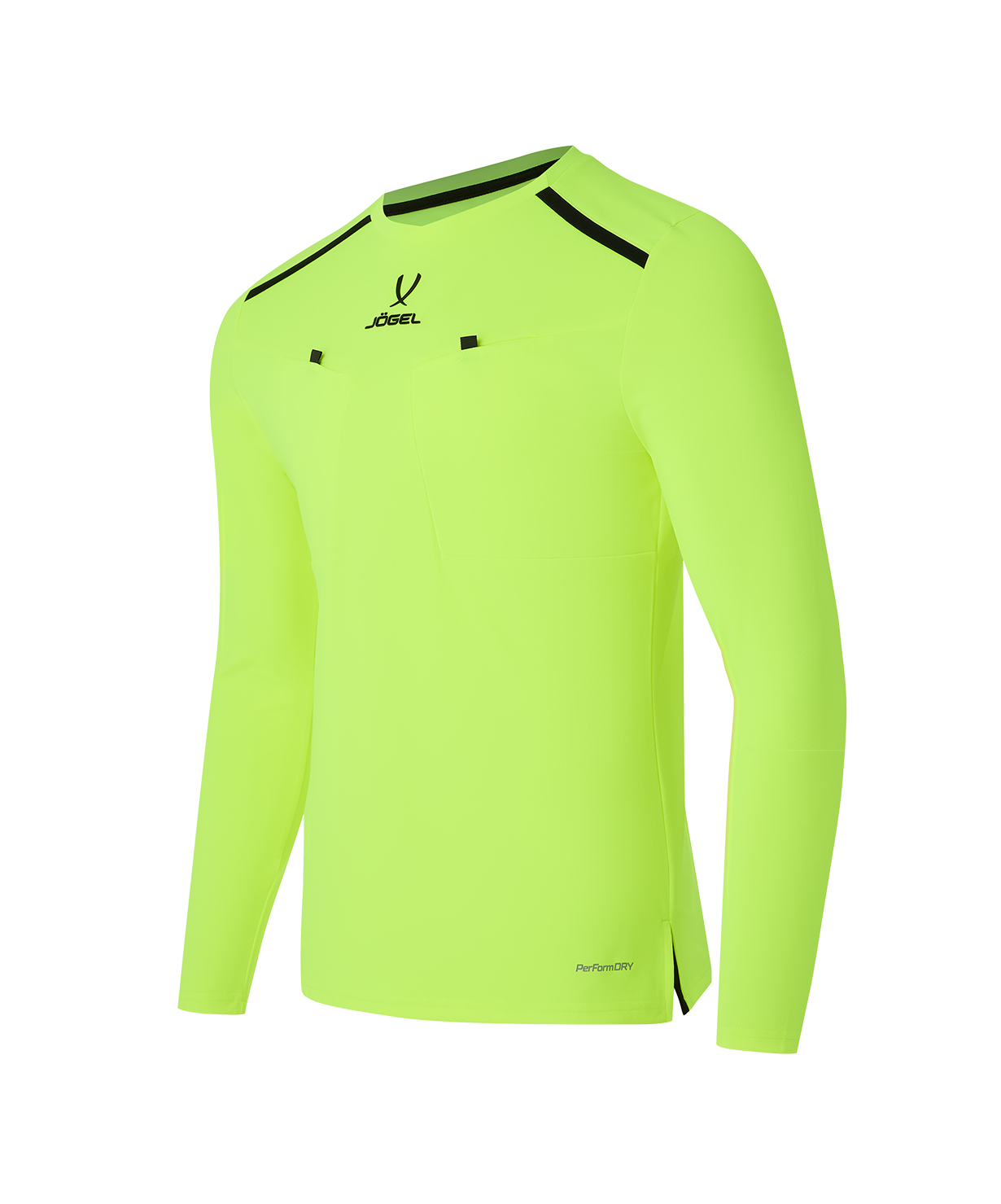 Футболка судейская JÖGEL DIVISION PerFormDRY Referee LS Tee создана для проведения матчей и соревнований команд. Она изготовлена из высококачественного материала с технологией PerFormDRY, ткань имеет хорошие влагоотводящие свойства и отлично пропускает воздух. Модель устойчива к износу, проста в уходе и быстро сохнет.\nФутболка атлетичного силуэта дополнена отрезной кокеткой с контрастными вставками в швах. Оригинальная V-образная горловина выполнена из комбинации риба и основной ткани. Спинка из сетчатой ткани обеспечивает лучшую воздухопроницаемость и влагоотведение.\nНа груди предусмотрены два накладных кармана под карточки, закрывающиеся на velcro-липучку с тесьмой. В центре футболки располагается 3D-логотип бренда.\nReferee Tee позволяет создать гармоничный комплект с судейскими шортами JÖGEL Referee shots.\nPerFormDRY - это специальная технология обработки тканей JÖGEL, которая способствует быстрому выведению влаги и помогает спортсменам чувствовать себя комфортно при интенсивных нагрузках.\nПреимущества:\nУдобная модель с длинным рукавом;\nАтлетичный силуэт;\nСетчатая спинка;\nНакладные карманы с застежками-липучками;\nТехнология PerFormDRY.\nХарактеристики:\nСостав: 100% полиэстер\nЦвет: желтый неон\nРазмер: S, M, L, XL, XXL\nТип упаковки: пакет зип-лок\nПроизводство: Китай
