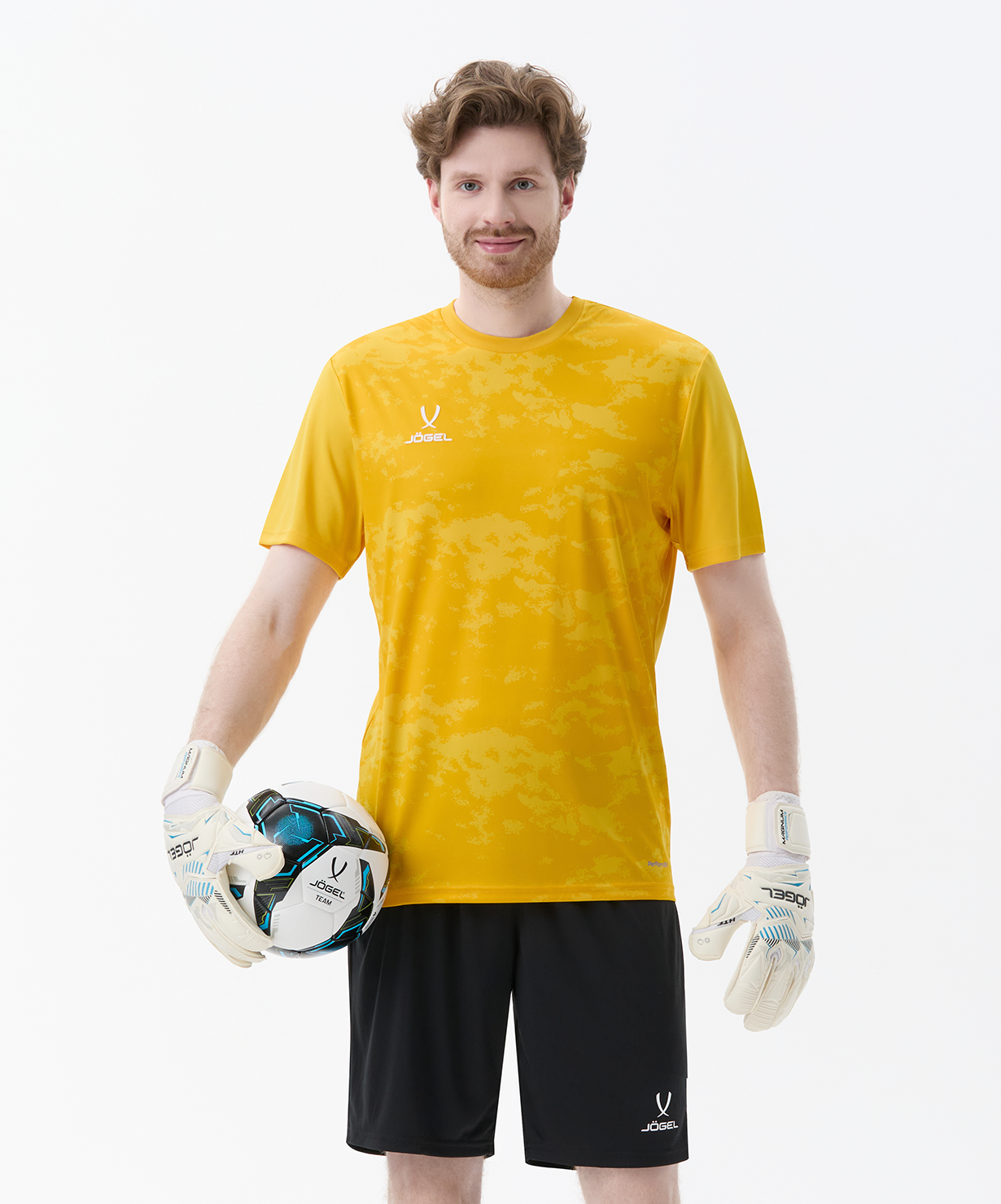 Футболка вратарская Jögel DIVISION PerFormDRY GK Splash – универсальная экипировка для игры в футбол и занятий спортом. Футболка атлетичного силуэта выполнена из легкого и приятного на ощупь шелковистого материала. Дышащая и эластичная ткань с применением технологии PerFormDRY прекрасно отводит влагу от кожи, помогая сохранять ощущение комфорта в течение всего матча. С правой стороны располагается белый логотип, сделанный из специального силиконового материала по технологии 3D - нанесения.\nPerFormDRY - это специальная технология обработки тканей Jögel, которая способствует быстрому выведению влаги и помогает спортсменам чувствовать себя комфортно при интенсивных нагрузках.\nПреимущества:\nАтлетичный силуэт;\nЛегкий материал приятен на ощупь;\nДышащая эластичная ткань;\nТехнология PerFormDRY.\nХарактеристики:\nСостав: 100% полиэстер\nЦвет: желтый\nРазмер: XS, S, M, L, XL, XXL, XXXL\nТип упаковки: пакет зип-лок\nПроизводство: Китай