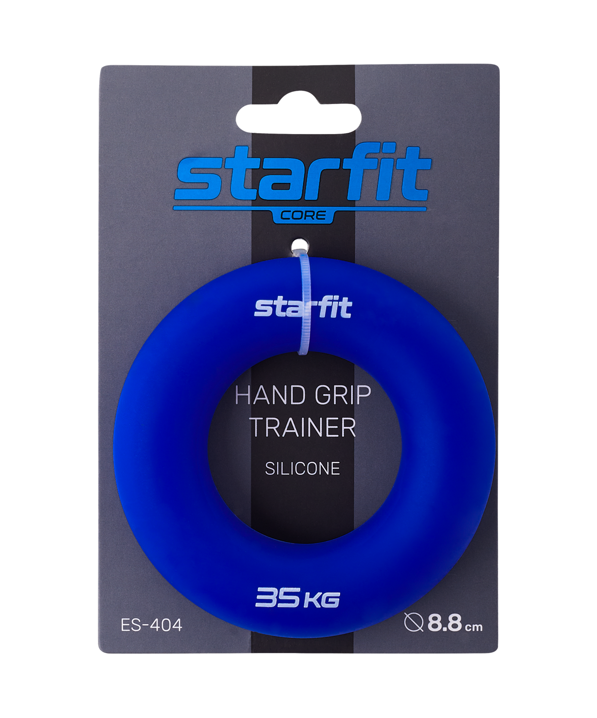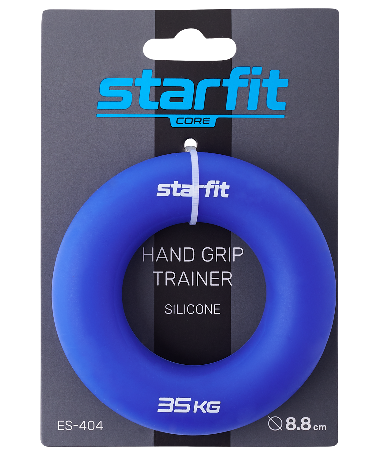 Эспандер кистевой ES-404 - это упругий тренажер для рук в виде кольца. Эспандер STARFIT поможет провести качественную тренировку лучезапястного сустава. Мышцы предплечья, пальцев рук, а также связки и сухожилия, - кистевой эспандер позволит поддерживать их в нужном тонусе без громоздкого спортинвентаря. Эспандер для рук не займет много места, вы сможете размять мышцы в любом месте: по пути на работу или во время обеденного перерыва, а также использовать спортивный инвентарь для фитнеса дома.\nЭспандер кольцо сделан из силикогеля – приятного на ощупь и гибкого материала, который всегда возвращает первоначальную форму. Этот тренажер для спорта не пахнет, а технология производства позволяет придать изделию сочную и яркую окраску. Эспандер кистевой STARFIT имеет диаметр 8,8 см. Такой размер удобен подросткам и взрослым. Эспандеры ES-404 будут особенно актуальны спортсменам с подготовленными к тренировкам мышцами.\nПреимущества:\nСделан из силикагеля;\nНе пахнет;\nИнтенсивная проработка мышц.\nХарактеристики:\nМатериал: силикагель\nДиаметр: 8,8 см\nТолщина: 2,1 см\nНагрузка: 35 кг\nЦвет: темно-синий\nТип упаковки: картонная карточка с подвесом\nКоличество в упаковке: 50 шт.\nПроизводство: КНР