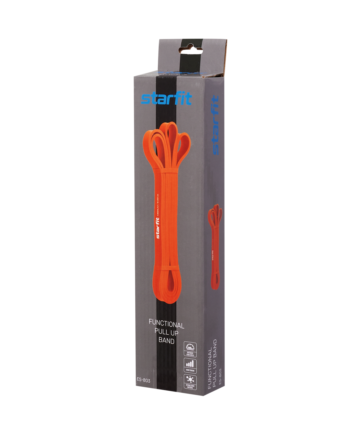 Лента эспандер ES-803 – многофункциональный тренажер для тела, необходимый спортсменам и любителям для комплексного развития мышц и связочно-сухожильного аппарата. Такая резинка для спорта позволяет активно проработать различные группы мышц, улучшить физическую форму и усовершенствовать растяжку. Силовая лента также пригодится для кросс-тренинга, такой спортивный инвентарь для фитнеса дома или в зале способен заменить и дополнить упражнения с тяжелыми весами. ES-803 поможет улучшить технику выполнения различных элементов, такой спортинвентарь также может быть использован как резинка для подтягивания на турнике.\nЛенточный эспандер STARFIT изготовлен из прочной резины. Лента силовая имеет запоминающийся дизайн, а узнаваемый логотип бренда выделяет модель среди других товаров.\nЗанимайтесь спортом правильно! При наличии различных травм или заболеваний рекомендуется проконсультироваться с лечащим врачом.\nПреимущества:\nМногофункциональный тренажер;\nКачественная проработка всего тела;\nСтепень нагрузки регулируется с помощью натяжения.\nХарактеристики:\nМатериал: резина\nЦвет: красный\nДлина петли, см: 208\nШирина, см: 4,4\nТолщина, см: 0,45\nМаксимальная нагрузка/сопротивление, кг: 54\nМаксимальное растяжение, см: 500\nВес без упаковки, кг: 0,4\nТип упаковки: цветная коробка\nКоличество в упаковке, шт: 1\nПроизводство: КНР