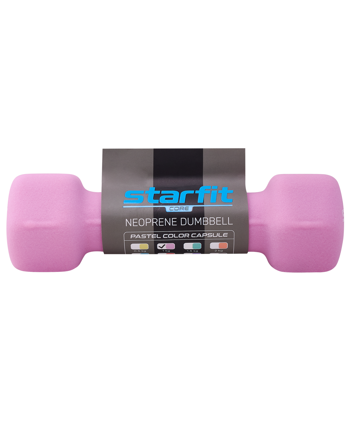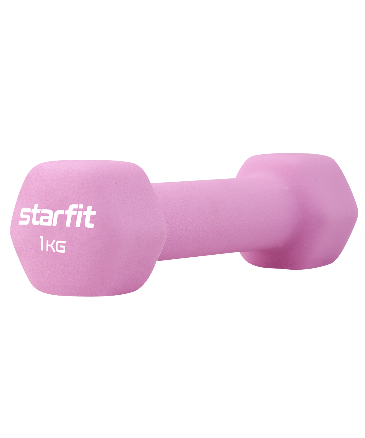 Гантель неопреновая DB-201 1 кг от STARFIT - надежный помощник в спорте. Она изготовлена из чугуна, который известен своей прочностью и долговечностью. Гантели из чугуна могут служить годами без потери качества. Верхнее покрытие снаряда выполнено из высококачественного неопрена. Свойства материала позволяют поверхности гантели поглощать часть влаги с ладоней, что обеспечивает цепкий хват. Неопреновый слой приятен на ощупь и комфортен по температуре для ладоней (изделие не перегреется, находясь на солнце, и не вызовет дискомфорт при тренировках на улице в холодную погоду). Такие гантели оптимально подойдут для фитнеса в домашних условиях, так как не царапают пол и не издают много шума при случайных ударах о напольное покрытие.\nDB-201 имеет гексагональную форму. Это позволяет устранить проблему перекатывания по полу, снижая риск травм спортсмена и его окружения.\nГексагональная легкая гантель – незаменимый снаряд для тренировки мышечного каркаса. Такие веса активно используются в фитнесе и функциональном тренинге. Гантели весом 1 килограмм применяются в лечебной физкультуре, беге и других видах спорта. Вес изделия также расширяет сферу применения, позволяя использовать этот спортинвентарь мужчинам, женщинам и даже детям.\nПреимущества:\nПриятное на ощупь неопреновое покрытие;\nУдобная гексагональная форма;\nОбеспечивает цепкий хват;\nИзготовлена из прочного чугуна;\nАктуальный цвет.\nХарактеристики:\nЦвет: розовый пастель\nВес без упаковки, кг: 1\nВнешний материал: неопрен\nВнутренний материал: чугун\nДлина, см: 16,3\nШирина, см: 5,5\nВысота, см: 5,1\nДлина хвата, см: 8\nДиаметр хвата, см: 3,2\nТип упаковки: запаянный пакет со стикером\nКоличество в упаковке, шт: 1\nПроизводство: КНР