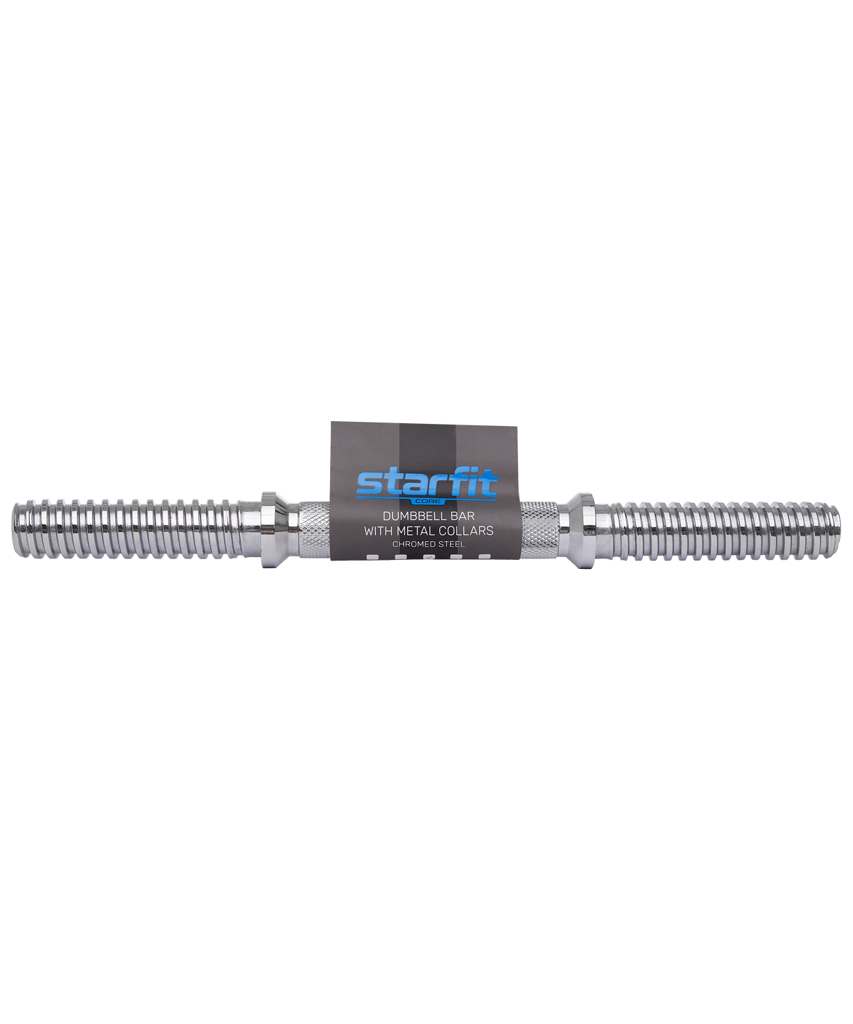Гриф гантельный BB-107 от STARFIT - надежный помощник в спорте. Диаметр изделия составляет 25 мм, а длина изделия равна 35 см.\nГриф для гантели изготовлен из металла. Модель отличается высокой прочностью. Этот спортивный инвентарь надежнее, чем аналоги - его долговечность обусловлена цельнометаллической конструкцией без использования дополнительных материалов, способных ломаться в процессе эксплуатации.\nБрутальная насечка на рукояти придает хвату большую эффективность, а экспертные металлические замки для грифа надежно фиксируют диски на снаряде.\nСпектр упражнений, которые можно выполнять, практически безграничен. Гантель – незаменимый снаряд для тренировки мышечного каркаса. Этот спортинвентарь активно используется в фитнесе и функциональном тренинге, применяется в лечебной физкультуре, беге и других видах спорта. Вы можете дополнительно приобрести диски под свои потребности и расширить диапазон воздействия, используя гантельный гриф, чтобы подобрать разборные гантели с оптимальным весом.\nПреимущества:\nМеталлические замки входят в комплект;\nВысокопрочная конструкция;\nОтличное сцепление с ладонью.\nХарактеристики:\nМатериал грифа: металл\nОбщая длина грифа, см: 35\nДиаметр грифа, см: 2,5\nДлина хвата, см: 12\nДиаметр хвата, см: 2,5\nДлина посадочного места с каждой стороны, см: 10,5\nДиаметр отверстия металлического замка, см: 2,6\nШирина металлического замка, см: 1,7\nМаксимальная нагрузка, кг: 50\nВес без упаковки, кг: 1,65\nТип упаковки: запаянный пакет, стикер\nПроизводство: КНР