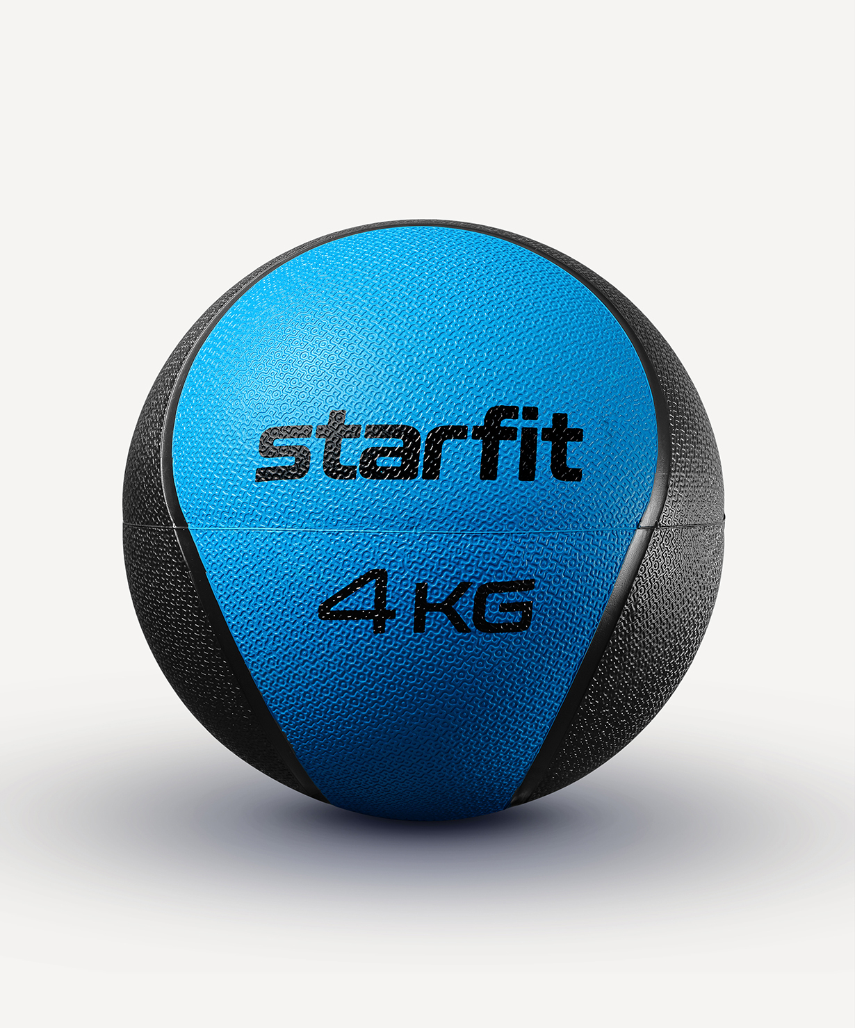 Медбол GB-702 высокой плотности - это важный аксессуар для функциональной тренировки тела. Серия медболов STARFIT отличается жесткостью поверхности, а также ярким цветным дизайном.\nМедбол выполнен из резины и наполнен цементом внутри. Он отлично отскакивает, позволяя выполнять разнообразные упражнения в динамике. Его небольшой вес оптимален как для начинающих, так и для опытных спортсменов.\nМедицинбол используют в групповых программах, функциональном тренинге, бодибилдинге и фитнесе. Также утяжеленный мяч применяют профессиональные спортсмены в единоборствах. Такие снаряды для фитнеса помогают в тренировке мышц кора (пресса), мышц рук, грудной клетки, спины, плеч, ног и ягодиц. С его помощью можно провести полноценную тренировку всего тела, привести мышцы в тонус и сформировать красивый рельеф. Спортивный мяч актуален для домашних занятий и зала.\nПреимущества:\nЖесткая поверхность;\nКачественный отскок;\nНебольшой вес (медбол 4 кг).\nХарактеристики:\nЦвет: синий\nВес, кг: 4\nВнешний материал: резина\nНаполнитель: цемент\nДиаметр, см: 22,8\nТип упаковки: пакет со стикером\nПроизводство: КНР
