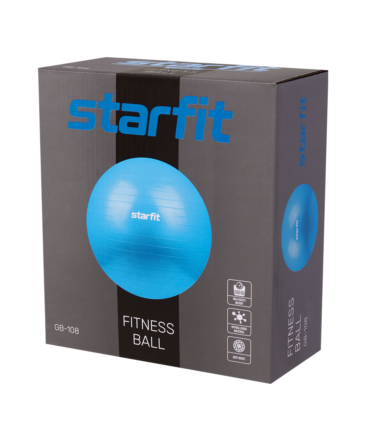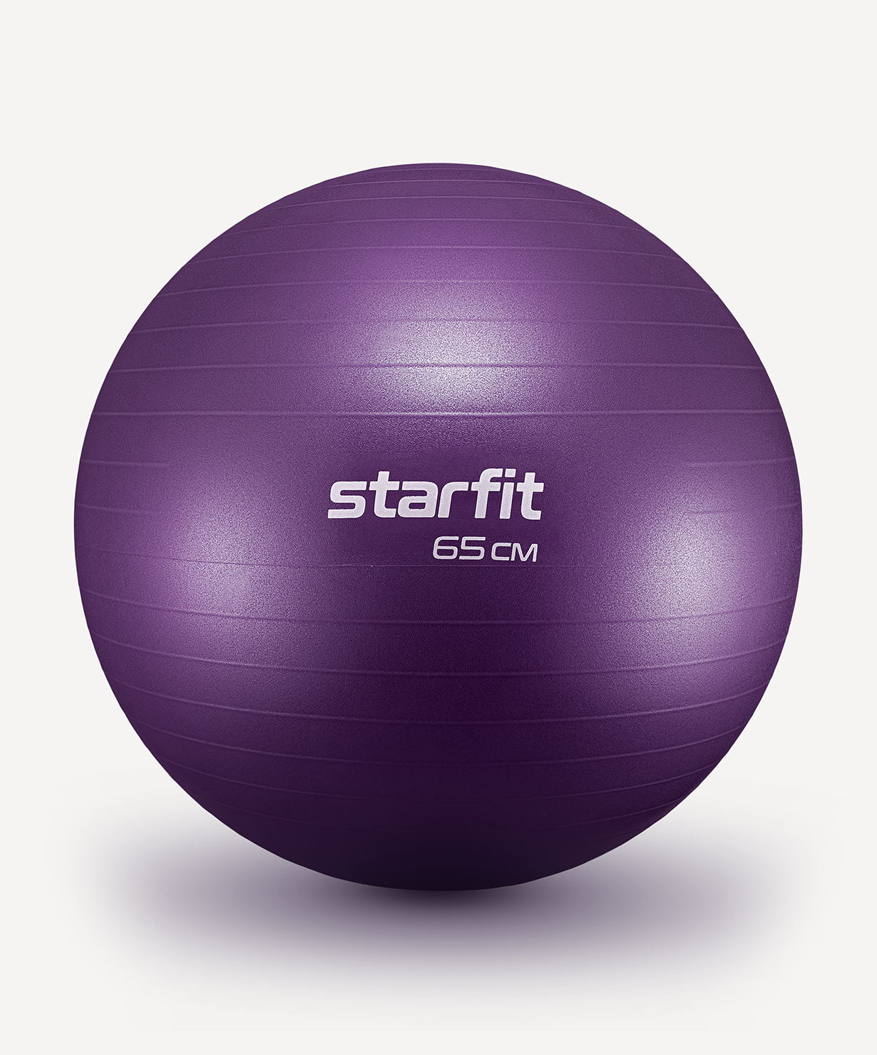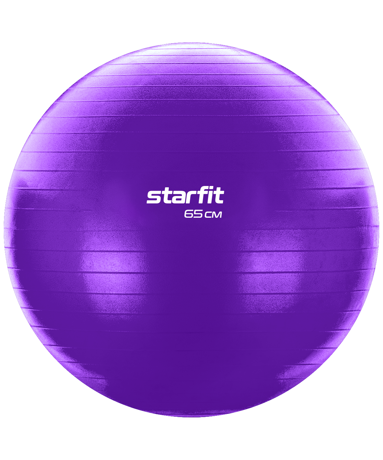 Фитбол GB-108 бренда STARFIT – полезный спортивный инвентарь для фитнеса дома и в зале, улучшающий координацию движений и развивающий чувство равновесия. Он позволяет тренировать все мышцы тела, вы можете использовать фитнес-мяч как основной или второстепенный снаряд, применяя и другие спортивные товары для фитнеса. Фитбол такого размера также оптимален для восстановления после травм. Гимнастический мяч помогает снять напряжение со связочного аппарата и расслабиться после долгого дня. Безопасность занятий обеспечивает система «Антивзрыв».\nМяч для фитнеса 65 см приятен на ощупь, он комфортен и взрослым, и детям, поэтому его часто используют как фитбол для беременных женщин, и как мяч гимнастический для укачивания малышей. Фитбол компактен в сдутом состоянии, поэтому он пользуется спросом у покупателей, выбирающих товары для тренировок дома. Массажная поверхность оказывает дополнительный расслабляющий эффект.\nПреимущества:\nКомпактное хранение;\nСистема «Антивзрыв»;\nМассажный эффект;\nДля тренировок, укрепления здоровья и укачивания детей.\nХарактеристики:\nДиаметр, см: 65\nМатериал: поливинилхлорид\nЦвет: фиолетовый\nМаксимальный вес пользователя, кг: 200\nСистема "антивзрыв": имеется\nВес без упаковки, гр: 1000\nТип упаковки: цветная коробка\nКоличество в упаковке, шт: 1\nПроизводство: КНР