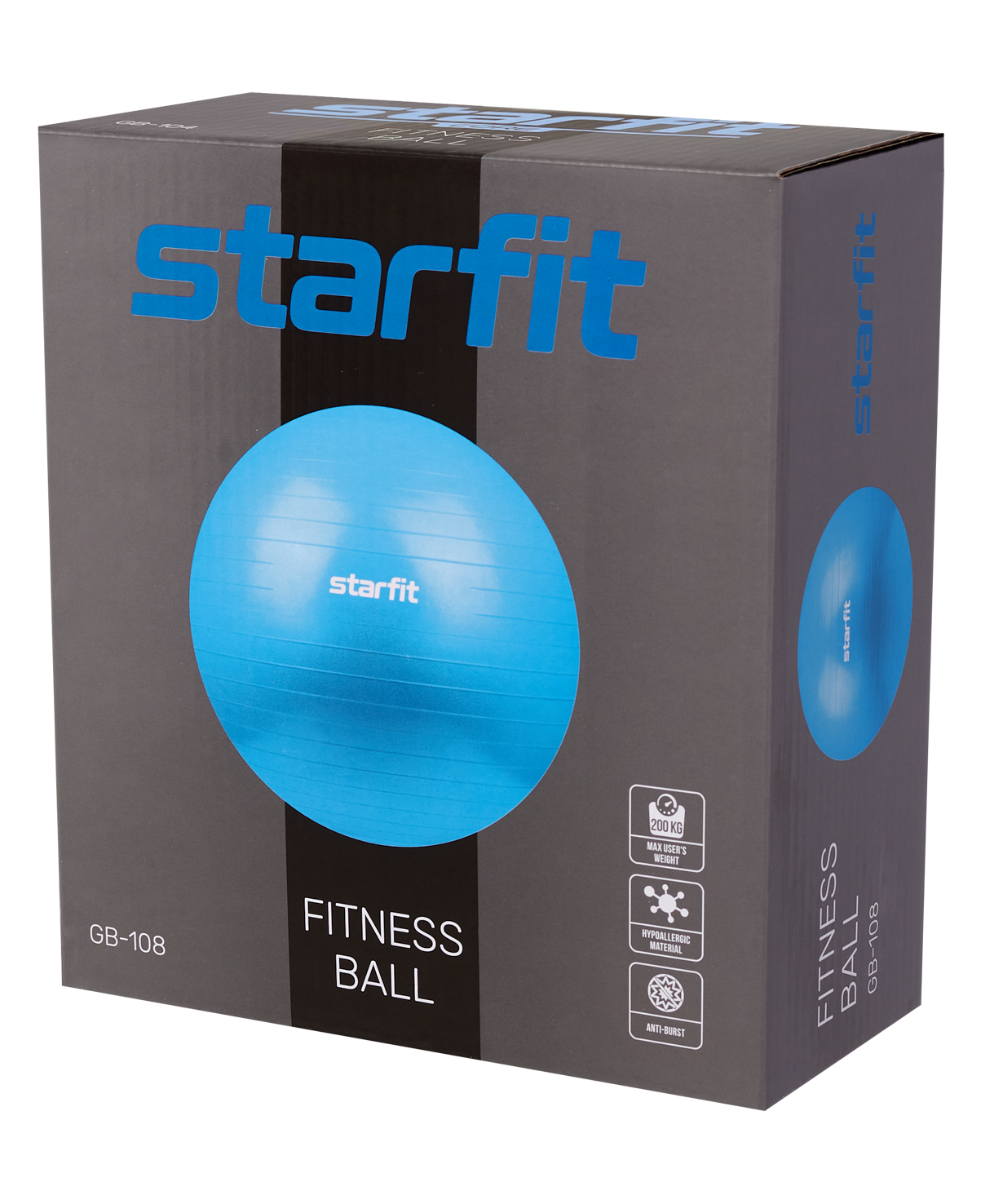 Фитбол GB-108 бренда STARFIT – полезный спортивный инвентарь для фитнеса дома и в зале, улучшающий координацию движений и развивающий чувство равновесия. Он позволяет тренировать все мышцы тела, вы можете использовать фитнес-мяч как основной или второстепенный снаряд, применяя и другие спортивные товары для фитнеса. Фитбол такого размера также оптимален для восстановления после травм. Гимнастический мяч помогает снять напряжение со связочного аппарата и расслабиться после долгого дня. Безопасность занятий обеспечивает система «Антивзрыв».\nМяч для фитнеса 85 см приятен на ощупь, он комфортен и взрослым, и детям, поэтому его часто используют как фитбол для беременных женщин, и как мяч гимнастический для укачивания малышей. Фитбол компактен в сдутом состоянии, поэтому он пользуется спросом у покупателей, выбирающих товары для тренировок дома. Массажная поверхность оказывает дополнительный расслабляющий эффект.\nПреимущества:\nКомпактное хранение;\nСистема «Антивзрыв»;\nМассажный эффект;\nДля тренировок, укрепления здоровья и укачивания детей.\nХарактеристики:\nДиаметр, см: 85\nМатериал: поливинилхлорид\nЦвет: желтый\nМаксимальный вес пользователя, кг: 200\nСистема "антивзрыв": имеется\nВес без упаковки, гр: 1500\nТип упаковки: цветная коробка\nКоличество в упаковке, шт: 1\nПроизводство: КНР