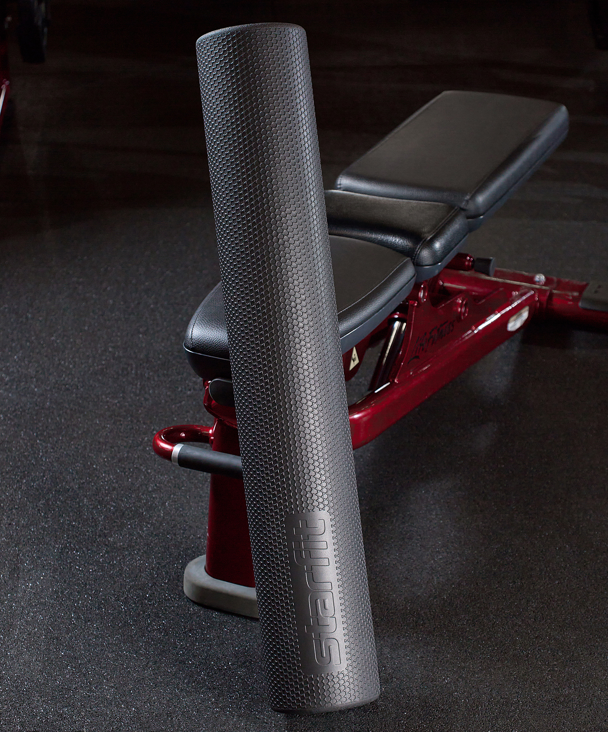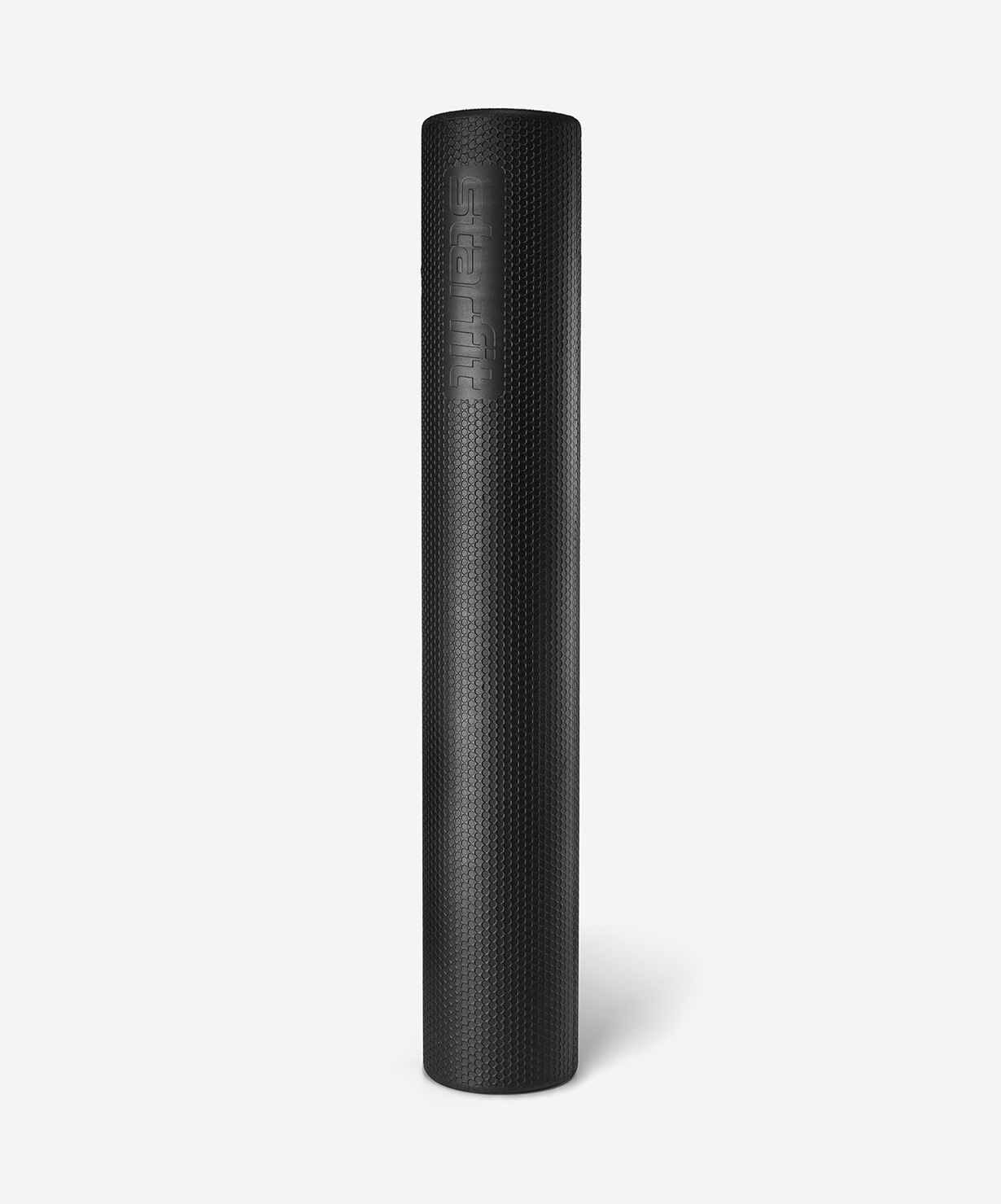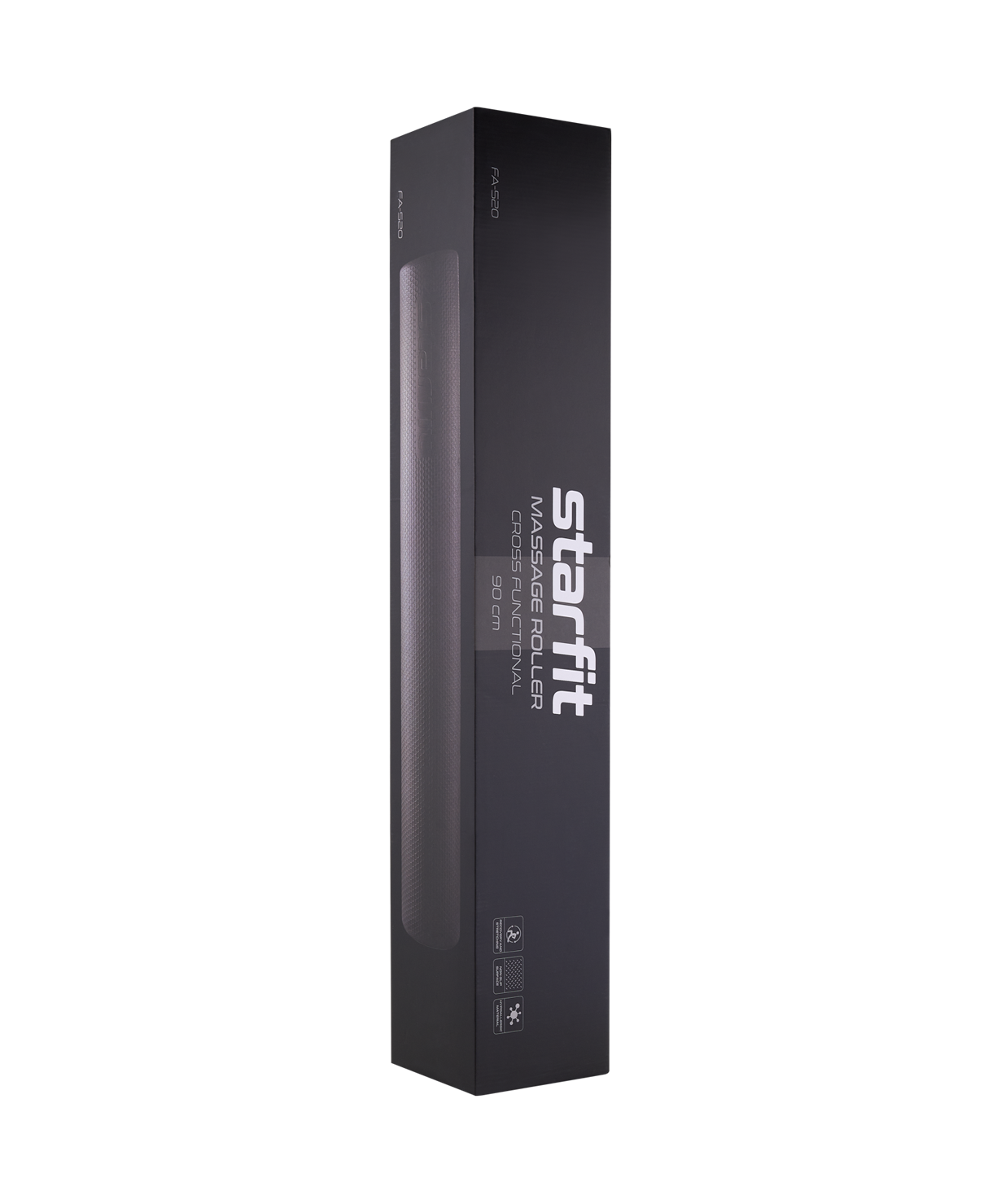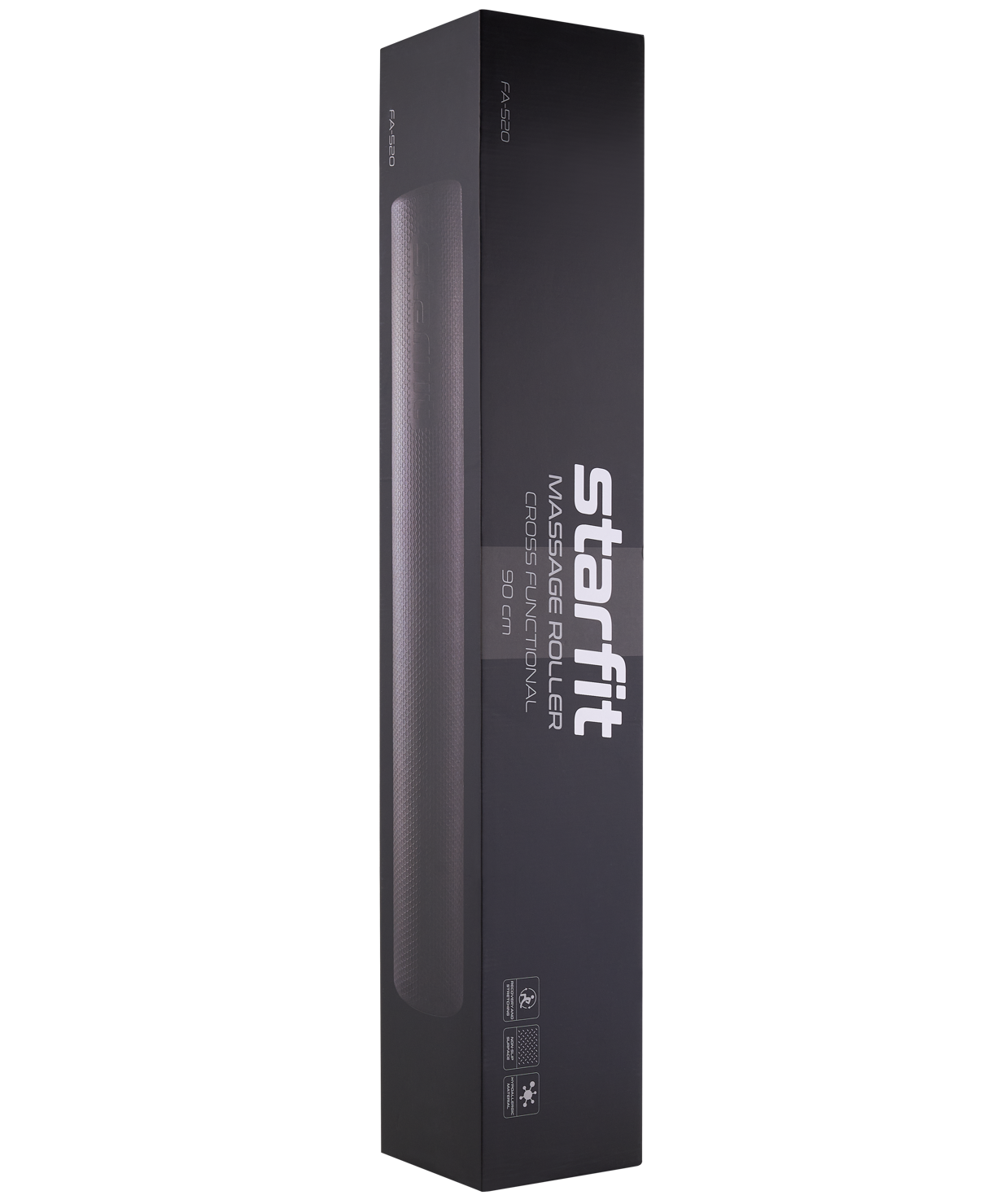 Ролик массажный FA-520 от STARFIT – спортивный инвентарь, предназначенный для массажа после фитнеса или тяжелого рабочего дня, незаменим для профессиональных спортсменов. Массажный ролик для йоги и для тренировок поможет устранить боли в мышцах и суставах, кроме того, валик для фитнеса положительно влияет на общее самочувствие. Поверхность модели с уникальным паттерном STARFIT имеет среднюю жесткость, что позволяет осуществлять качественный массаж: такой ролик для тела комфортен даже для людей с травмами. Эффективное воздействие обеспечивает особый ребристый рисунок, МФР ролл FA-520 рекомендуется при низком, среднем и высоком гипертонусе мышц.\nСпортивный валик практичен. Такой массажер для спины или ног всегда готов к использованию, он не скользит и не деформируется. Его длина 90 см, вы сможете осуществить бережный массаж всего тела, одновременно воздействуя на большие группы мышц.\nИзделие поставляется в картонной коробке, которая защищает поверхность ролика от повреждений при транспортировке.\nПреимущества:\nСредняя жесткость;\nПозволяет задействовать большое количество мышц тела;\nПодходит для восстановления после травм;\nАнтистатическая нескользкая поверхность.\nХарактеристики:\nМатериал: этиленвинилацетат\nЦвет: черный\nДлина, см: 90\nДиаметр, см: 15\nМаксимальная нагрузка, кг: 200\nВес без упаковки, кг: 0,615\nУпаковка: картонная цветная коробка, термоусадочная пленка\nКоличество в упаковке, шт: 1\nПроизводство: КНР