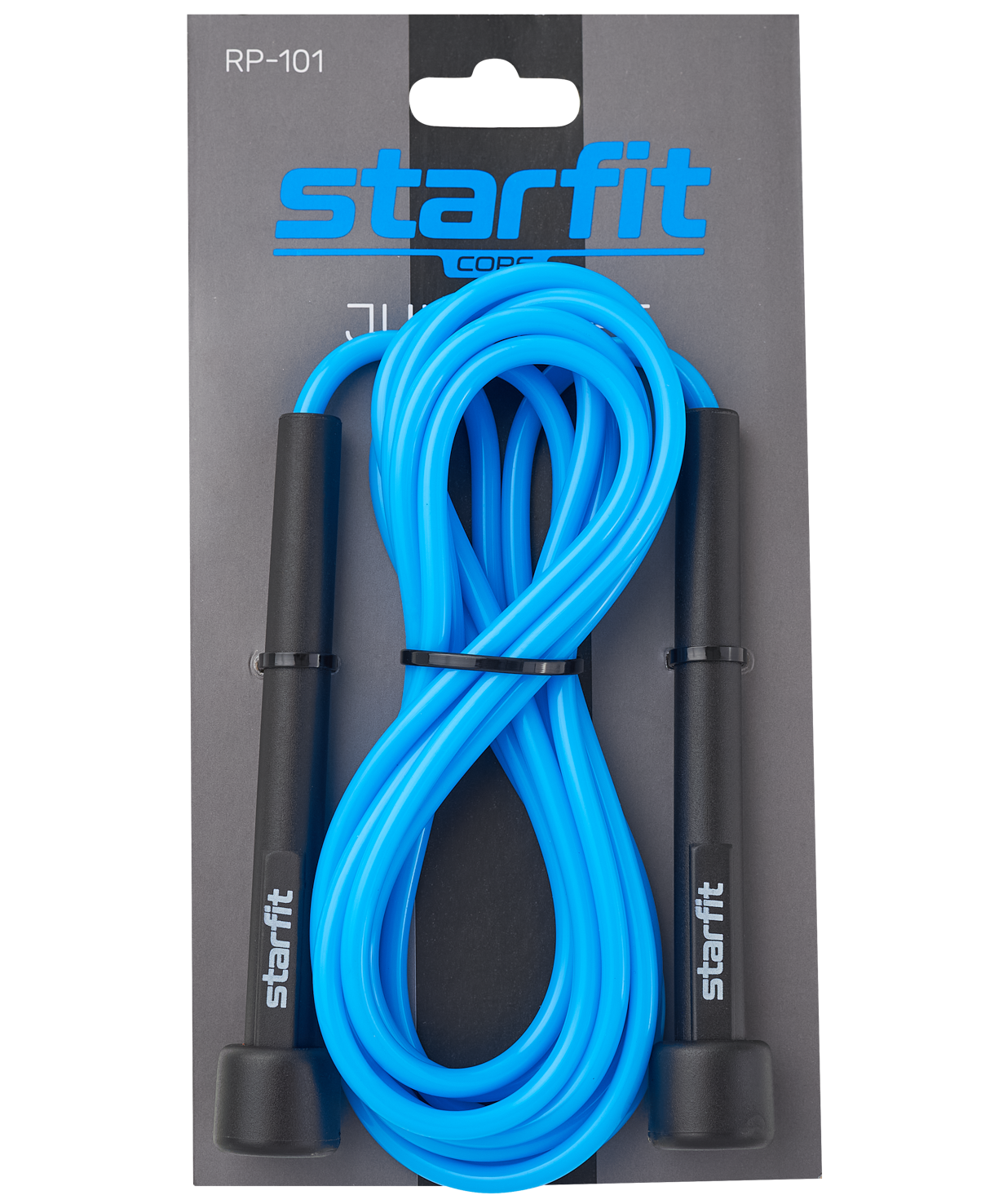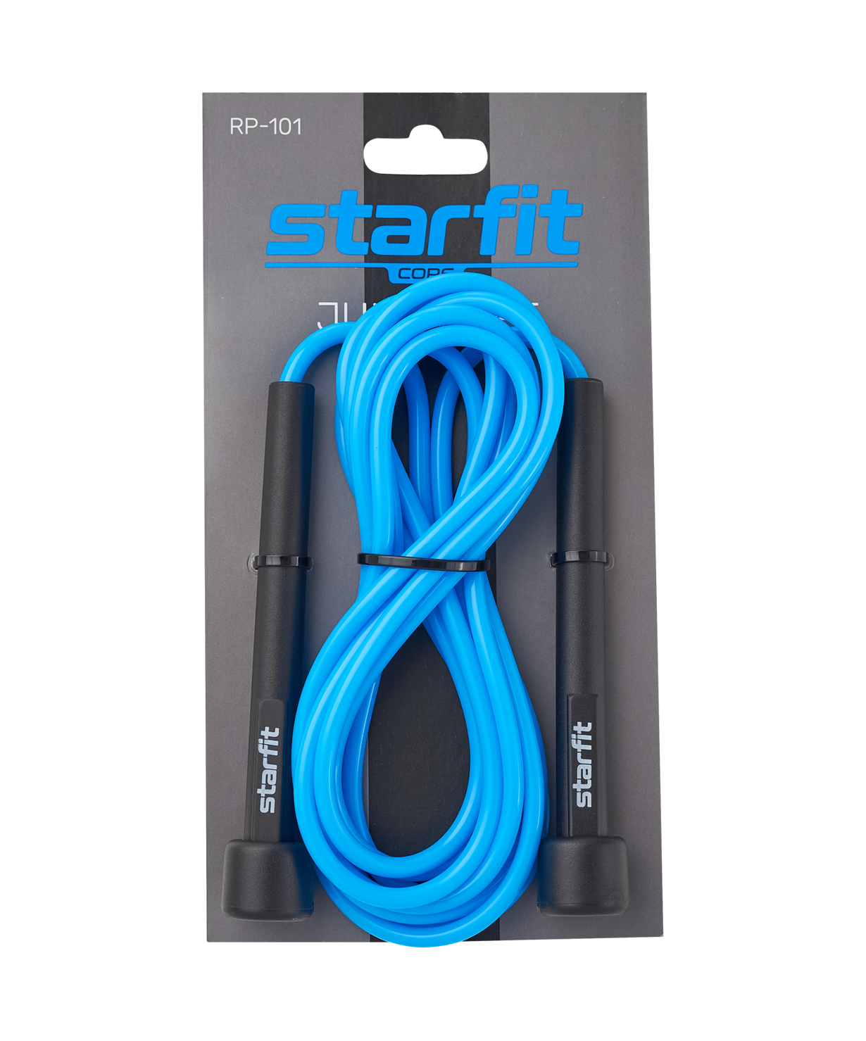 Скакалка RP-101 бренда STARFIT – многофункциональный спортивный инвентарь для фитнеса дома или на улице. Такая модель отлично подойдет для функционального тренинга. Скакалка для фитнеса взрослая также поможет быстро привести себя в форму, обратите на нее внимание, если ищете товары для похудения. Изделие будет также актуально и как скакалка для кроссфита, и как скакалка для бокса. Прыгалки взрослые комфортны в использовании, легкие пластиковые ручки надежно фиксируются кистью. Скакалки регулируются по длине и сделаны из высококачественных современных материалов, а эффектный дизайн выделит спортивные товары от STARFIT среди других аксессуаров.\nСкакалка имеет длину 3 метра, такой размер подойдет для взрослых с ростом не выше 180 см.\nПреимущества:\nЛегкие пластиковые ручки;\nРегулируемая длина;\nИзносостойкое изделие.\nХарактеристики:\nЦвет: синий\nМатериал шнура: поливинилхлорид\nДлина шнура, см: 300\nДиаметр шнура, см: 0,5\nМатериал ручки: пластик\nДлина ручки, см: 12,5\nДиаметр ручки, см: 1,1\nТип упаковки: пакет с хедером\nВес без упаковки, кг: 0,09\nПроизводство: КНР
