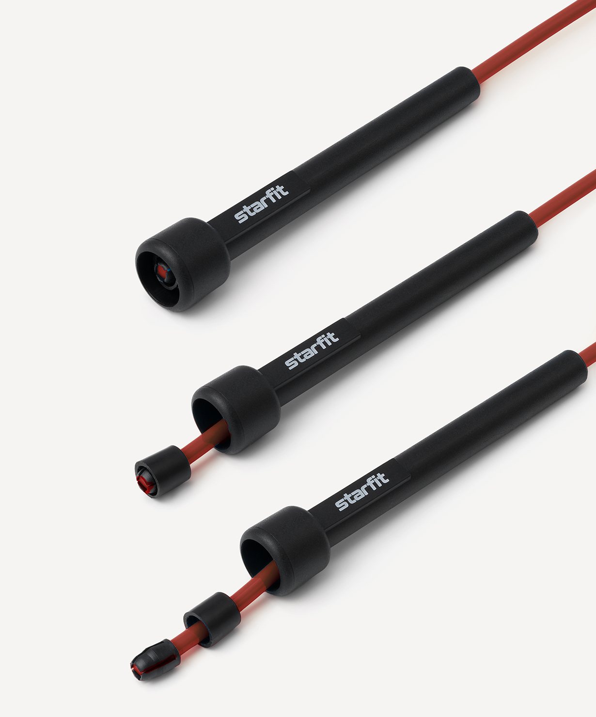 Скакалка RP-101 бренда STARFIT – многофункциональный спортивный инвентарь для фитнеса дома или на улице. Такая модель отлично подойдет для функционального тренинга. Скакалка для фитнеса взрослая также поможет быстро привести себя в форму, обратите на нее внимание, если ищете товары для похудения. Изделие будет также актуально и как скакалка для кроссфита, и как скакалка для бокса. Прыгалки взрослые комфортны в использовании, легкие пластиковые ручки надежно фиксируются кистью. Скакалки регулируются по длине и сделаны из высококачественных современных материалов, а эффектный дизайн выделит спортивные товары от STARFIT среди других аксессуаров.\nСкакалка имеет длину 3 метра, такой размер подойдет для взрослых с ростом не выше 180 см.\nПреимущества:\nЛегкие пластиковые ручки;\nРегулируемая длина;\nИзносостойкое изделие.\nХарактеристики:\nЦвет: малиновый\nМатериал шнура: ПВХ\nДлина шнура, см: 300\nДиаметр шнура, см: 0,5\nМатериал ручки: пластик\nДлина ручки, см: 12,5\nДиаметр ручки, см: 1,1\nТип упаковки: пакет с хедером\nВес без упаковки, кг: 0,09\nПроизводство: КНР