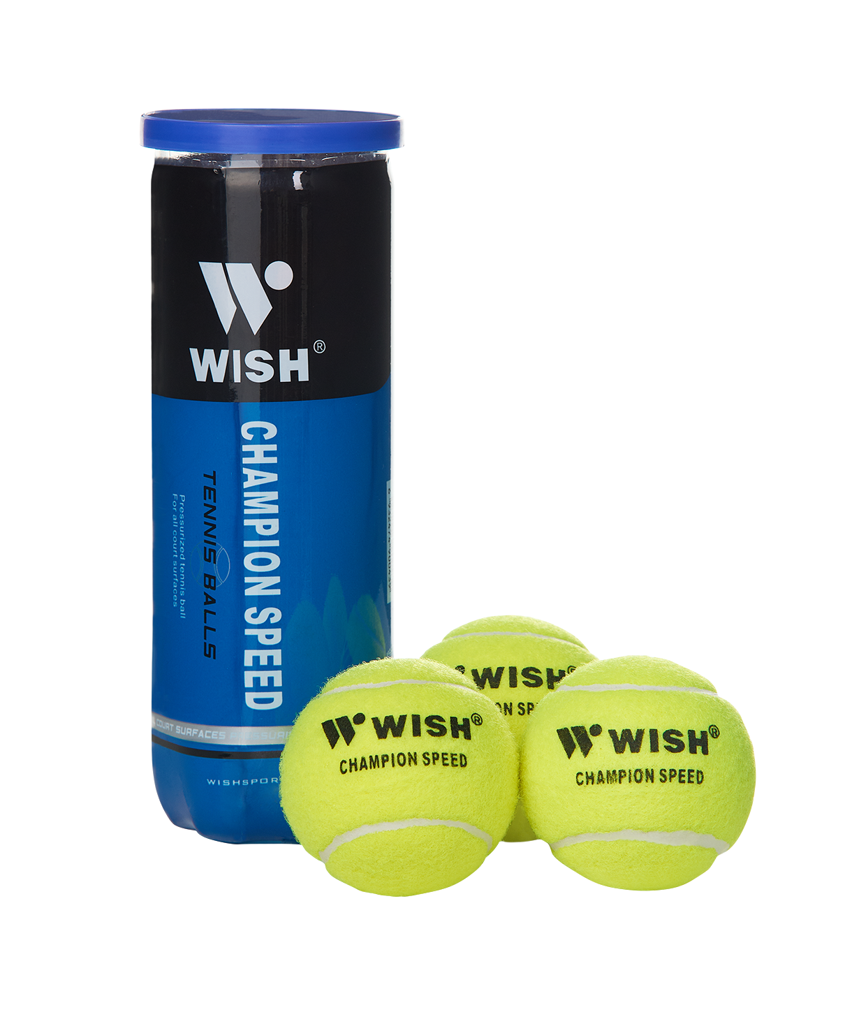 Премиальная новинка от Wish! Мячи для большого тенниса Champion Speed 610 идеально подходят для тренировок и соревнований на кортах с любой поверхностью. Они изготовлены из шерстяного войлока высшего качества, правильная длина ворса обеспечивает предсказуемый и правильный отскок на 1,35 – 1,45 метра.\nВ набор входят 3 мяча и удобная упаковка – банка. Благодаря такому хранению снаряды дольше сохраняют свои эксплуатационные свойства и необходимое давление внутри.\nПреимущества:\nПремиальные теннисные мячи для большого тенниса;\nДля тренировок и игр на любом покрытии;\nПредсказуемый и правильный отскок;\nНабор из 3 штук.\nХарактеристики:\nТип мяча: для тренировок\nМатериал мяча: резина\nМатериал покрытия: шерстяной войлок высшего качества\nТип игровой поверхности: all court\nОтскок, м: 1,35-1,45\nВес, г: 60\nДиаметр, см: 6,9\nЦвет: желто-зеленый\nТип упаковки: банка\nКоличество в упаковке, шт.: 3\nСтрана производства: Китай