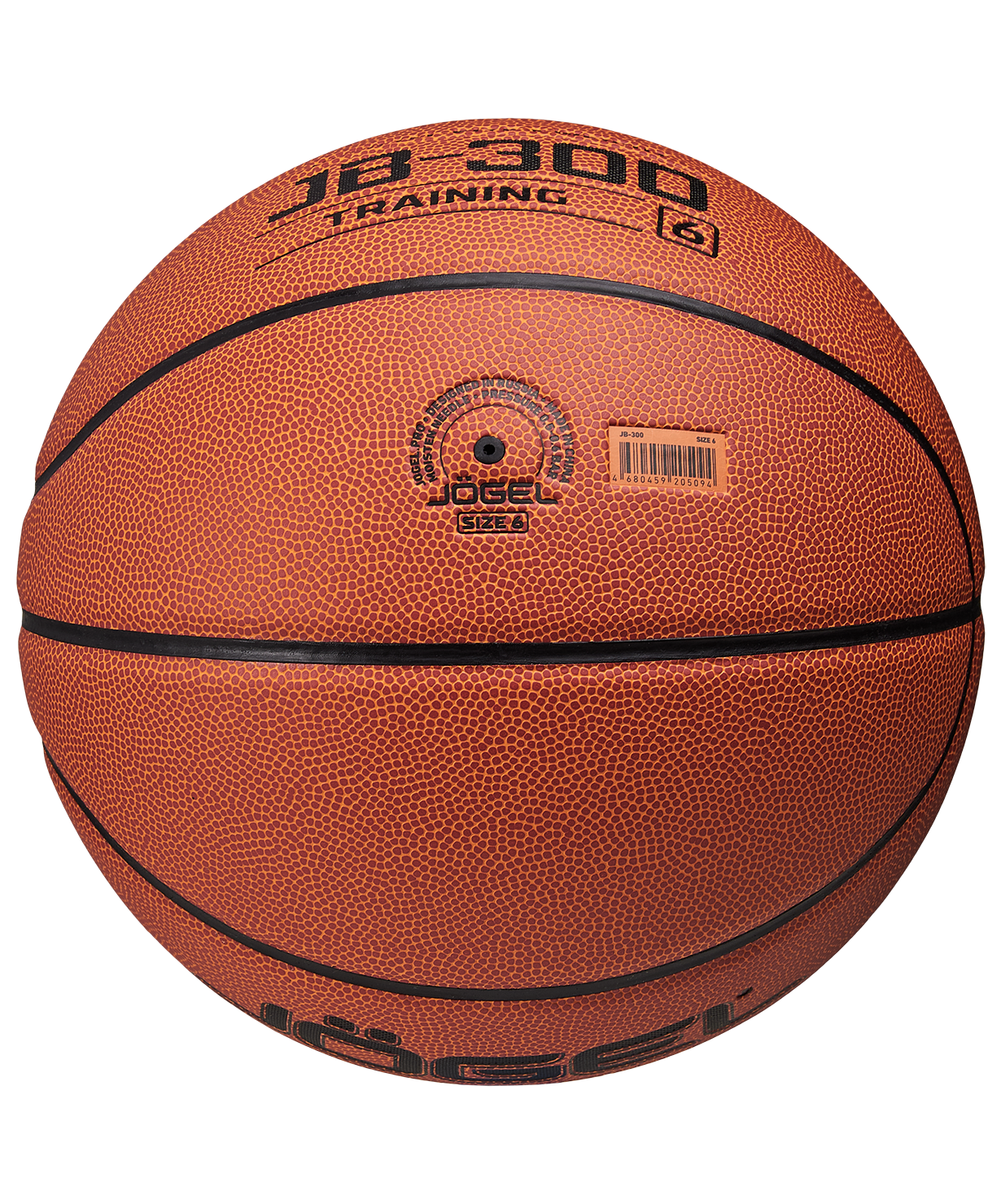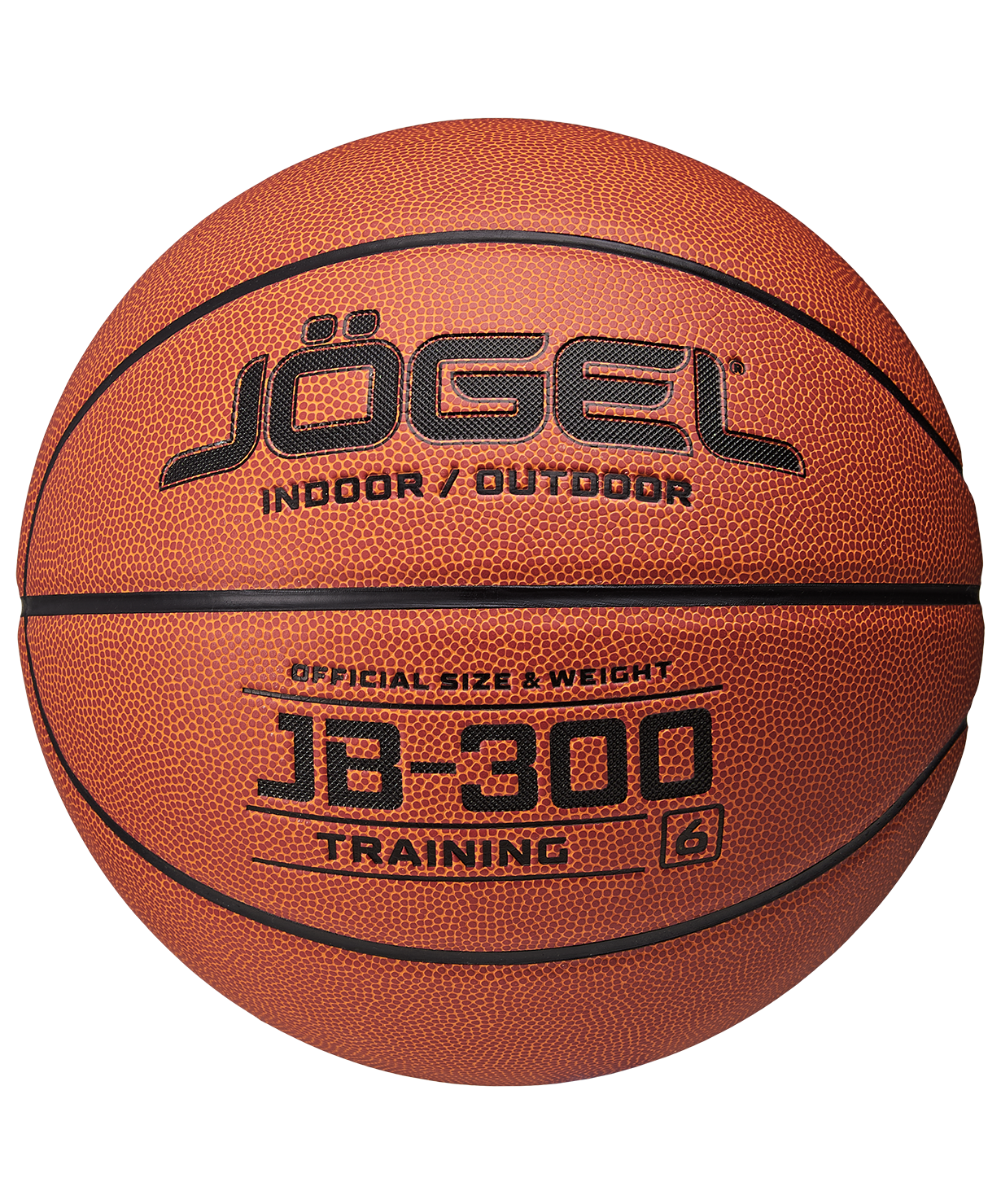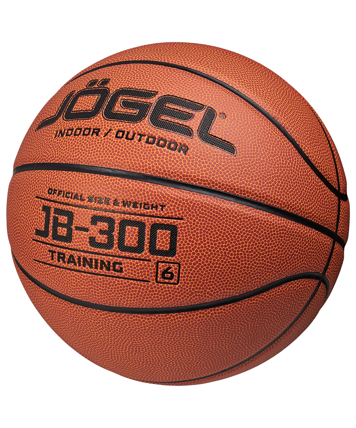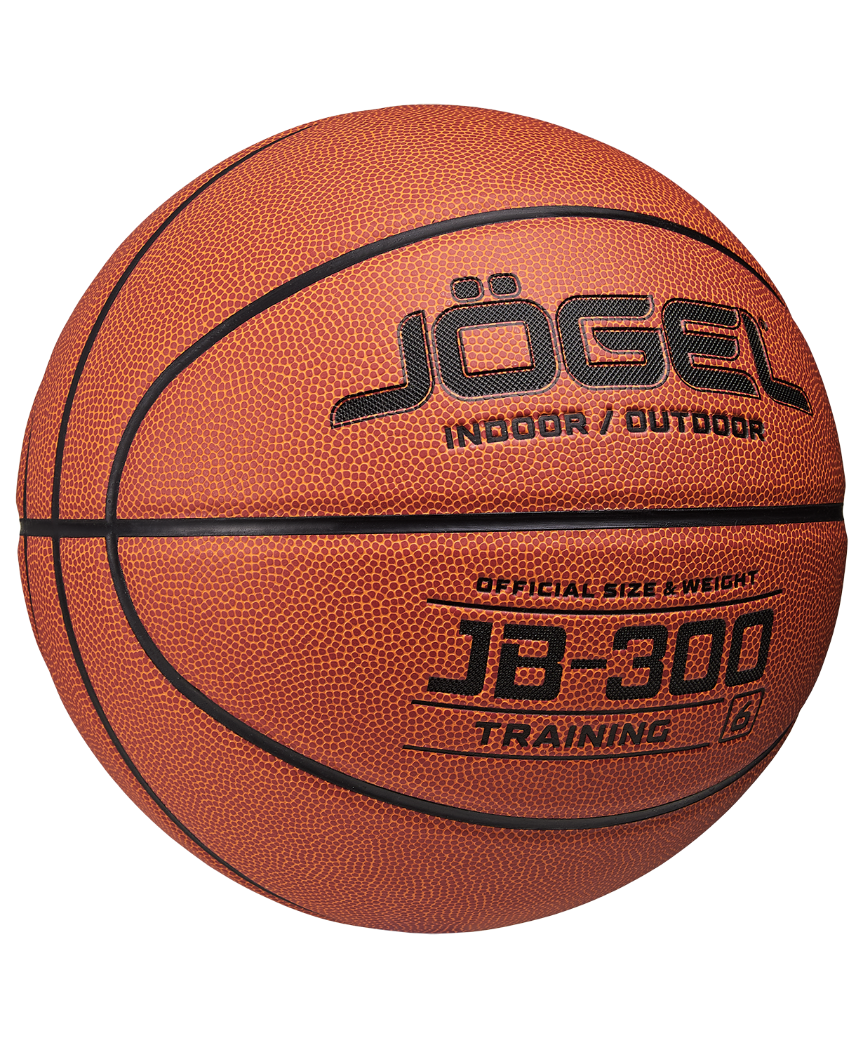 Уровень: Тренировочный мяч\nКатегория: INDOOR/OUTDOOR\nJB-300 №6 – это прекрасный баскетбольный мяч из серии TRAINING. Доступная цена в сочетании с обновленным более ярким материалом и улучшенным отскоком выгодно отличают его от аналогичных изделий других марок. Поверхность мяча выполнена из композитного материала, благодаря чему им можно играть практически на любой поверхности, как на улице, так и в зале. Благодаря технологии DeepChannel (глубокие каналы), используемой при производстве мячей Jögel, достигается лучший контроль во время броска и дриблинга. Размер №6 предназначается для девушек и юношей от 12 до 16 лет.\nДанный мяч рекомендован для любительской игры, тренировок и соревнований любительских команд и команд среднего уровня. Официальный размер и вес FIBA.\nВнимание: мяч поставляется в спущенном виде. Рекомендуем приобрести насос и иглу для накачивания.\nПреимущества:\nМаксимальный контроль мяча;\nДля игры в зале и на улице;\nТехнология DeepChannel.\nХарактеристики:\nРекомендованные покрытия: паркет, резина, бетон, асфальт\nМатериал поверхности: композитный материал\nМатериал камеры: бутил\nМатериал обмотки камеры: полиэстер\nТип соединения панелей: клееный\nКоличество панелей: 8\nРазмер: 6\nВес, гр: 510-567\nДлина окружности, см: 72-74\nРекомендованное давление: 0.5-0.6 бар\nОсновной цвет: оранжевый\nДополнительный цвет: черный\nПроизводство: КНР