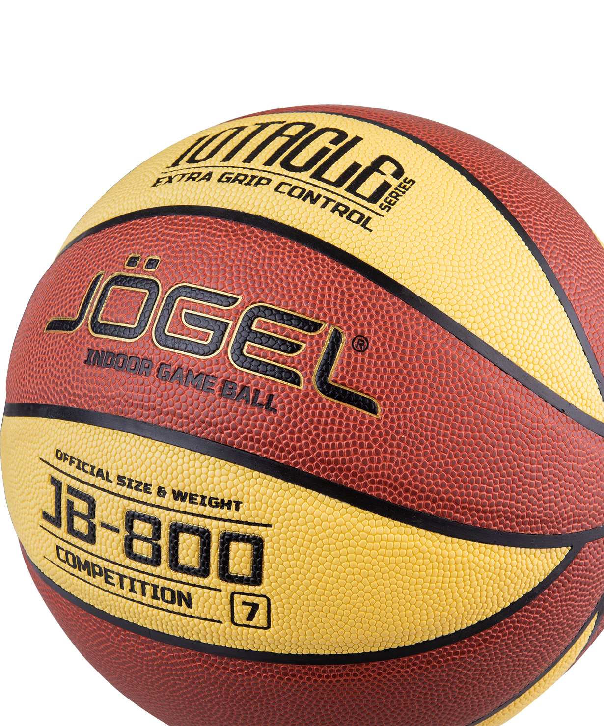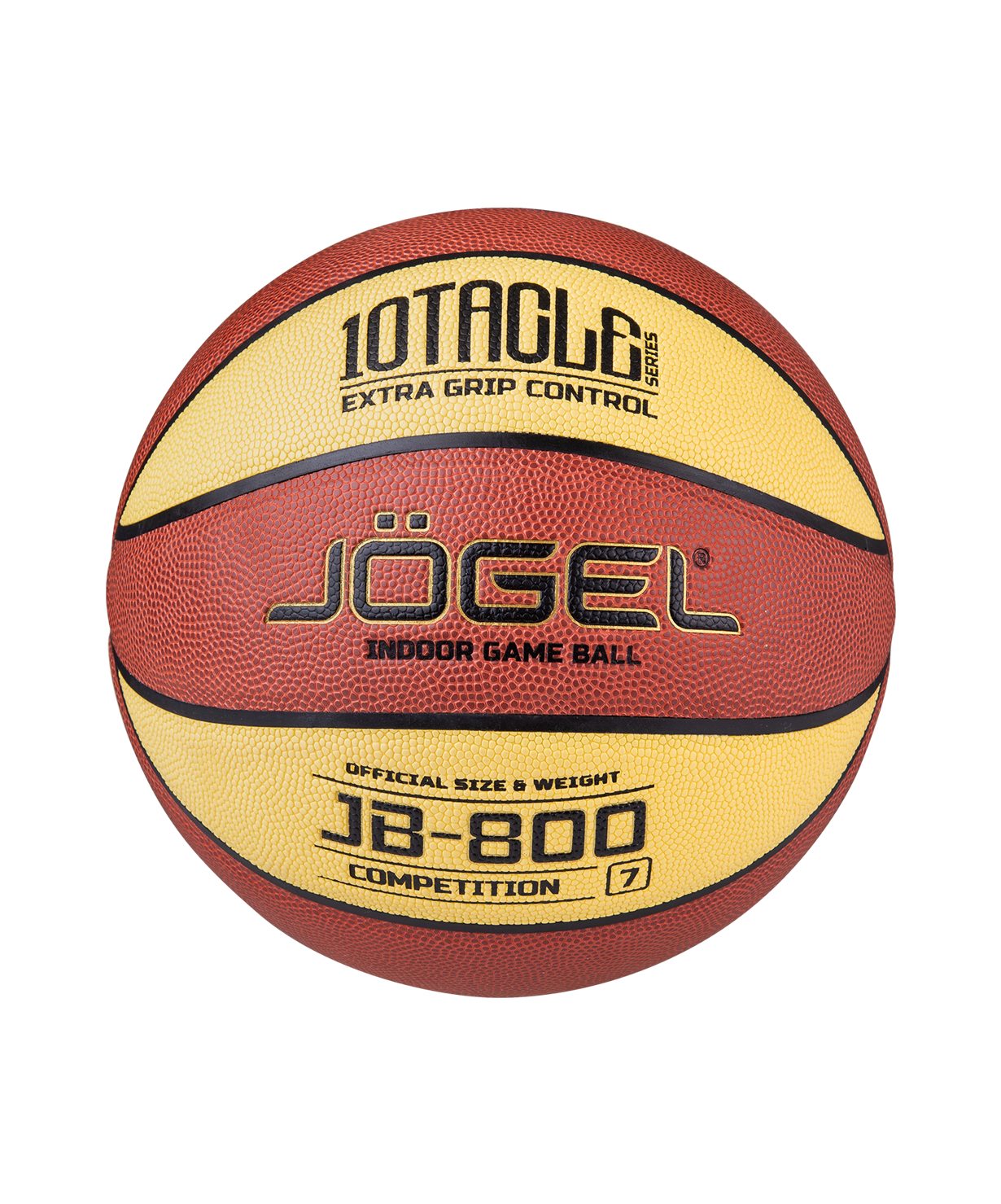 Уровень: Матчевый мяч\nКатегория: INDOOR GAME BALL\nJögel JB-800 №7 – один из топовых мячей коллекции Jögel, вобравший в себя все лучшие технологии для комфортных тренировок и игр команд любого уровня. Это великолепный баскетбольный мяч из новой серии 10TACLE. Уникальной особенностью серии 10TACLE является дизайнерская 10-ти панельная конструкция мяча, которая дополнительно повышает «цепкость» мяча во время игры и ярко выделяется своим дизайном. Поверхность мяча выполнена из современного композитного материала ACL (Absorbent Composite Leather) на основе микрофибры: пот и влага впитываются, повышается контроль мяча во время броска и дриблинга. Размер №7 предназначается для мужчин и юношей от 17 лет, это официальный размер для соревнований мужских команд. Данный мяч рекомендован для тренировок и соревнований команд высокого уровня. Официальный размер и вес FIBA.\nВнимание: мяч поставляется в спущенном виде. Рекомендуем приобрести насос и иглу для накачивания.\nмаксимальный контроль мяча\nпоглощение пота и влаги\nдолговечность\nХарактеристики:\nРекомендованные покрытия: паркет\nМатериал поверхности: композитный материал (микрофибра)\nМатериал камеры: бутил\nМатериал обмотки камеры: нейлон\nТип соединения панелей: клееный\nКоличество панелей: 10\nРазмер: 7\nВес: 567-650 гр\nДлина окружности: 75-78 см\nРекомендованное давление: 0.5-0.6 бар\nМяч поставляется: спущенный\nОсновной цвет: коричневый\nДополнительный цвет: желтый/черный\nПроизводство: КНР