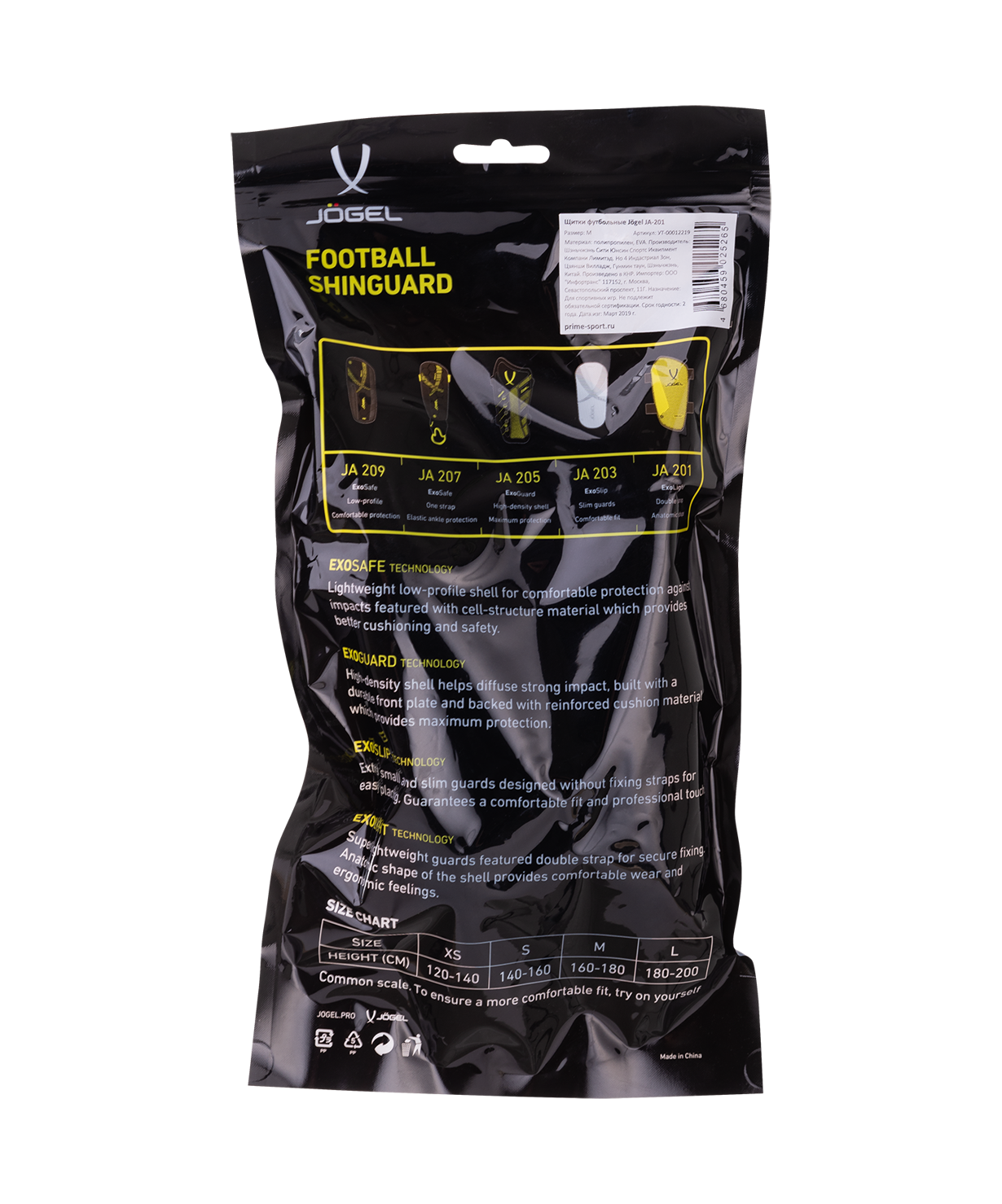 Сверхлегкие щитки с двойным ремешком для надежной фиксации на ноге. В щитках реализована технология ExoLight, обеспечивающая максимальную легкость. Анатомическая форма каркаса обеспечивает эргономичность и комфортные ощущения.\nТехнология: ExoLight\nХарактеристики:\nМатериал верха: полипропилен\nМатериал подкладки: этиленвинилацетат\nРазмерный ряд: XS, S, M, L\nОсновной цвет: желтый\nДополнительный цвет: черный\nТип фиксации: пара эластичных ремешков с липучками\nНазначение: футбол\nТип упаковки: фирменный пакет с европодвесом и с замком Zip-Lock\nПроизводство: КНР