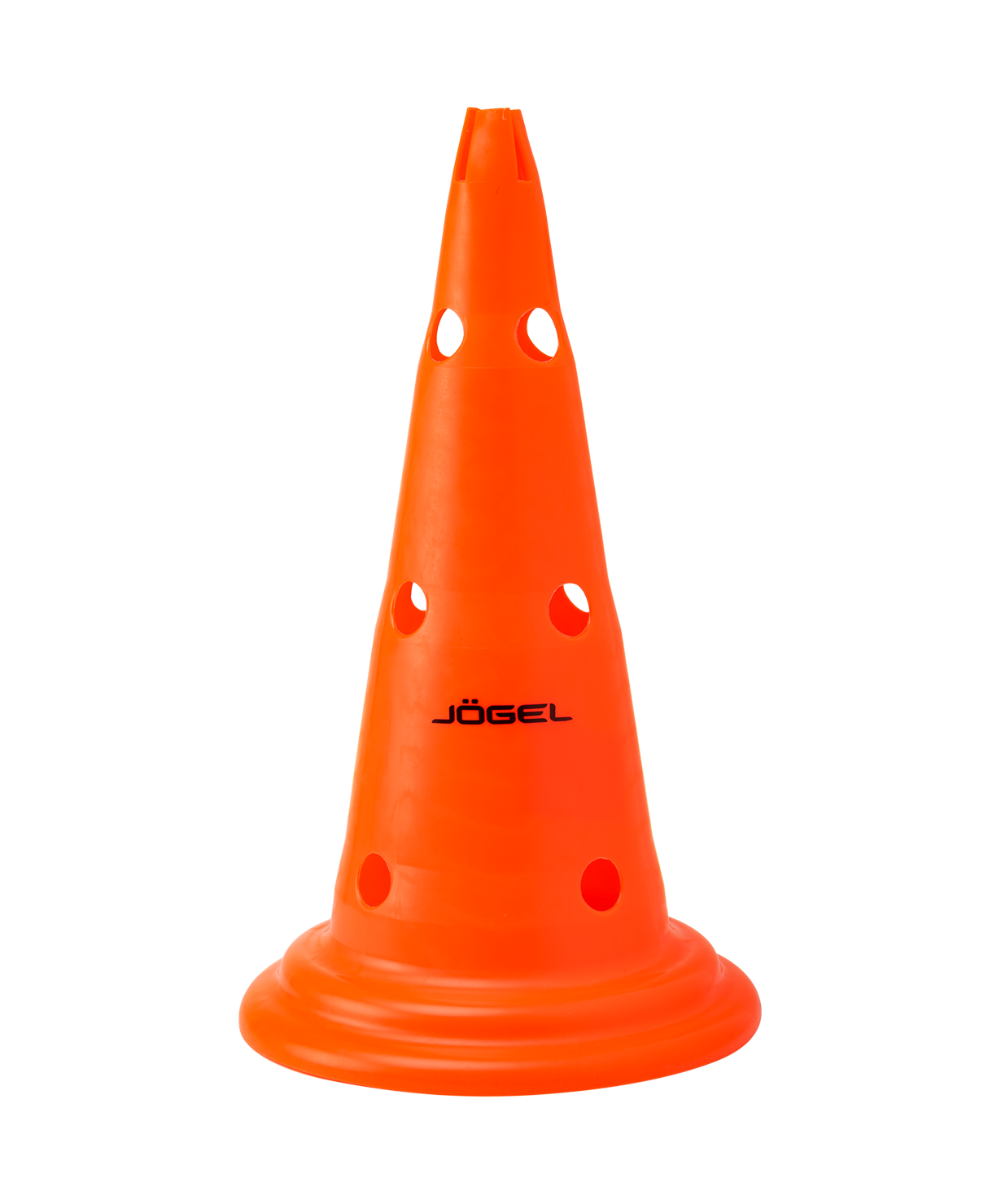 Качественный конус для занятий и тренировок яркой расцветки. Всепогодный, изготовлен из износостойкого пластика.Модель имеет по 3 отверстия с каждой стороны, в которые можно устанавливать шесты Jögel, что делает его мультифункциональным.\nМодель имеет по 3 отверстия с каждой стороны, в которые можно устанавливать шесты Jögel. Диаметр отверстия 30 мм.\nХарактеристики:\nМатериал: полиэтилен\nЦвет: ярко-оранжевый\nВысота конуса, см: 50\nГабариты, см: 29,5 х 29,5 х 50\nВес, г: 440