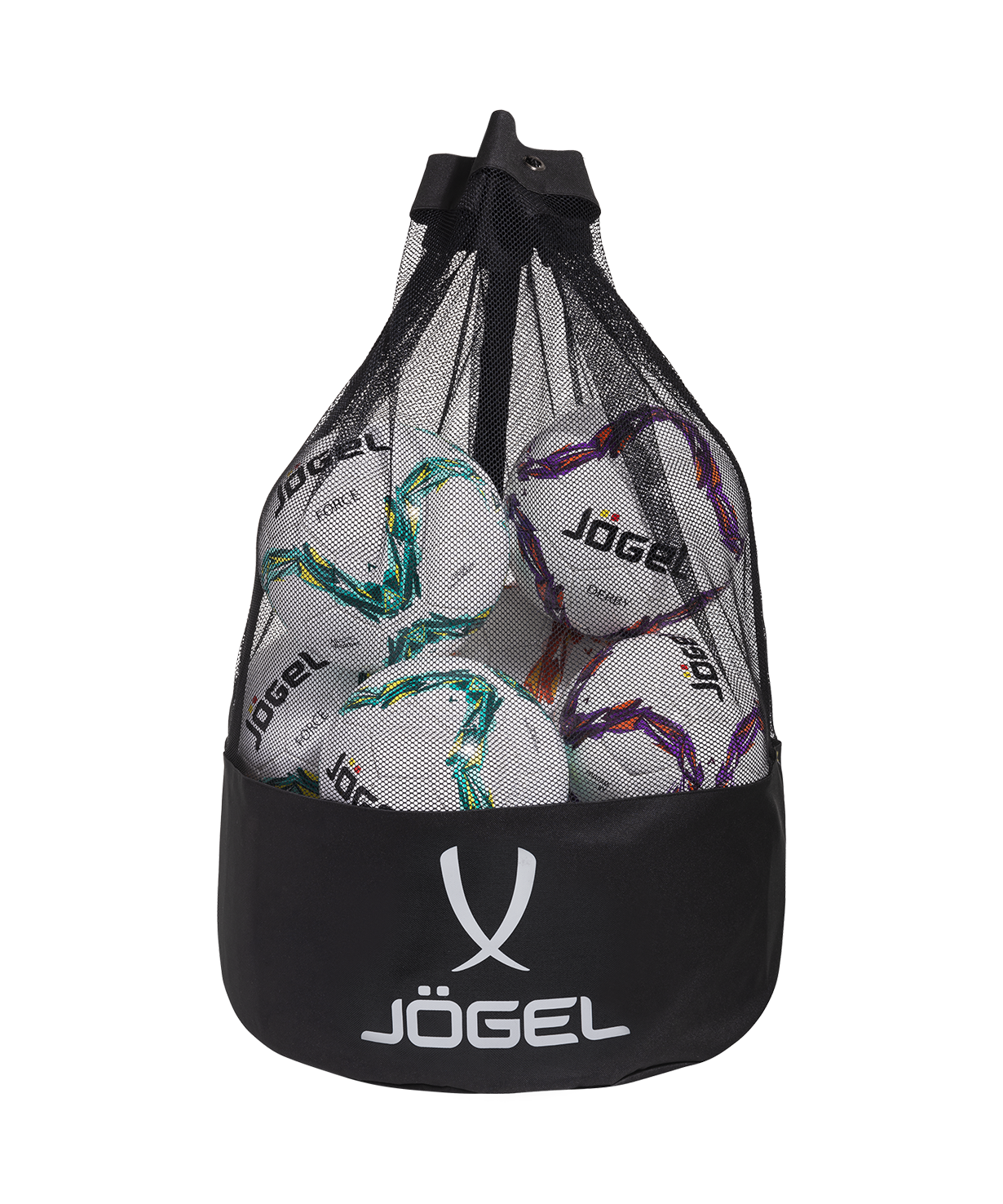 Сетка для мячей CAMP Team Ball Bag от бренда Jögel позволит комфортно хранить и одновременно переносить 9-12 мячей. У модели есть затяжной шнурок, который позволит не только быстро раскрывать сетку, но и гарантирует, что мячи останутся в ней после затягивания. Конструкция с плоским дном придает сумке устойчивость, а также делает ее более удобной для хранения. Благодаря сетчатому полотну сверху, вы всегда будет знать, какие мячи находятся в сетке. Для транспортировки предусмотрен регулируемый плечевой ремень.\nХарактеристики:\nМатериал: 100 % полиэстер 600D, сетчатое полотно\nРазмеры (Д х Ш х В), см: 50 х 50 х 80\nОбъём, л: 200\nЦвет: черный/белый\nПроизводство: Россия