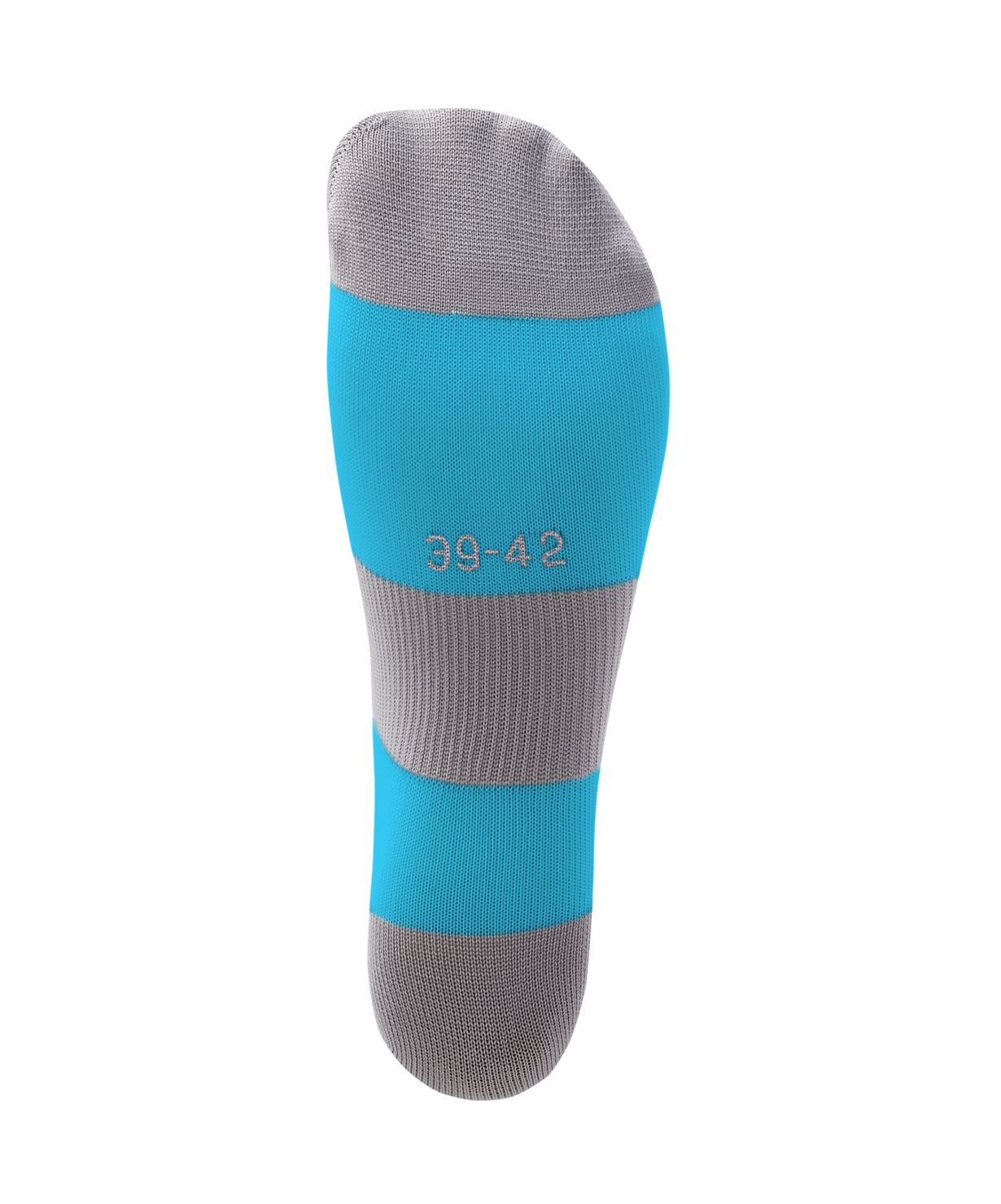 CAMP BASIC SOCKS - обновленная модель базовых гетр в актуальных цветовых решениях, максимально подходящих под игровую форму Jögel. Гетры выполнены из качественного трикотажного полотна. Ткань способствует выведению влаги, сохраняя комфорт и сухость. Эластичная вставка в области свода стопы обеспечивает поддерживающую плотную посадку. Усиленные пятка и мысок добавляют прочности в зонах, наиболее подверженных износу. Дополнительная резинка в районе щиколотки препятствует сползанию гетр, а анатомический крой футбольных гетр позволяет спортсмену чувствовать себя комфортно даже во время длительных тренировок.\nПреимущества:\nКачественное влагоотведение;\nПлотная посадка;\nУсиленные пятка и мысок;\nАнатомический крой;\nНе сползают с щиколотки.\nХарактеристики:\nСостав: полиэстер 95%, эластан 5%\nЦвет: бирюзовый/серый\nРазмер: 28-31, 32-34, 35-37, 38-41, 42-44\nПроизводство: Россия
