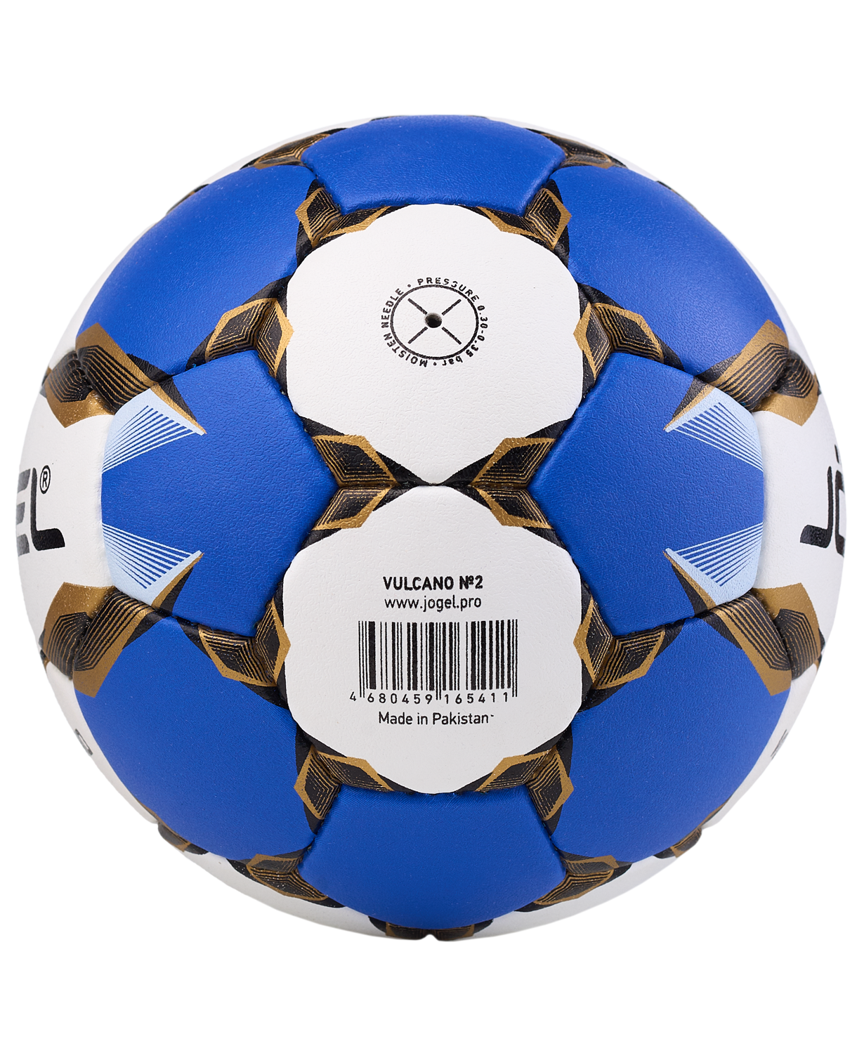 Категория: Матчевый\nМяч Vulcano от Jögel – профессиональный гандбольный мяч для соревнований высокого уровня, который соответствует всем требованиям EHF. Данная модель обладает отличными игровыми характеристиками и подойдет как для тренировок, так и для официальных игр команд. Мяч выполнен по технологии ручной сшивки благодаря чему износостойкий и упругий, а давление в мяче распределяется равномерно. Поверхность сделана из высококачественной синтетической кожи (полиуретана), слой толщиной 1,5 мм отличается повышенной износостойкостью. Подкладочный слой выполнен из специальной пены толщиной 3,5 мм. Vulcano оснащен высококлассной камерой, которая обеспечивает отскок по стандартам EHF. Для улучшения сцепления допускается использование мастики.\nРекомендован для тренировок и игр профессиональных. Размер 2 - официальный игровой размер мяча для женских команд (старше 14 лет) и мужских (12-16 лет). Официальный размер и вес EHF.\nВнимание: Данный мяч поставляется с завода-изготовителя в спущенном состоянии для безопасной транспортировки и хранения. Рекомендуем приобрести насос и иглу для накачки мяча.\nХарактеристики:\nРекомендованные покрытия: паркет\nМатериал поверхности: 1.5 мм корейская синтетическая кожа (полиуретан) на основе микрофибры\nПодкладочный слой: 4 подкладочных слоя (2 слоя хлопка и 2 слоя вискозы)\nМатериал камеры: латекс\nТип соединения камеры: ручная сшивка\nКоличество панелей: 32\nРазмер: 2\nВес, г: 325-375\nДлина окружности, см: 54-56\nРекомендованное давление: 0.30-0.35 bar\nМяч поставляется: спущенный\nОсновной цвет: белый\nДополнительный цвет: синий\nПроизводство: Пакистан