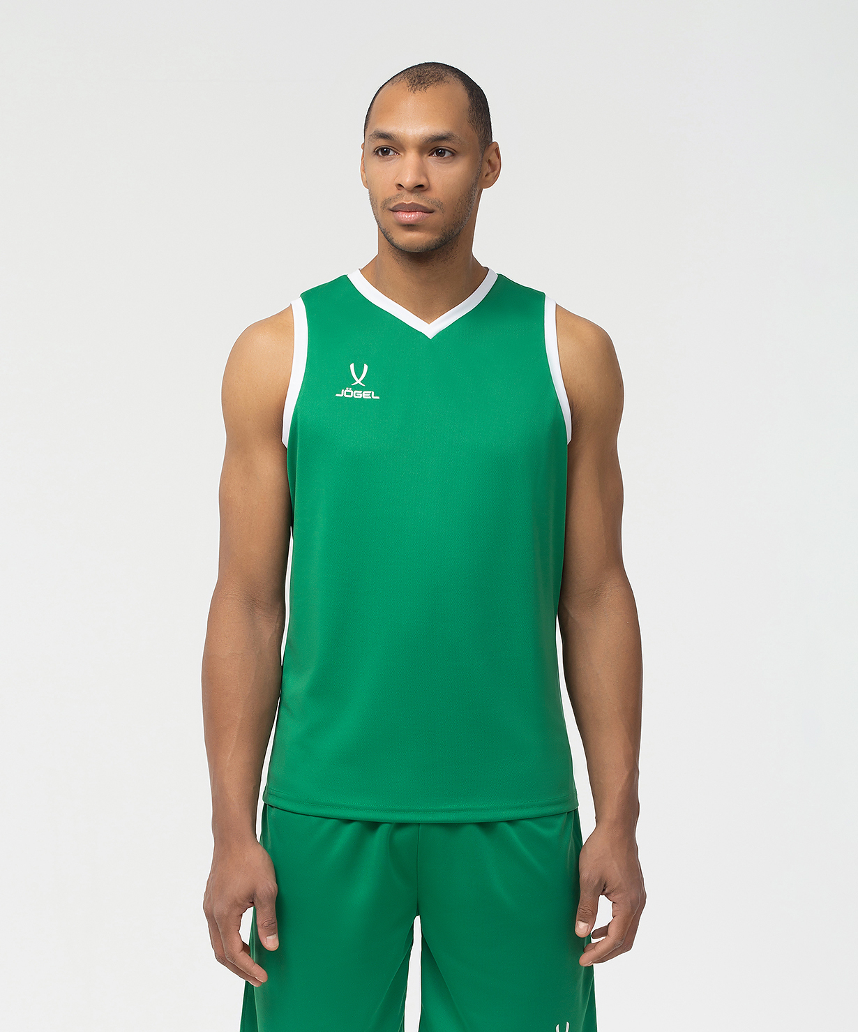 Баскетбольная майка Jögel Camp Basic прилегающего кроя оптимальна для активной игры и отлично подойдет как мужчинам, так и женщинам. Модель изготовлена из легкого, прочного влагоотводящего материала с сетчатой текстурой, который имеет высокую воздухопроницаемость. Отличительной чертой игровой майки является V-образный дизайн горловины и проймы с контрастной обработкой. Благодаря сочетанию цветов майку для баскетбола можно комбинировать с шортами Jögel Camp Basic в различных вариациях. Логотип Jögel расположен на правой стороне груди, а для максимального комфорта спортсмена в области шеи пришита мягкая брендированная тесьма.\nПреимущества:\nПрилегающий крой;\nМатериал с сетчатой текстурой;\nV-образная горловина;\nМягкая тесьма в области шеи.\nХарактеристики:\nСостав: 100% полиэстер, 140 гр.\nЦвет: зеленый\nРазмер: S, M, L, XL, XXL, XXXL\nСтрана производства: Китай