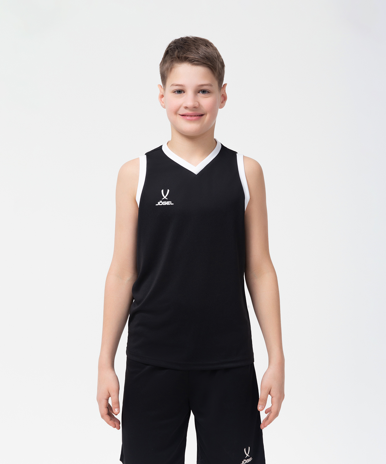 Баскетбольная майка Jögel Camp Basic прилегающего кроя оптимальна для активной игры и отлично подойдет как юношам, так и девушкам. Модель изготовлена из легкого, прочного влагоотводящего материала с сетчатой текстурой, который имеет высокую воздухопроницаемость. Отличительной чертой игровой майки является V-образный дизайн горловины и проймы с контрастной обработкой. Благодаря сочетанию цветов майку для баскетбола можно комбинировать с шортами Jögel Camp Basic в различных вариациях. Логотип JOGEL расположен на правой стороне груди, а для максимального комфорта спортсмена в области шеи пришита мягкая брендированная тесьма.\nПреимущества:\nПрилегающий крой;\nМатериал с сетчатой текстурой;\nV-образная горловина;\nМягкая тесьма в области шеи.\nХарактеристики:\nСостав: 100% полиэстер, 140 гр.\nЦвет: черный\nРазмер: YS, YM, YL, XS\nСтрана производства: Китай
