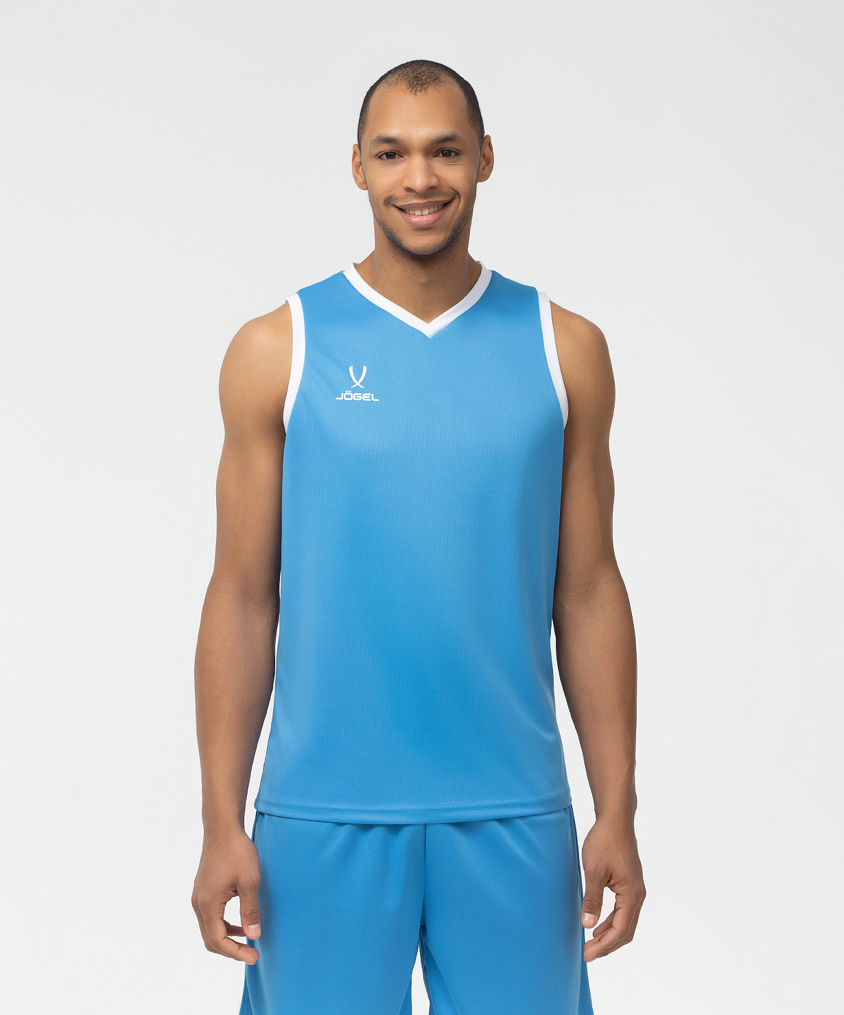 Баскетбольная майка Jögel Camp Basic прилегающего кроя оптимальна для активной игры и отлично подойдет как мужчинам, так и женщинам. Модель изготовлена из легкого, прочного влагоотводящего материала с сетчатой текстурой, который имеет высокую воздухопроницаемость. Отличительной чертой игровой майки является V-образный дизайн горловины и проймы с контрастной обработкой. Благодаря сочетанию цветов майку для баскетбола можно комбинировать с шортами Jögel Camp Basic в различных вариациях. Логотип Jögel расположен на правой стороне груди, а для максимального комфорта спортсмена в области шеи пришита мягкая брендированная тесьма.\nПреимущества:\nПрилегающий крой;\nМатериал с сетчатой текстурой;\nV-образная горловина;\nМягкая тесьма в области шеи.\nХарактеристики:\nСостав: 100% полиэстер, 140 гр.\nЦвет: бирюзовый\nРазмер: S, M, L, XL, XXL, XXXL\nСтрана производства: Китай