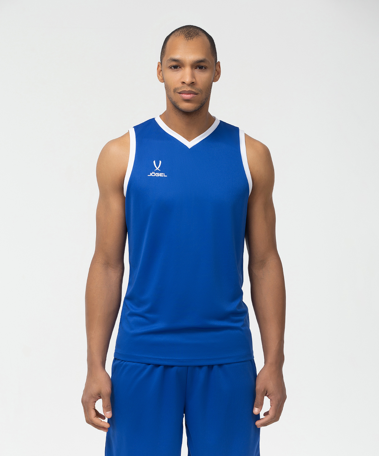 Баскетбольная майка Jögel Camp Basic прилегающего кроя оптимальна для активной игры и отлично подойдет как мужчинам, так и женщинам. Модель изготовлена из легкого, прочного влагоотводящего материала с сетчатой текстурой, который имеет высокую воздухопроницаемость. Отличительной чертой игровой майки является V-образный дизайн горловины и проймы с контрастной обработкой. Благодаря сочетанию цветов майку для баскетбола можно комбинировать с шортами Jögel Camp Basic в различных вариациях. Логотип Jögel расположен на правой стороне груди, а для максимального комфорта спортсмена в области шеи пришита мягкая брендированная тесьма.\nПреимущества:\nПрилегающий крой;\nМатериал с сетчатой текстурой;\nV-образная горловина;\nМягкая тесьма в области шеи.\nХарактеристики:\nСостав: 100% полиэстер, 140 гр.\nЦвет: синий\nРазмер: S, M, L, XL, XXL, XXXL\nСтрана производства: Китай
