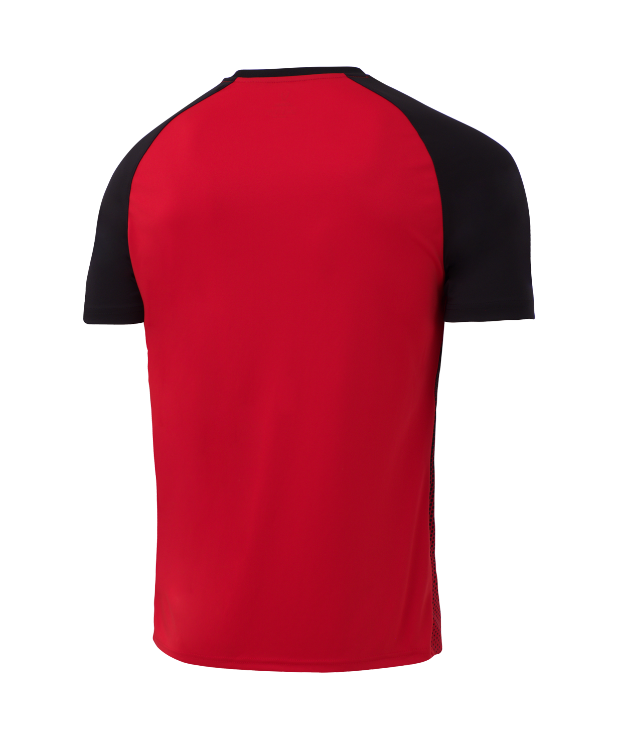 Игровая футболка JÖGEL Camp Striped Jersey создана для максимального комфорта! Модель с прямым кроем и округлой горловиной из рубчатой отделки выигрышно сидит на любом типе фигуры, а современный градиентный дизайн выделит изделие среди коллекции остальной спортивной одежды. Подчеркивающая плечи конструкция рукава реглан оканчивается рубчатой обработкой края и удобна в носке. Спортивная футболка легко стирается, быстро высыхает и сохраняет свой насыщенный цвет в процессе эксплуатации. На груди справа логотип JÖGEL.\nЛегкий, дышащий материал;\nМаксимальная свобода движения;\nЯркий, запоминающийся градиентный дизайн;\nВысокая скорость высыхания.\nХарактеристики:\nСостав: 100% полиэстер Interlock 140 г\nЦвет: красный/черный\nРазмер: S, M, L, XL, XXL, XXXL\nВид упаковки: пакет зиплок с картонной этикеткой и стикером\nСтрана производства: Китай