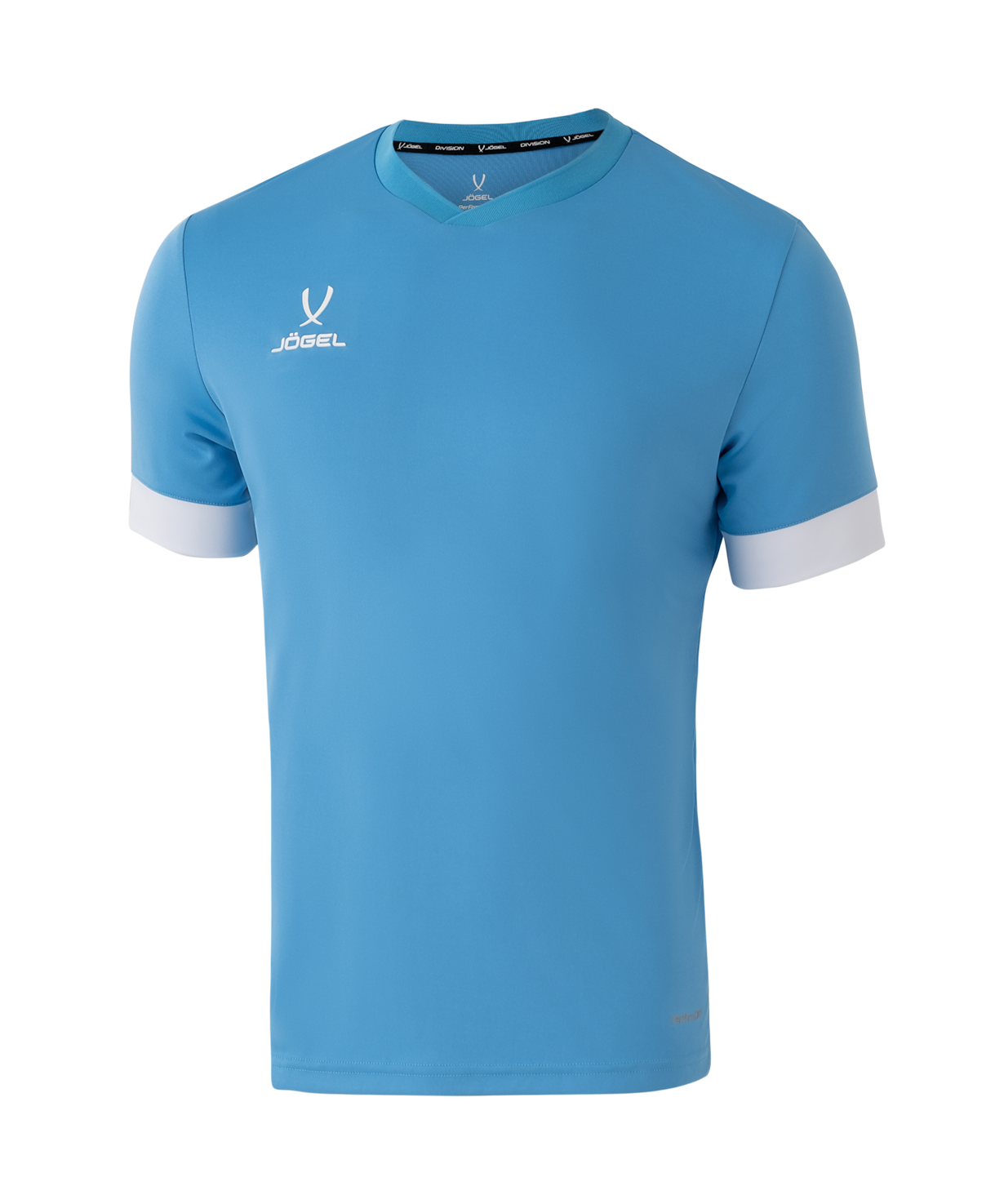 Игровая футболка Union Jersey из линейки Division создана специально для экипировки профессиональных команд. Модель выполнена из комбинированного сетчатого материала с применением технологии эффективного влагоотведения PerFormDRY. Легкая ткань отличается высокой прочностью и хорошей воздухопроницаемостью. Кроме того, на спине ткань отличается от ткани спереди и имеет улучшенную вентиляцию. Вы будете чувствовать себя на высоте даже в самой «жаркой» игре. Продуманная до мелочей конструкция не ограничивает свободу движений. Атлетический крой, небольшие разрезы по бокам, удлиненная задняя часть игровой футболки – все это поможет вам с комфортом оттачивать свое мастерство и завоевывать новые трофеи. С правой стороны располагается белый логотип, сделанный из специального силиконового материала по технологии 3D нанесения. Особенностью модели являются манжеты по низу рукава.\nСобери комплект. Дизайн с белый манжетами вы найдете и на игровых шортах Union Shorts. Шорты в сочетании с футболкой создают превосходный тандем, при котором вы получаете качественную, стильную и удобную игровую форму, выдержанную в одной цветовой гамме.\nPerFormDRY - это специальная технология обработки тканей Jögel, которая способствует быстрому выведению влаги и помогает спортсменам чувствовать себя комфортно при интенсивных нагрузках.\nпрофессиональная экипировка\nатлетический крой\nматериал с технологией PerFormDRY\nпревосходное влагоотведение\nвысокая скорость высыхания\nлегкий материал\nХарактеристики:\nСостав: 100% полиэстер, Interlock 140 г\nЦвет: голубой/белый/белый\nРазмер: YS, YM, YL, XS, S, M, L, XL, XXL\nСтрана производства: Китай