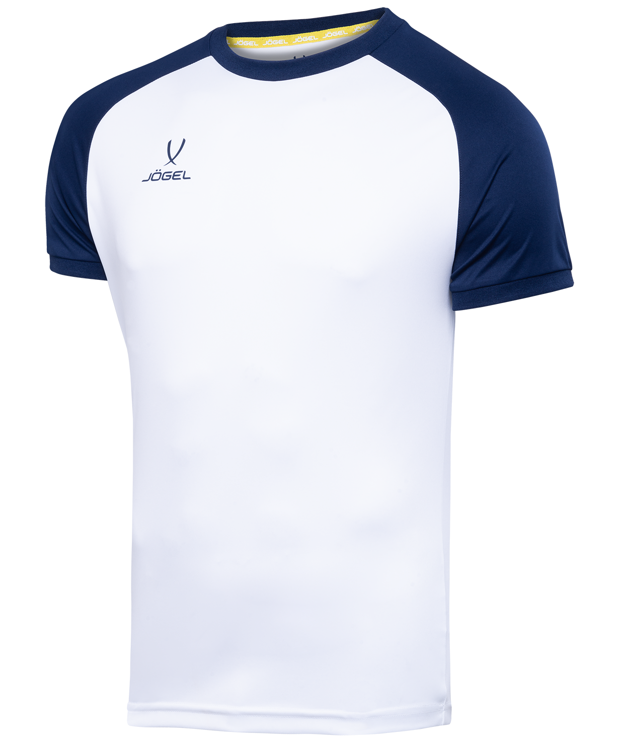 Стильная игровая футболка из мягкой ткани с отличными влагоотводящими свойствами для максимального комфорта и стильного внешнего вида. Поддерживает оптимальную температуру тела спортсмена. Модель современного кроя с рукавом реглан и округлой горловиной. Изделие не линяет и не выгорает на солнце, легко стирается, быстро высыхает и сохраняет в процессе носки свой насыщенный цвет. На груди с правой стороны расположен обновленный логотип бренда. Футболка упакована в удобный пакет многоразового использования с клапаном-застежкой.\nстильный внешний вид\nлегкий дышащий материал\nмаксимальная свобода движения\nпревосходное влагоотведение\nвысокая скорость высыхания\nХарактеристики:\nСостав: 100% полиэстер Interlock 140 г\nЦвет: белый/темно-синий\nРазмер: S, M, L, XL, XXL, XXXL\nСтрана производства: Китай