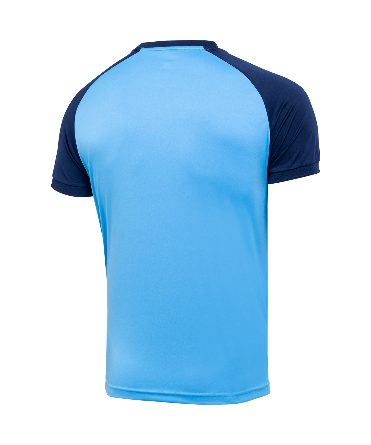 Стильная игровая футболка из мягкой ткани с отличными влагоотводящими свойствами для максимального комфорта и стильного внешнего вида. Поддерживает оптимальную температуру тела спортсмена. Модель современного кроя с рукавом реглан и округлой горловиной. Изделие не линяет и не выгорает на солнце, легко стирается, быстро высыхает и сохраняет в процессе носки свой насыщенный цвет. На груди с правой стороны расположен обновленный логотип бренда. Футболка упакована в удобный пакет многоразового использования с клапаном-застежкой.\nстильный внешний вид\nлегкий дышащий материал\nмаксимальная свобода движения\nпревосходное влагоотведение\nвысокая скорость высыхания\nХарактеристики:\nСостав: 100% полиэстер Interlock 140 г\nЦвет: синий/темно-синий\nРазмер: S, M, L, XL, XXL, XXXL\nСтрана производства: Китай