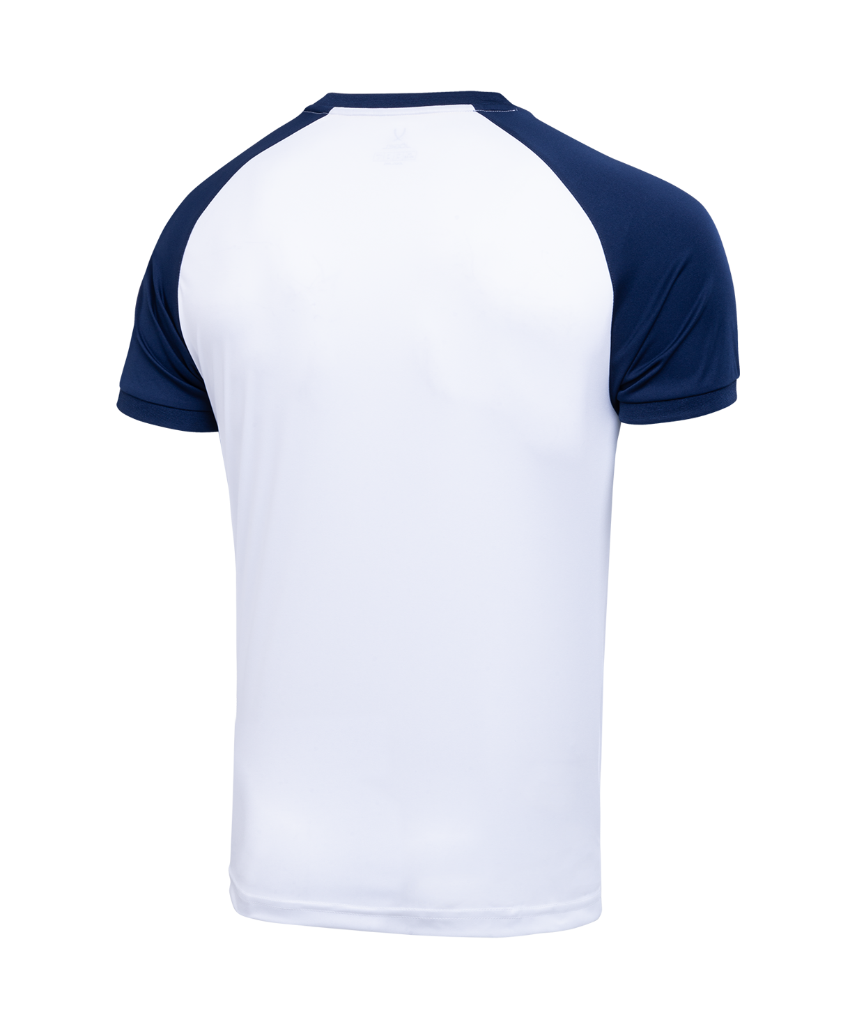 Стильная игровая футболка из мягкой ткани с отличными влагоотводящими свойствами для максимального комфорта и стильного внешнего вида. Поддерживает оптимальную температуру тела спортсмена. Модель современного кроя с рукавом реглан и округлой горловиной. Изделие не линяет и не выгорает на солнце, легко стирается, быстро высыхает и сохраняет в процессе носки свой насыщенный цвет. На груди с правой стороны расположен обновленный логотип бренда. Футболка упакована в удобный пакет многоразового использования с клапаном-застежкой.\nстильный внешний вид\nлегкий дышащий материал\nмаксимальная свобода движения\nпревосходное влагоотведение\nвысокая скорость высыхания\nХарактеристики:\nСостав: 100% полиэстер Interlock 140 г\nЦвет: белый/темно-синий\nРазмер: YXXS, YXS, YS, YM, YL, XS\nСтрана производства: Китай