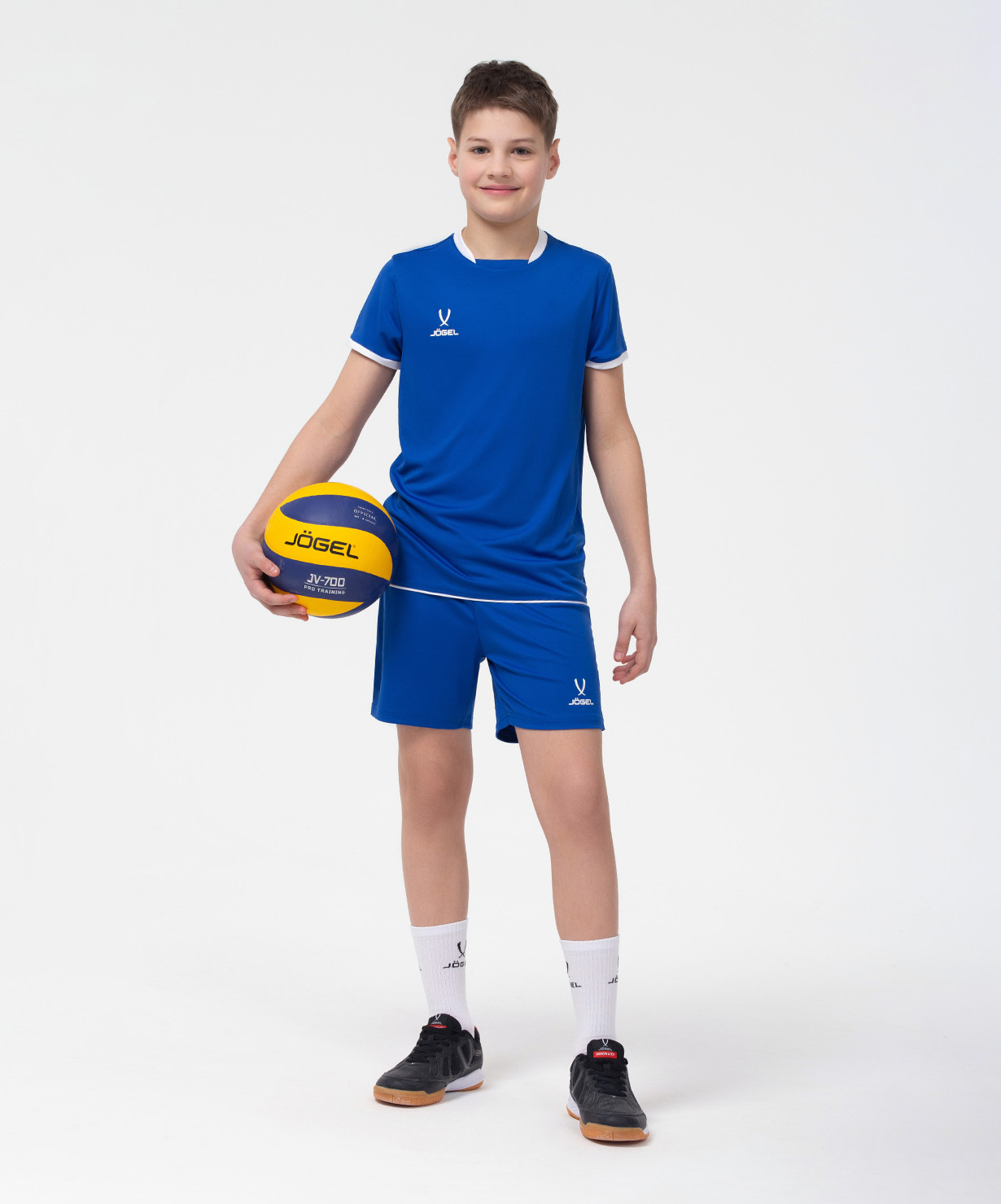 Волейбольные шорты Jögel Camp созданы для вашего удобства на площадке. Изделие выполнено из мягкой ткани с отличными влагоотводящими свойствами, которые обеспечивают максимальный комфорт. Удобный крой, актуальный как для юношей, так и для девушек, позволяет выполнять самые сложные элементы. Широкий пояс в сочетании с регулировочным шнурком в цвет основной ткани обеспечивает надежную фиксацию на бедрах. Для большей амплитуды движений спортсмена предусмотрены небольшие разрезы внизу шорт для волейбола, а слева находится узнаваемый логотип JOGEL. Длина и ширина шорт рассчитана с учетом потребности использования волейболистов. Комплектом смотрится еще эффектнее, оптимальной парой к игровым шортам станет волейбольная футболка Jögel Camp.\nХарактеристики:\nСостав: 100% полиэстер, 140 гр.\nЦвет: синий\nРазмер: YL, XS\nСтрана производства: Китай