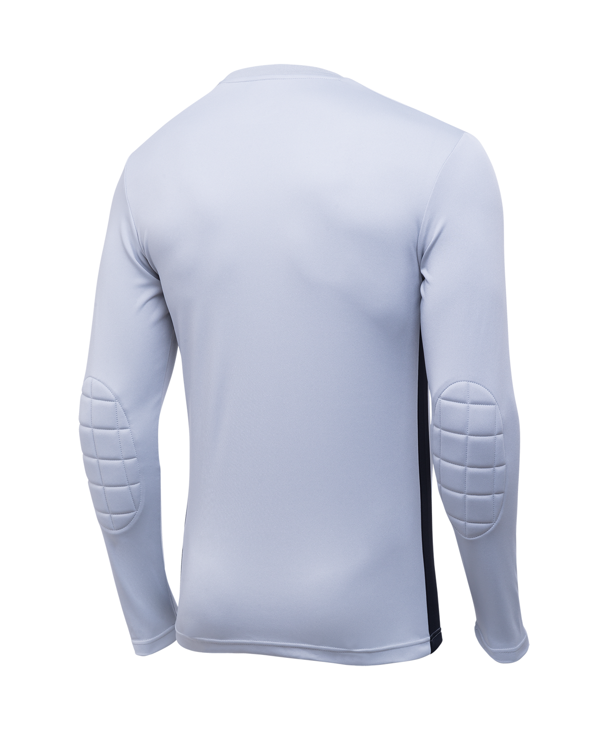 Футболка вратаря с длинным рукавом отлично сидит на теле футболиста, не сползает и не ограничивает свободу движений. Изготовлена из современного износоустойчивого полиэстера. Выполнена в двух цветовых вариантах с боковыми вставками темно-серого цвета. Модель классического спортивного кроя. На рукавах в районе локтей расположены защитные вставки, изготовленные из плотного вспененного материала, который защищает руки спортсмена от ушибов и травм. Горловина с воротником округлой формы обеспечивает комфорт. Логотип бренда расположен с правой стороны. Футболка упакована в удобный пакет многоразового использования с клапаном-застёжкой.\nПреимущества и функциональность:\nдышащий износоустойчивый материал\nмаксимальная свобода движения\nзащитные вставки на локтях\nХарактеристики:\nСостав: материал верха – 100% полиэстер Interweave 160 г\nЦвет: серый/черный/белый\nРазмер: S, M, L, XL, XXL\nСтрана производства: Китай