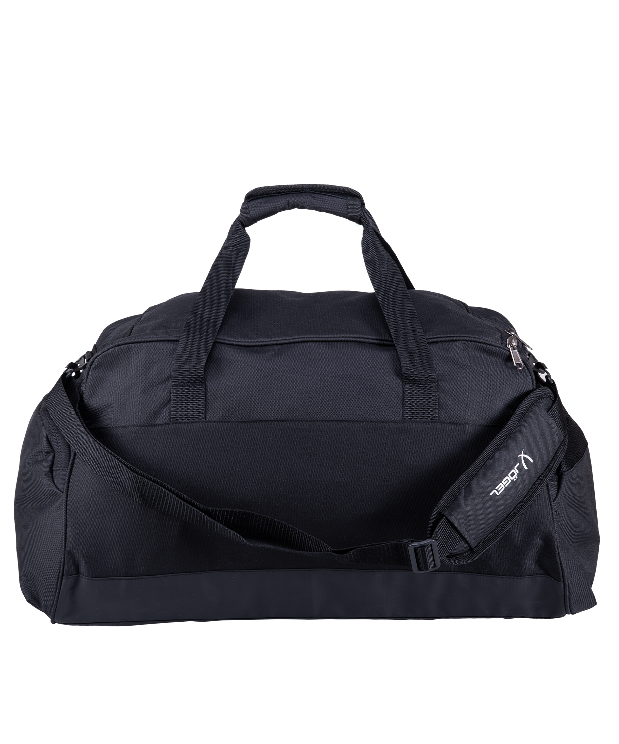 Спортивные сумки DIVISION Medium Bag разработаны брендом Jögel специально для мужчин. Большой объем позволяет брать с собой все необходимое для тренировок. Есть четыре внешних кармана, один из которых предназначен для хранения обуви. И один небольшой внутренний кармашек на молнии для ключей или небольших аксессуаров. Особое внимание уделено деталям. Молния на главном отсеке открывается в любую сторону, карман для обуви имеет вставку из сетчатого материала для лучшей вентиляции, дно сумки дополнительно защищено поливинилом. Логотип Jögel выполнен из светоотражающего материала, что делает сумку более заметной в темное время суток. Размер изделия – 57х32х19 см.\nОбъем 50 л\nРегулируемый плечевой ремень\nУдобные ручки с мягкой манжетой\nТкань с влагоотталкивающей и грязеотталкивающей пропиткой\nХарактеристики:\nОсновной материал: основная ткань Oxford 600 D 100% полиэстер\nМатериал дна: поливинил, 100% полиэстер\nМатериал подкладки: полиэстер 210D PU 100% полиэстер\nЦвет: черный\nОбъем, л: 50\nРазмер, см: 57 х 32 х 19\nТип упаковки: пакет\nПроизводство: Китай