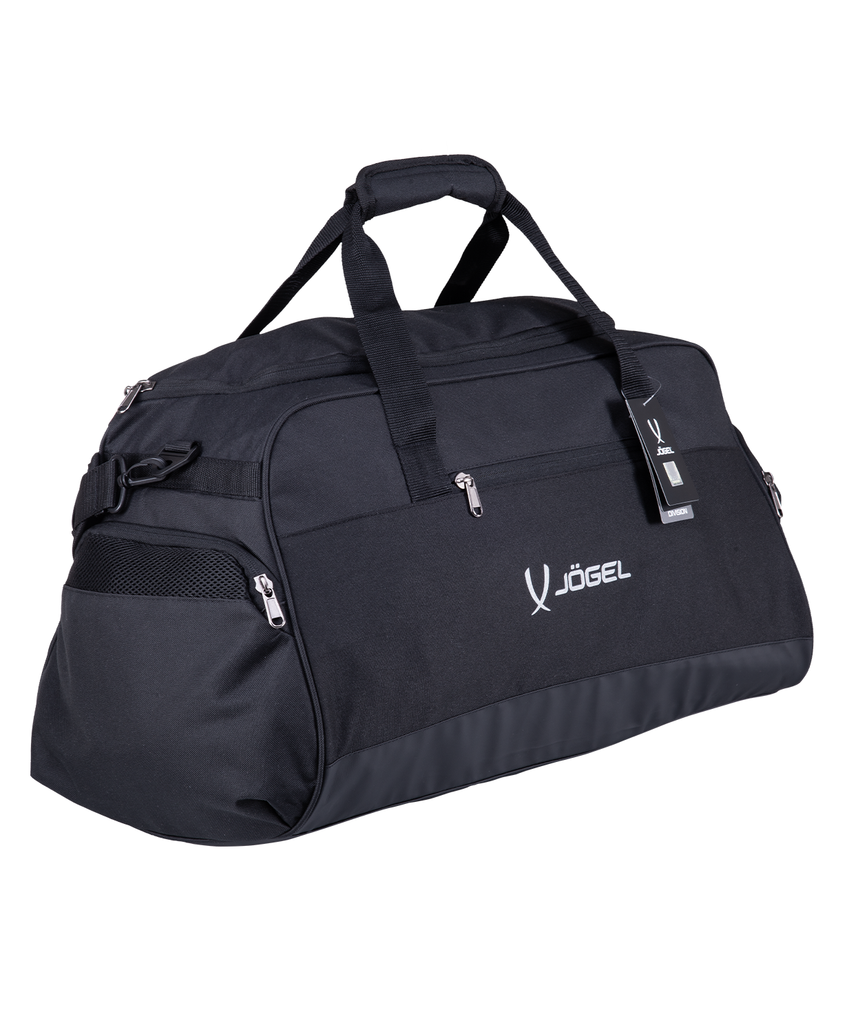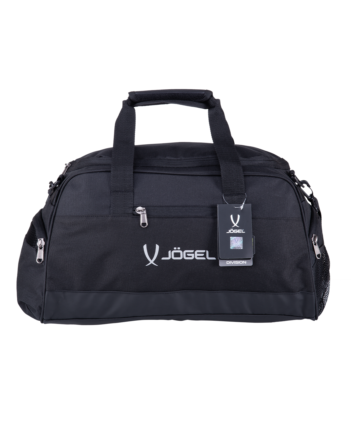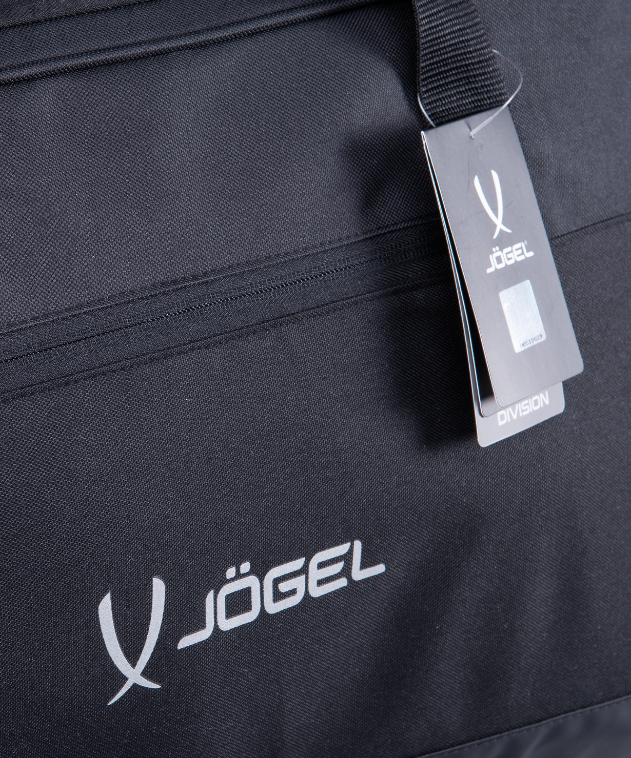 Небольшая, но очень удобная спортивная сумка DIVISION Small Bag от известного бренда Jögel подойдет как женщинам, так и детям, учащимся в спортивных школах. Предусмотрено пять внешних карманов и один внутренний. Особое внимание уделено деталям. Молния на главном отсеке открывается в любую сторону, боковой карман для обуви имеет вставку из сетчатого материала для лучшей вентиляции, дно сумки дополнительно защищено поливинилом. Логотип Jögel выполнен из светоотражающего материала, что делает сумку более заметной в темное время суток. Размер изделия – 47х25х18 см.\nОбъем 25 л\nРегулируемый плечевой ремень\nУдобные ручки с мягкой манжетой\nТкань с влагоотталкивающей и грязеотталкивающей пропиткой\nХарактеристики:\nОсновной материал: основная ткань Oxford 600 D 100% полиэстер\nМатериал дна: поливинил, 100% полиэстер\nМатериал подкладки: полиэстер 210D PU 100% полиэстер\nЦвет: черный\nОбъем, л: 25\nРазмер, см: 47 х 25 х 18\nТип упаковки: пакет\nПроизводство: Китай