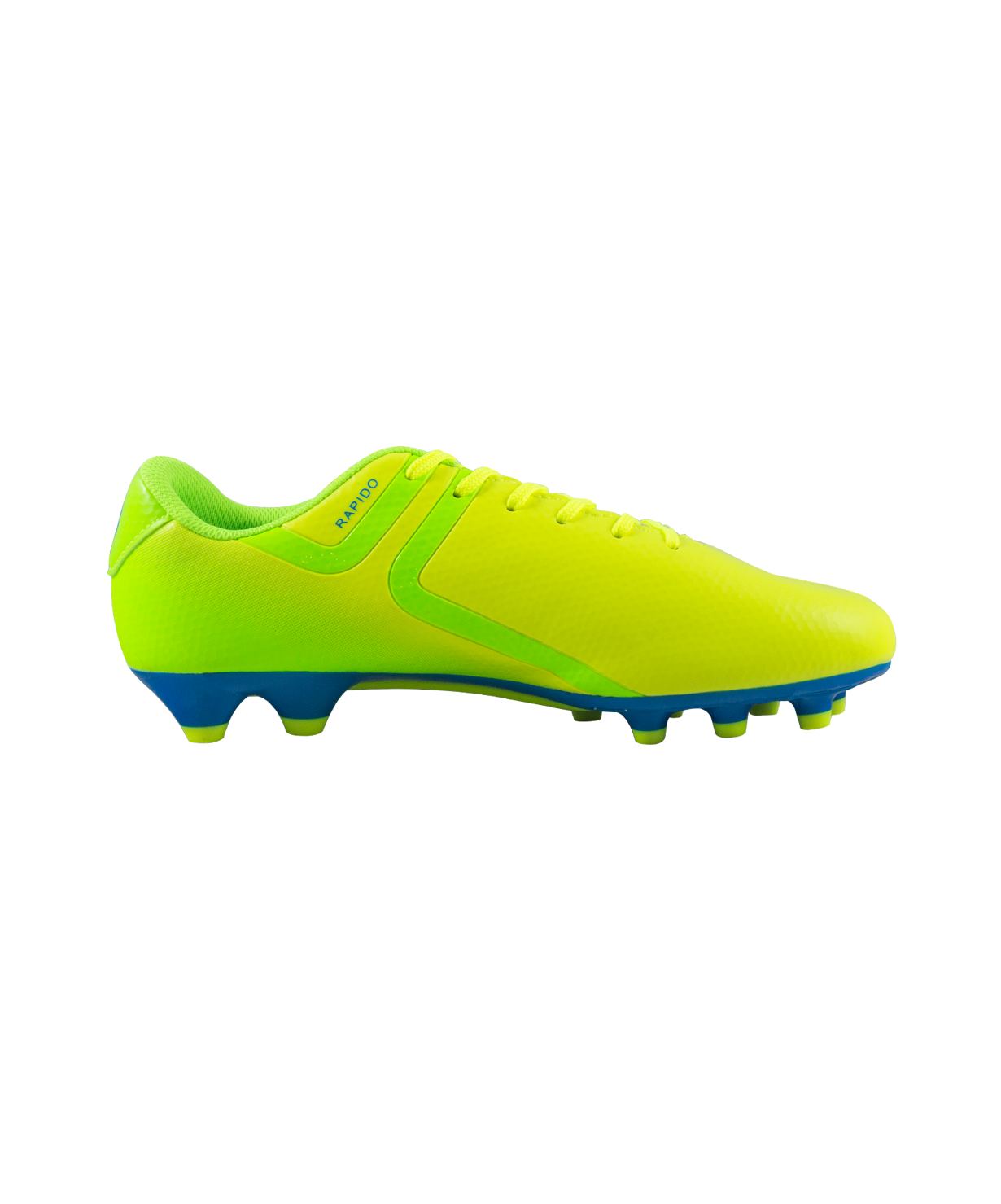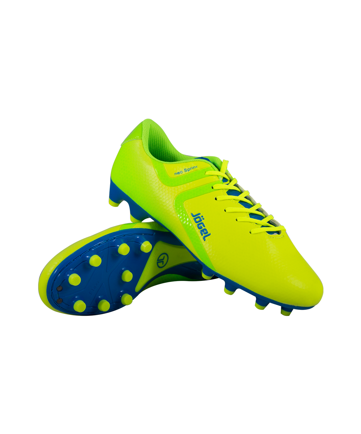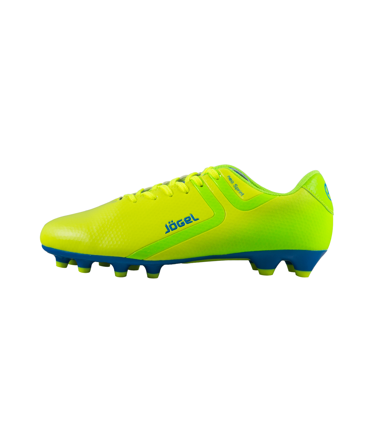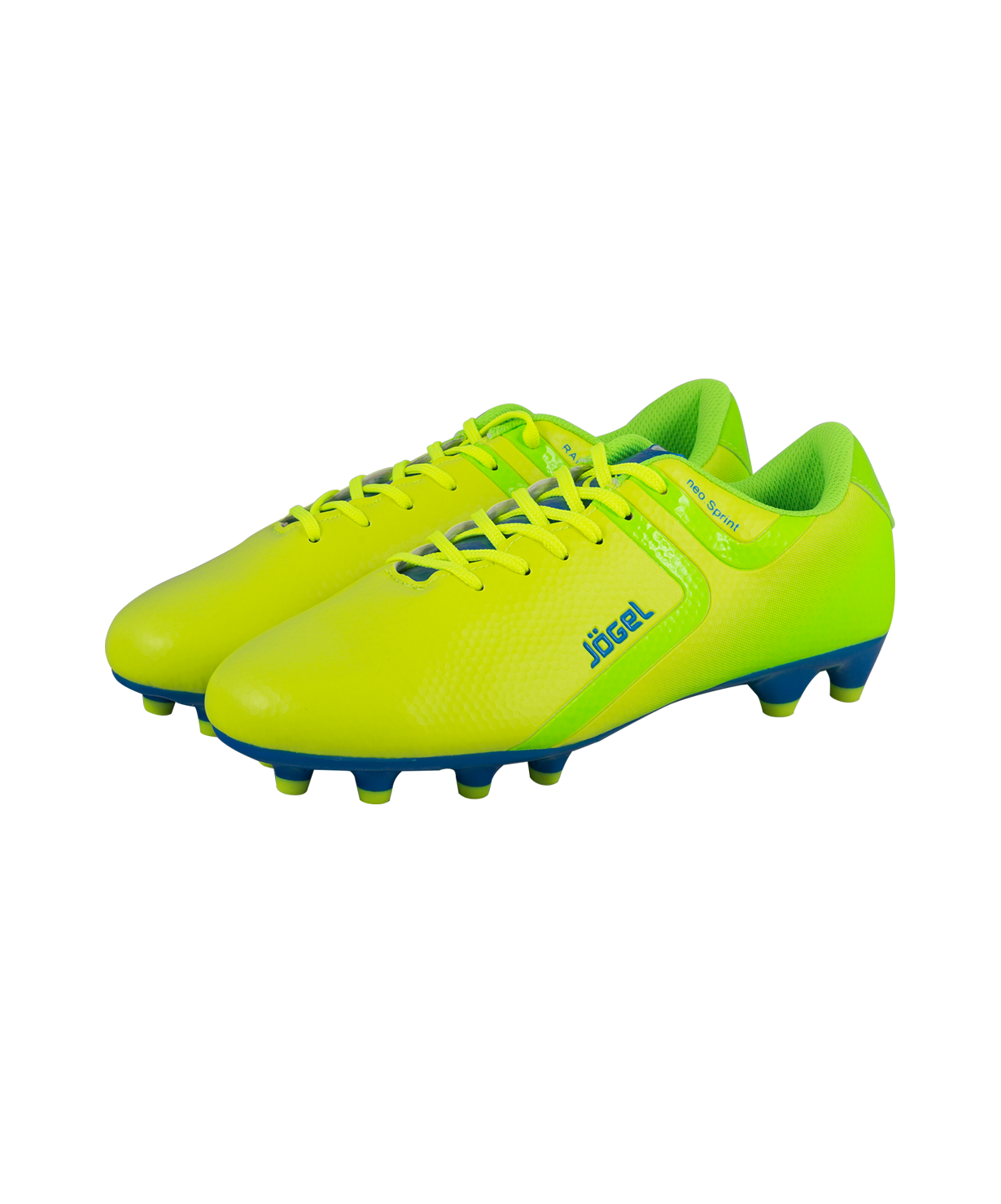 Футбольные бутсы Rapido из линейки neo.Sprint предназначены для игры на искусственных и натуральных покрытиях. Данная модель выполнена в минималистичном дизайне с использованием ярких цветовых решений.\nАнатомически правильная колодка обеспечивает удобное положение стопы. Прошивка в носочной части придает дополнительную надежность конструкции ботинка.\nСъемная анатомическая стелька изготовлена по технологии ExoGrip из нескользящего материала. Стелька произведена из вспененного материала ЭВА, который обеспечивает дополнительную амортизацию и уменьшает нагрузку на опорно-двигательный аппарат. Легкая подошва, учитывающая особенности строения стопы, благодаря технологии Flex+ делает каждое движение игрока быстрым и точным. Конфигурация подошвы из 12-ти шипов обеспечивает комфортное сцепление с поверхностью и позволяет развивать максимальную взрывную скорость.\nВ производстве обуви Jogel используются только качественные материалы, обувь легко моется и не требует дополнительного ухода.\nстелька, уменьшающая скольжение внутри обуви\nсвобода движения: гибкая подошва бутсы\nХарактеристики:\nМатериал верха: полиуретан\nМатериал подкладки обуви: текстиль\nМатериал подошвы обуви: термополиуретан\nМатериал стельки: ЭВА, текстиль\nПолнота обуви: D\nРазмерный ряд: 34-45 (EU)\nОсновной цвет: лимонный\nДополнительные цвета: синий/зеленый\nВид застежки: шнурки\nТип подошвы: шипованная\nНазначение обуви: спорт, футбол\nРекомендованные покрытия: искусственные и натуральные покрытия\nСезон: демисезон\nПол: мужской\nСтрана производитель: КНР\nКомплектация: бутсы, коробка, фирменный пакет