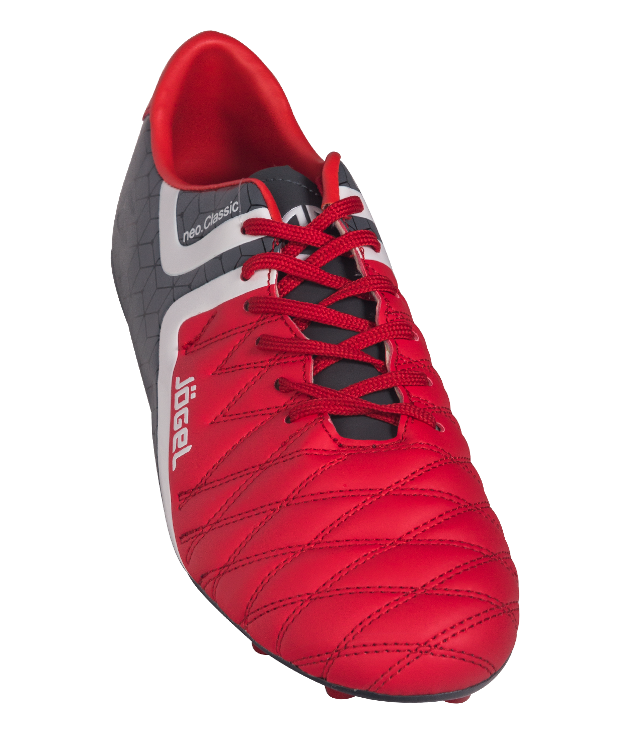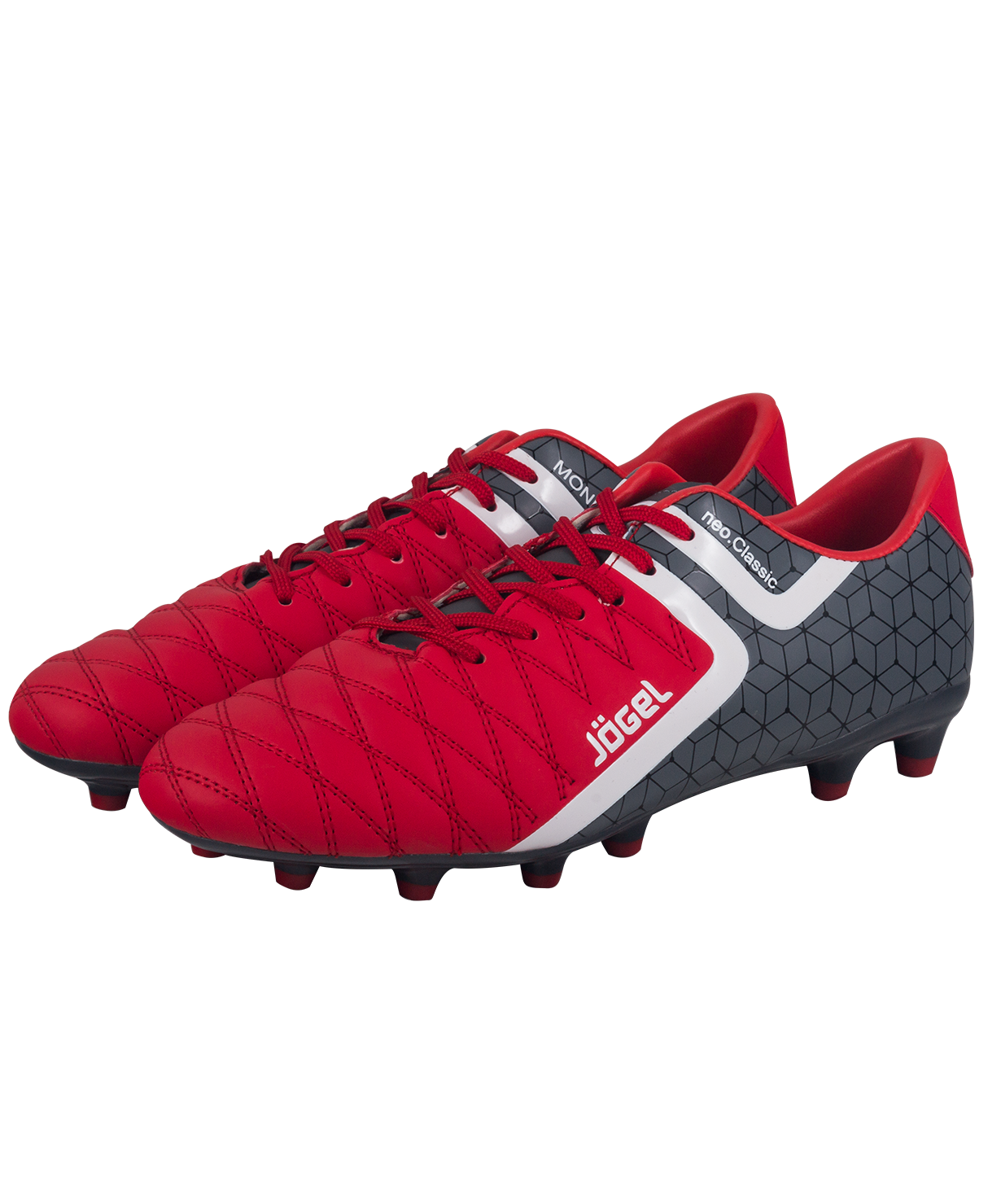 Футбольные бутсы Mondo из линейки neo.Classic предназначены для игры на искусственных и натуральных покрытиях. В концепции дизайна данной модели применяется сочетание классических элементов и современных дизайнерских решений.\nАнатомически правильная колодка обеспечивает удобное положение стопы. Ромбовидная прошивка носочной части придает дополнительную прочность и лучший контакт с мячом.\nСъемная анатомическая стелька изготовлена по технологии ExoGrip из нескользящего материала и со специальной ребристой поверхностью в плюсневой части. Стелька произведена из вспененного материала ЭВА, который обеспечивает дополнительную амортизацию и уменьшает нагрузку на опорно-двигательный аппарат.\nКлассическая 13-ти шиповая конфигурация подошвы в сочетании с ребристой поверхностью обеспечивает максимальную устойчивость и сцепление с покрытием при резких поворотах во всех направлениях.\nВ производстве обуви Jögel используются только качественные материалы, обувь легко моется и не требует дополнительного ухода.\nстелька, уменьшающая скольжение внутри обуви\nМатериал верха: Полиуретан\nМатериал подкладки обуви: Искусственный материал\nМатериал подошвы обуви: Термополиуретан\nМатериал стельки: ЭВА, текстиль\nПолнота обуви: D\nРазмерный ряд: 41-45 (EU)\nОсновной цвет: Черный\nДополнительные цвета: Белый/Синий\nВид застежки: Шнурки\nТип подошвы: Шипованная\nНазначение обуви: Спорт, футбол\nРекомендованные покрытия: Искусственные и натуральные покрытия\nСезон: Демисезон\nПол: Мужской\nСтрана бренда: Германия\nСтрана производитель: КНР\nКомплектация: Бутсы, коробка, фирменный пакет