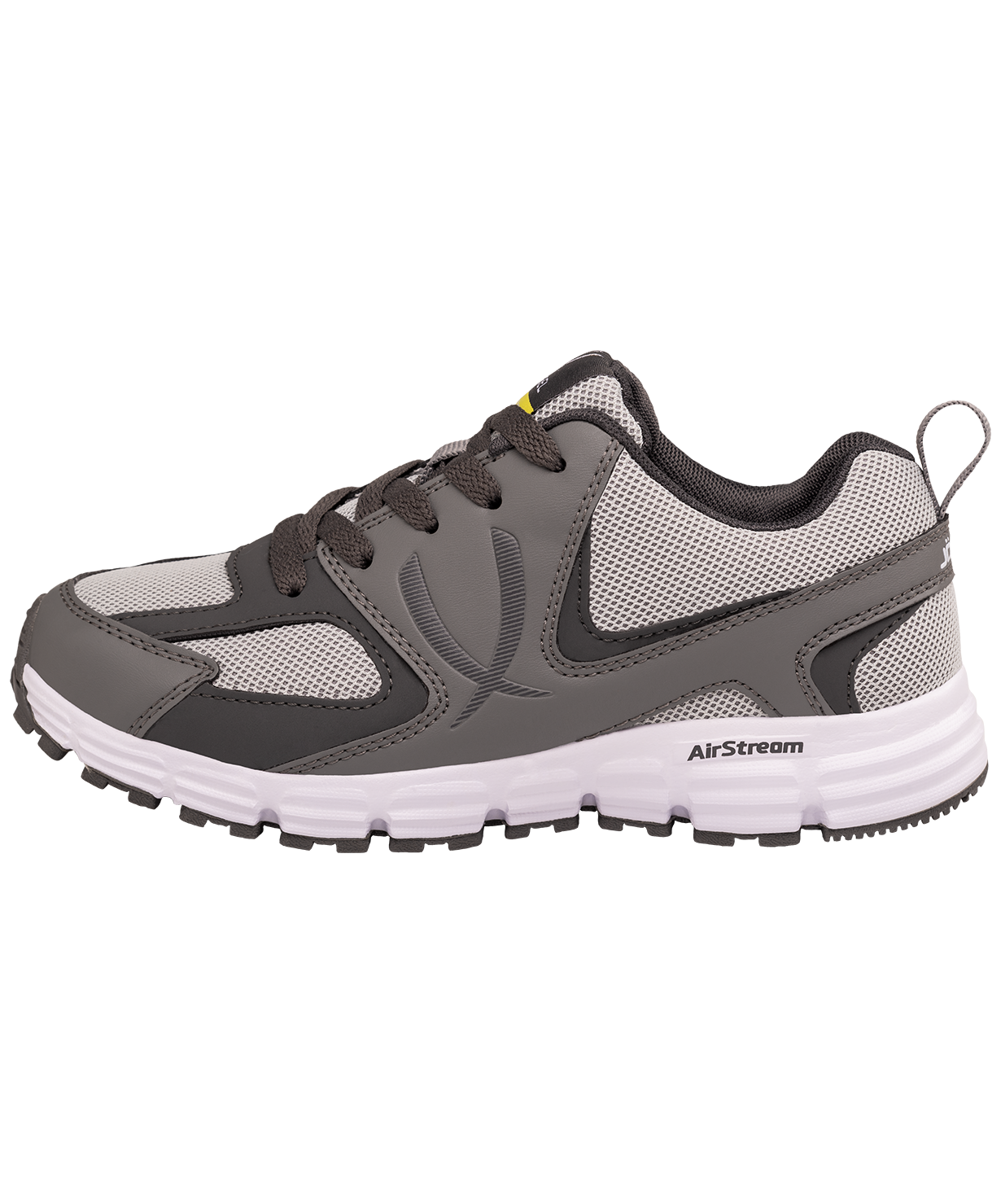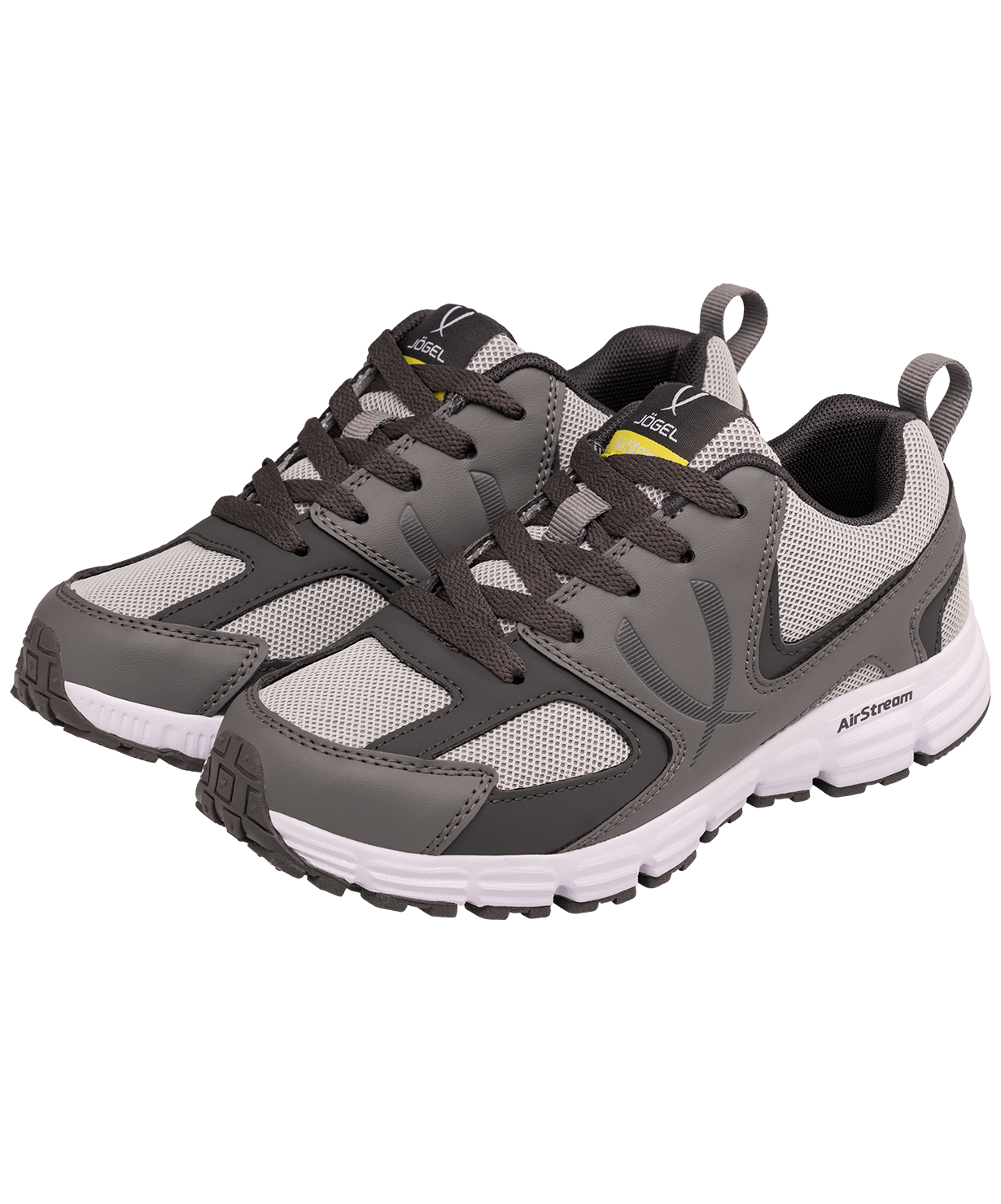Кроссовки AirStream - это продуманное решение для спорта и повседневной жизни в лаконичном дизайне и популярных расцветках. Материал верха из сетчатого воздухопроницаемого материала упрочнен зональными накладками из полиуретана. Съемная формованная стелька из ЭВА создает дополнительную амортизацию. Промежуточная подошва из Phylon снижает вес кроссовка и обеспечивает мягкую амортизацию.\nВ производстве обуви Jögel используются только качественные материалы, обувь легко моется и не требует дополнительного ухода.\nМатериал верха: Полиуретан, текстиль\nМатериал подкладки обуви: Текстиль\nМатериал подошвы обуви: Резина, филон\nМатериал стельки: ЭВА, текстиль\nПолнота обуви: ЕЕ\nРазмерный ряд: 36-40* (RU)\nВид застежки: Шнурки\nОсновной цвет: Серый\nДополнительные цвета: Темно-серый, белый\nНазначение обуви: Спорт, повседневная\nСезон: Демисезон\nПол: Унисекс\nСтрана производства: КНР\nКомплектация: Бутсы, коробка\nТаблица размеров:\nРазмер*\n36\n37\n38\n39\n40\nДлина стельки, см\n22\n22,7\n23,4\n24\n24,7\n*Внимание! Данная модель маломерит на 2 размера!