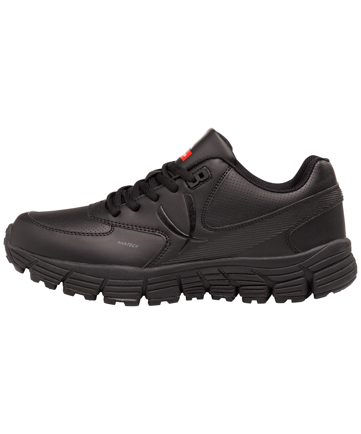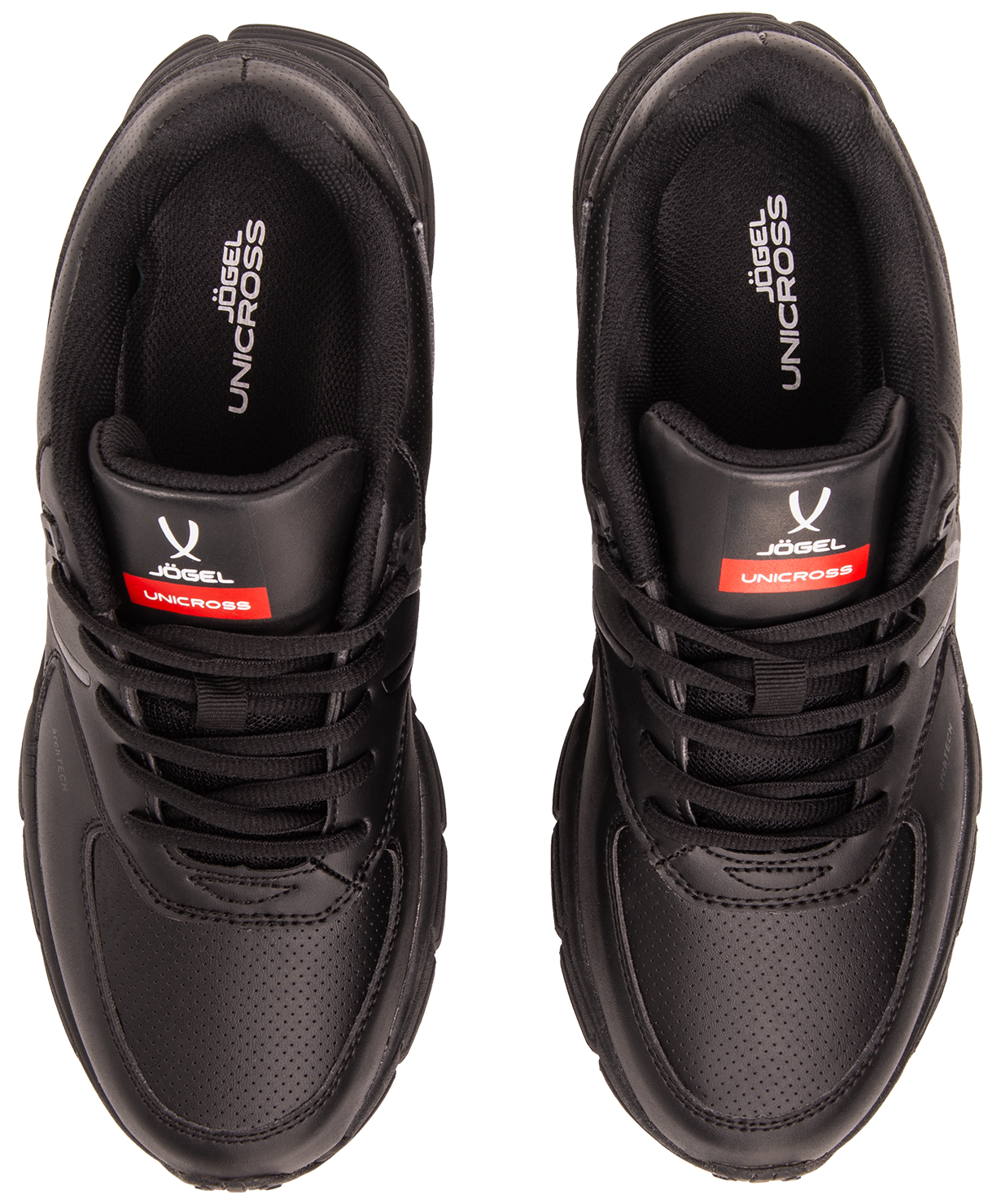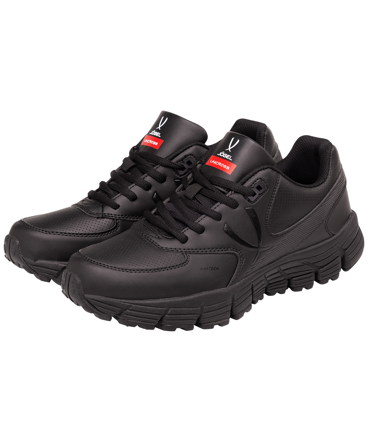 Кроссовки Unicross подходят для спорта и повседневной жизни. Высокая универсальная подошва и закрытая конструкция верха из качественных материалов помогут защитить ноги от непогоды в осенне-весенний период. В кроссовках Unicross реализована технология archTECH для облегчения нагрузки на свод стопы. Съемная стелька из вспененного полиуретана усиливает амортизацию. Промежуточная подошва из материала Phylon снижает вес кроссовка и обеспечивает отзывчивую мягкую амортизацию ударных нагрузок.\nВ производстве обуви Jögel используются только качественные материалы, обувь легко моется и не требует дополнительного ухода.\nТехнология archTECH - предохраняет свод стопы от избыточной пронации и препятствует скручиванию кроссовка за счет специального усиления подошвы.\nМатериал верха: Полиуретан\nМатериал подкладки обуви: Текстиль\nМатериал подошвы обуви: Резина, филон\nМатериал стельки: Вспененный полиуретан, текстиль\nПолнота обуви: ЕЕ\nРазмерный ряд: 39-45* (RU)\nВид застежки: Шнурки\nОсновной цвет: Черный\nНазначение обуви: Спорт, повседневная\nСезон: Демисезон\nПол: Унисекс\nСтрана производство: КНР\nКомплектация: Бутсы, коробка\nТаблица размеров:\nРазмер*\n39\n40\n41\n42\n43\n44\n45\nДлина стельки, см\n24,5\n25,5\n26,2\n26,8\n27,7\n28,2\n28,8\n*Внимание! Данная модель маломерит на 1 размер!