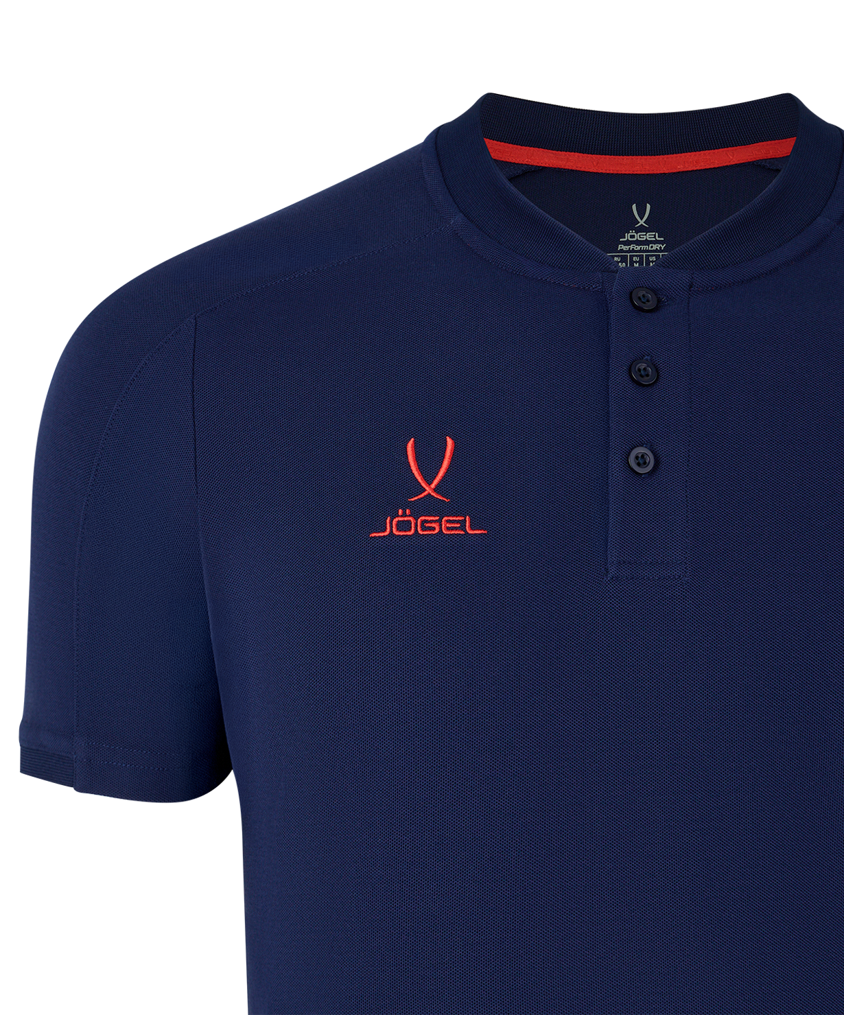 JÖGEL DIVISION PerFormDRY CVC Polo – поло с трикотажным воротом-стойкой и центральной застежкой с тремя пуговицами. Модель отлично подойдет для повседневной носки. Ткань практически не мнется, имеет низкий процент усадки после стирок и обладает хорошей гигроскопичностью благодаря оптимальному сочетанию хлопка и полиэстера в составе. Свободный крой предоставит полную свободу движений.\nСовременный дизайн с вставкой на рукаве от горловины до низа рукава позволяет использовать спортивное поло для стильных городских образов. Контрастная вышивка с логотипом бренда добавляет индивидуальности.\nPerFormDRY - это специальная технология обработки тканей JÖGEL, которая способствует быстрому выведению влаги и помогает спортсменам чувствовать себя комфортно при интенсивных нагрузках.\nПреимущества:\nМатериал с технологией PerFormDRY;\nПрочная, долговечная ткань;\nХорошая гигроскопичность;\nВоротник-стойка.\nХарактеристики:\nСостав: 60% хлопок, 40% полиэстер\nЦвет: темно-синий\nРазмер: S, M, L, XL, XXL, XXXL\nТип упаковки: пакет зип-лок\nПроизводство: Китай