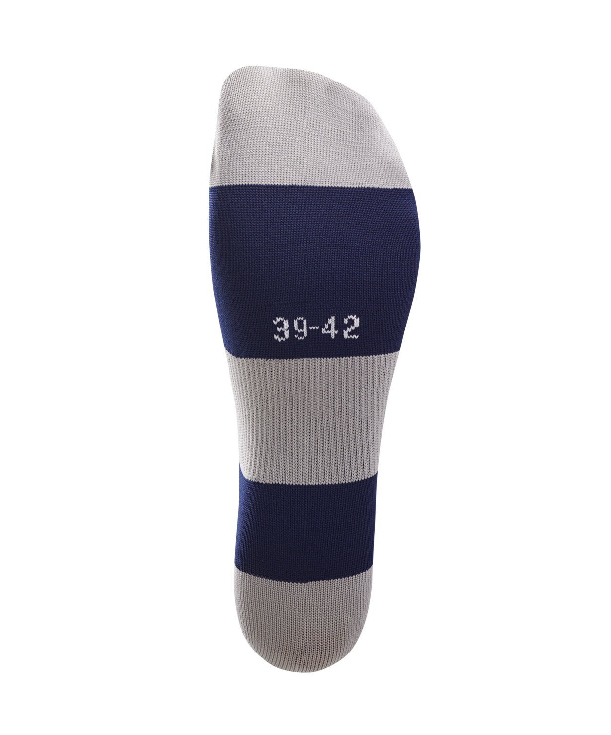 CAMP BASIC SOCKS - обновленная модель базовых гетр в актуальных цветовых решениях, максимально подходящих под игровую форму Jögel. Гетры выполнены из качественного трикотажного полотна. Ткань способствует выведению влаги, сохраняя комфорт и сухость. Эластичная вставка в области свода стопы обеспечивает поддерживающую плотную посадку. Усиленные пятка и мысок добавляют прочности в зонах, наиболее подверженных износу. Дополнительная резинка в районе щиколотки препятствует сползанию гетр, а анатомический крой футбольных гетр позволяет спортсмену чувствовать себя комфортно даже во время длительных тренировок.\nПреимущества:\nКачественное влагоотведение;\nПлотная посадка;\nУсиленные пятка и мысок;\nАнатомический крой;\nНе сползают с щиколотки.\nХарактеристики:\nСостав: полиэстер 95%, эластан 5%\nЦвет: темно-синий/серый/белый\nРазмер: 28-31, 32-34, 35-38, 39-42, 43-45\nПроизводство: Россия