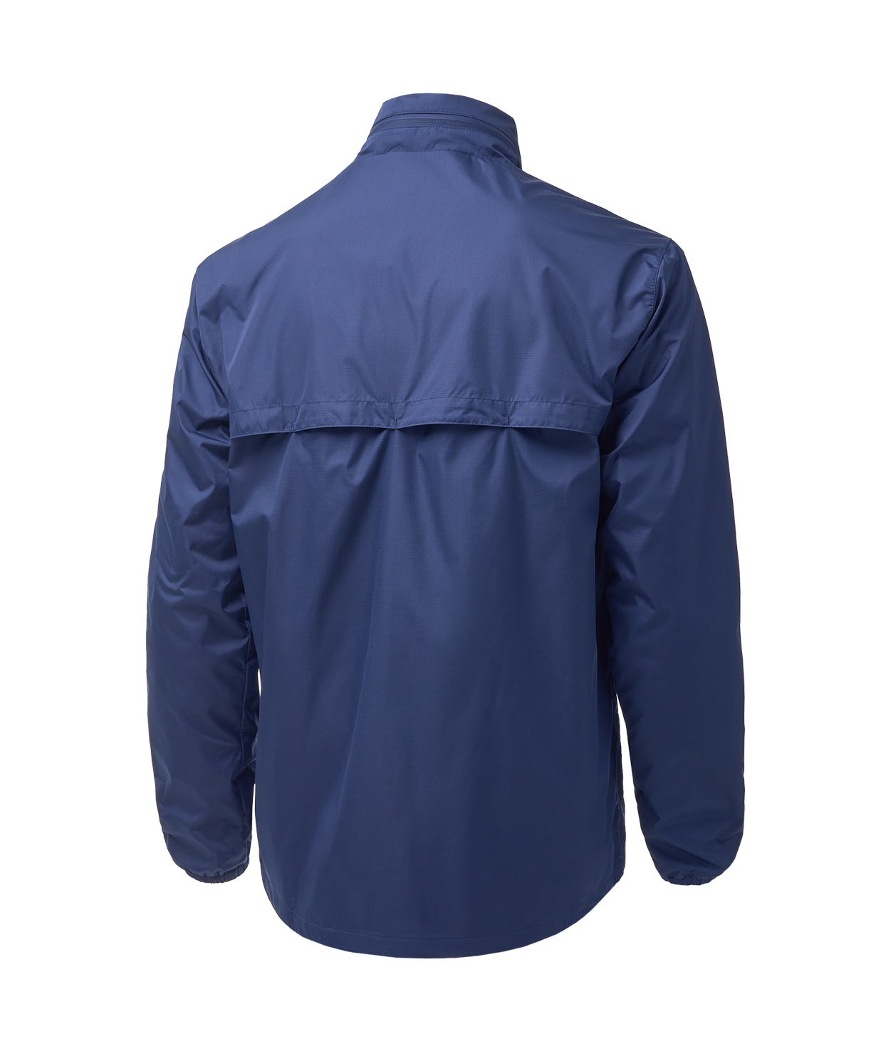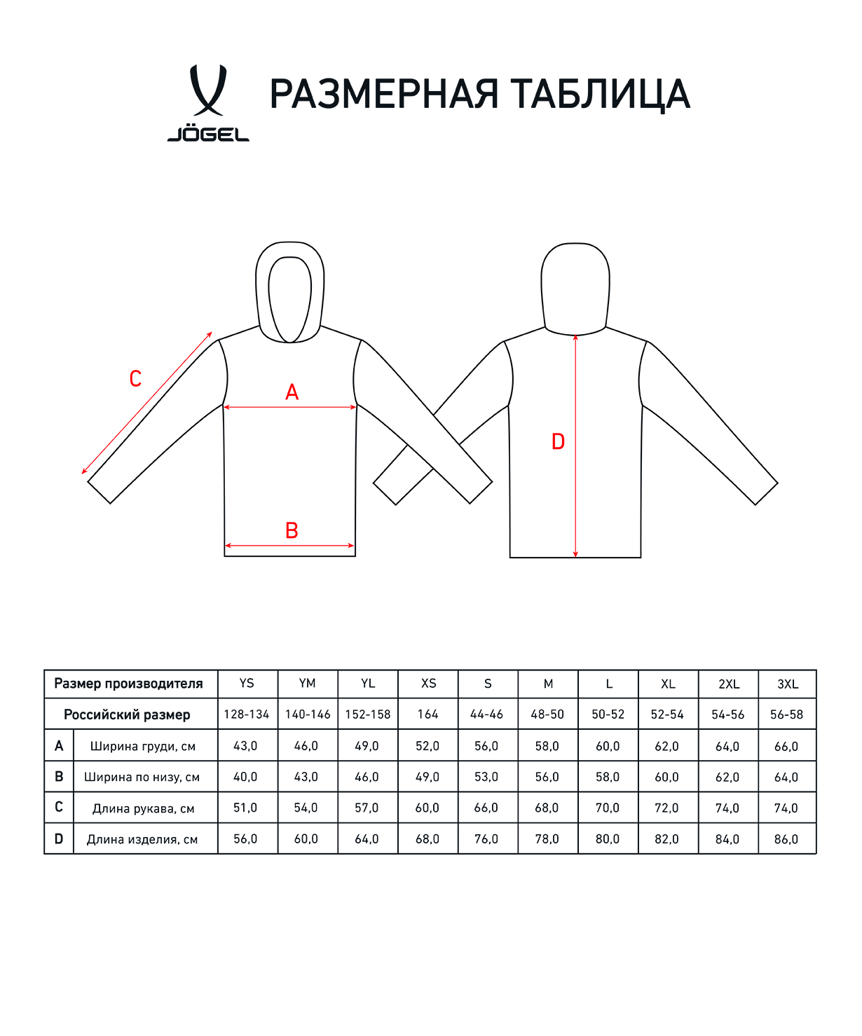 Ветрозащитная куртка JÖGEL DIVISION PerFormPROOF Shower Jacket – высокотехнологичная новинка, предназначенная для профессиональных и любительских тренировок. Легкая, водонепроницаемая и непродуваемая модель свободного силуэта выполнена из ткани повышенной прочности и износостойкости RIBSTOP и дополнена функцией PerFormPROOF. Ветрозащитная планка и карманы на молнии – эта ветровка создана для того, чтобы учитывать все потребности спортсмена! Передняя реверсивная молния позволяет регулировать свободу движения во время активных тренировок, рукава надежно фиксируются на запястье с помощью внутренней эластичной тесьмы. Дополнительная вентиляция при интенсивных занятиях спортом обеспечивается сетчатой подкладкой и технологической отлетающей кокеткой, а швы проймы и плечевые швы, которые подвергаются наибольшей нагрузке, дополнительно усилены и проклеены водостойкой лентой Heat Seal. Низ спортивной ветровки Shower Jacket фигурный, удлиненный на спинке, модель также дополнена капюшоном, полностью складывающимся в карман на воротнике и закрывающимся реверсивной молнией. Завершают образ узнаваемые логотипы JÖGEL, расположенные на слайдерах застежек.\nPerFormPROOF - технология пропитки материалов JÖGEL, обеспечивающая спортсменам защиту от дождя и ветра во время плохих погодных условий.\nФункция PerFormPROOF;\nВодоотталкивающее покрытие;\nСохранение дышащих свойств ткани;\nДополнительная вентиляция, водостойкие швы.\nХарактеристики:\nСостав: 100% полиэстер rib stop (10 000 мм водяного столба) / воздухопроницаемость 10 000г/м2/24ч\nЦвет: темно-синий\nРазмер: S, M, L, XL, XXL, XXXL\nВид упаковки: пакет зиплок с картонной этикеткой и стикером\nСтрана производства: Китай
